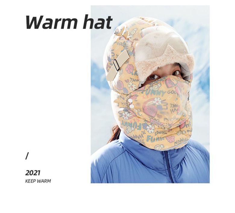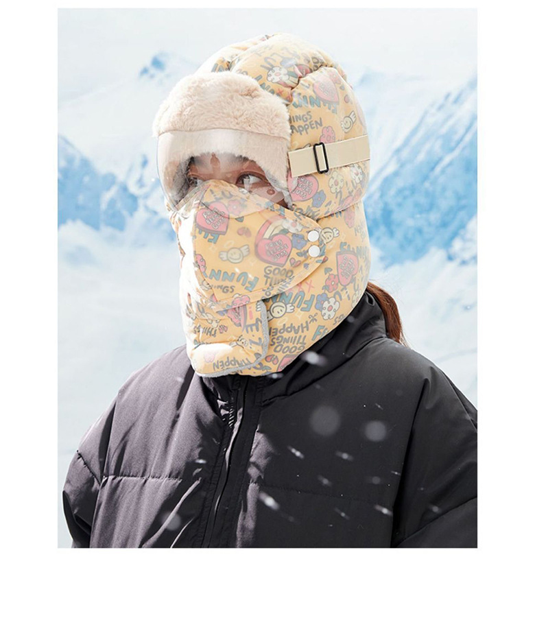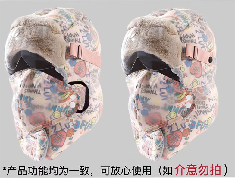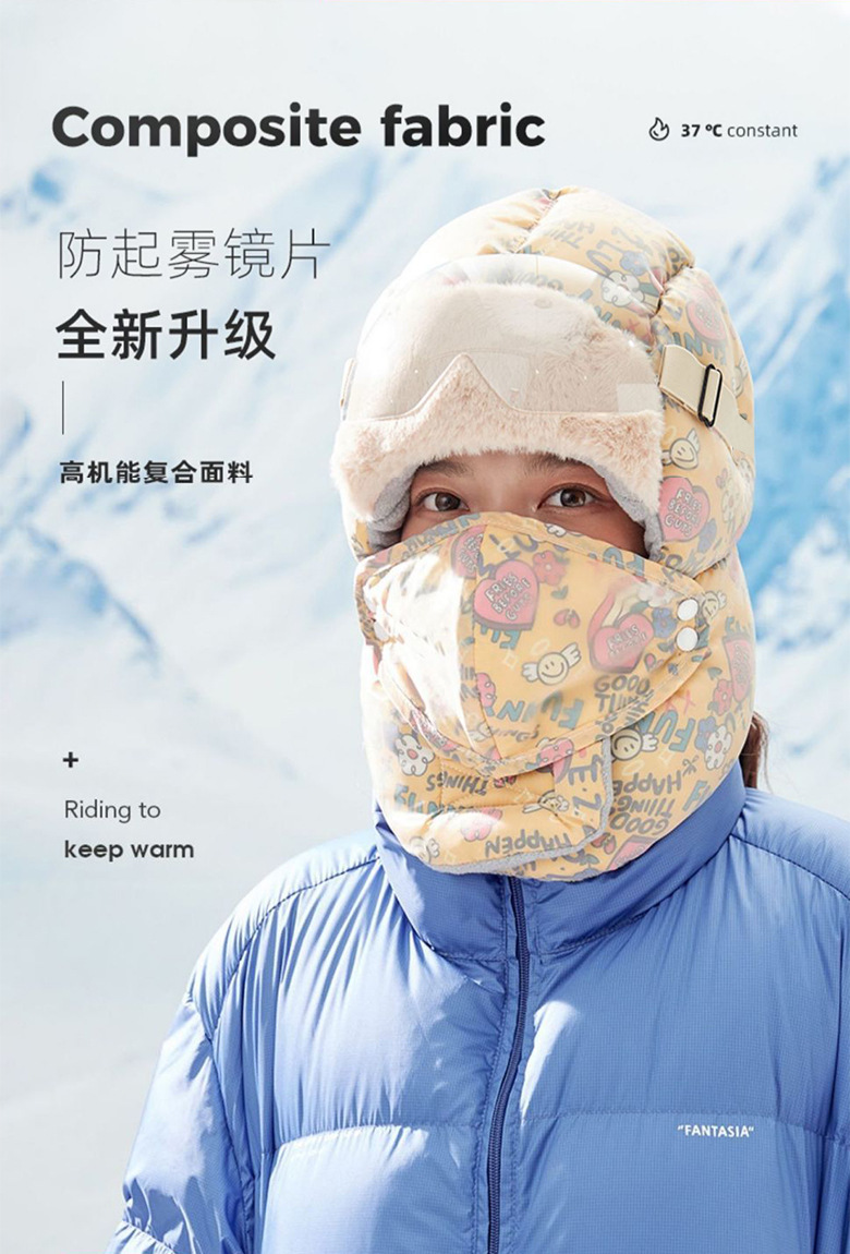 雷锋帽女2024新款时尚洋气冬款骑车加绒加厚保暖眼镜帽子一体围脖