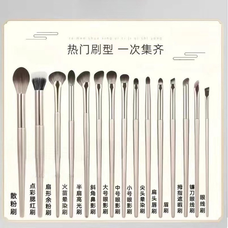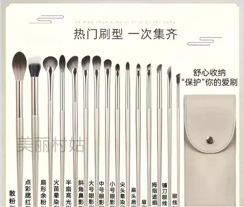 15支鎏金化妆刷 套装眼线刷刀锋刷 眼影刷 眼部刷 遮瑕刷沧州软毛