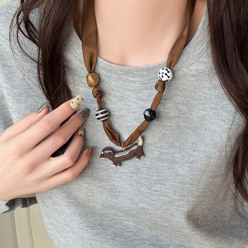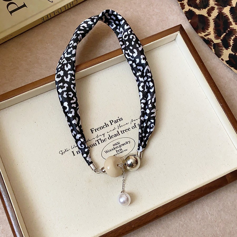 美拉德豹纹丝巾项链女小众独特复古设计毛衣链个性气质项饰配饰女