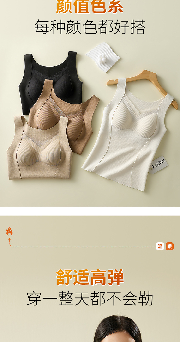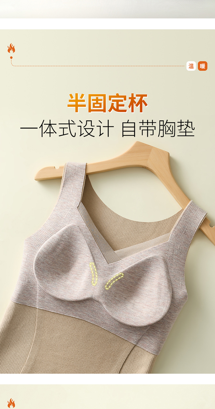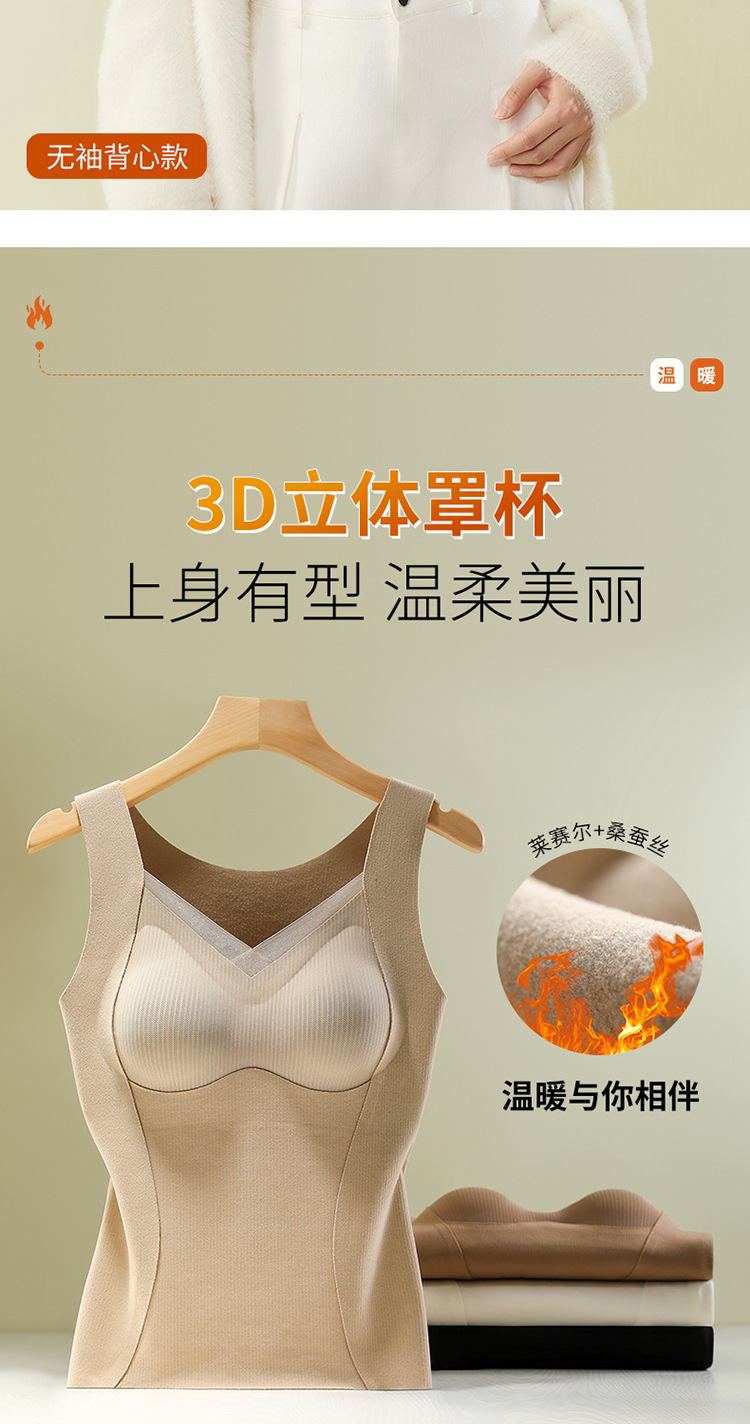 提拉保暖背心女山羊毛蚕丝德绒内衣加绒加厚带胸垫无痕内衣打底衫