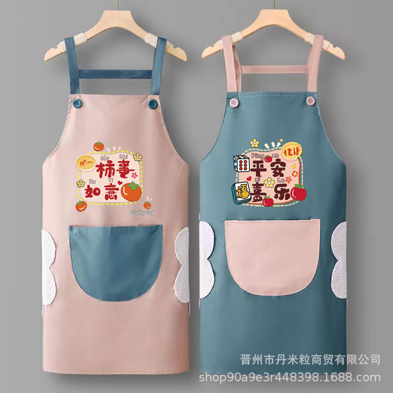 围裙厨房家用国潮风工作服结婚乔迁耐脏围腰防水防油时尚韩版可订
