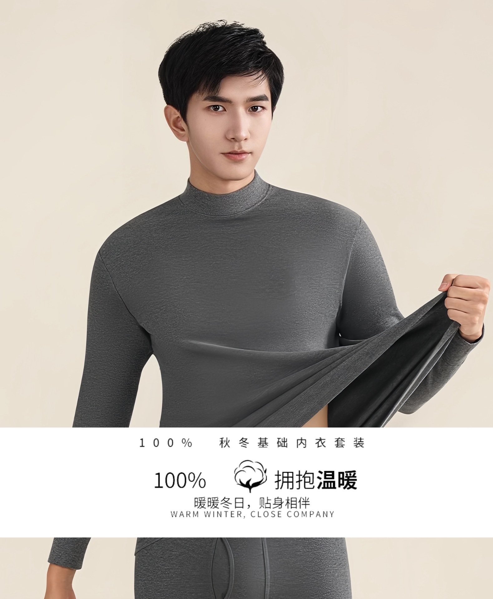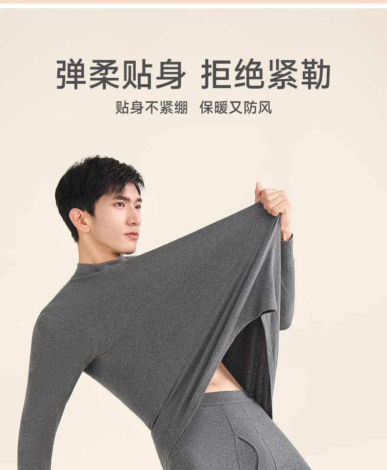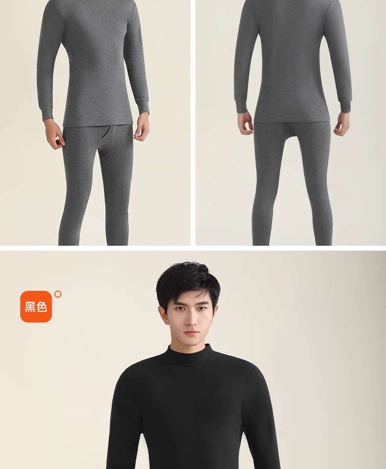 秋冬男士纯色保暖内衣薄绒冬季时尚修身秋衣秋裤圆领套装厂家批发