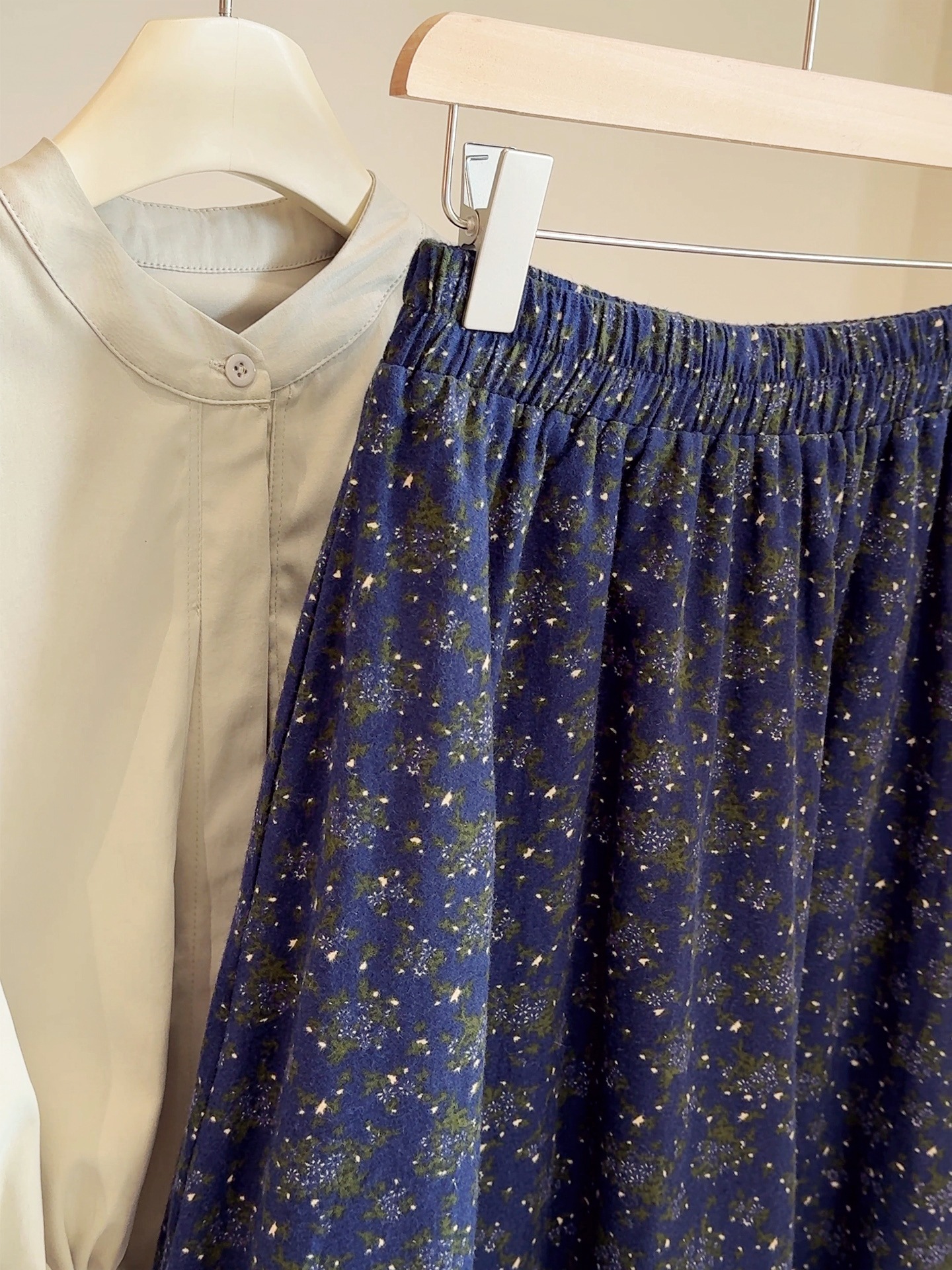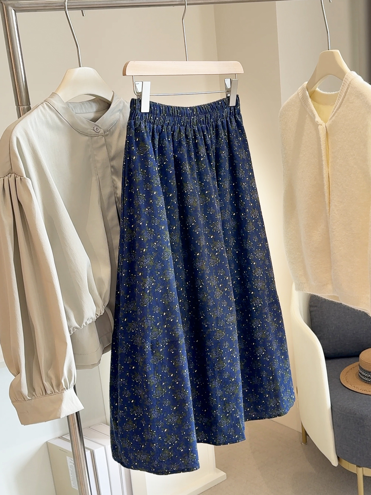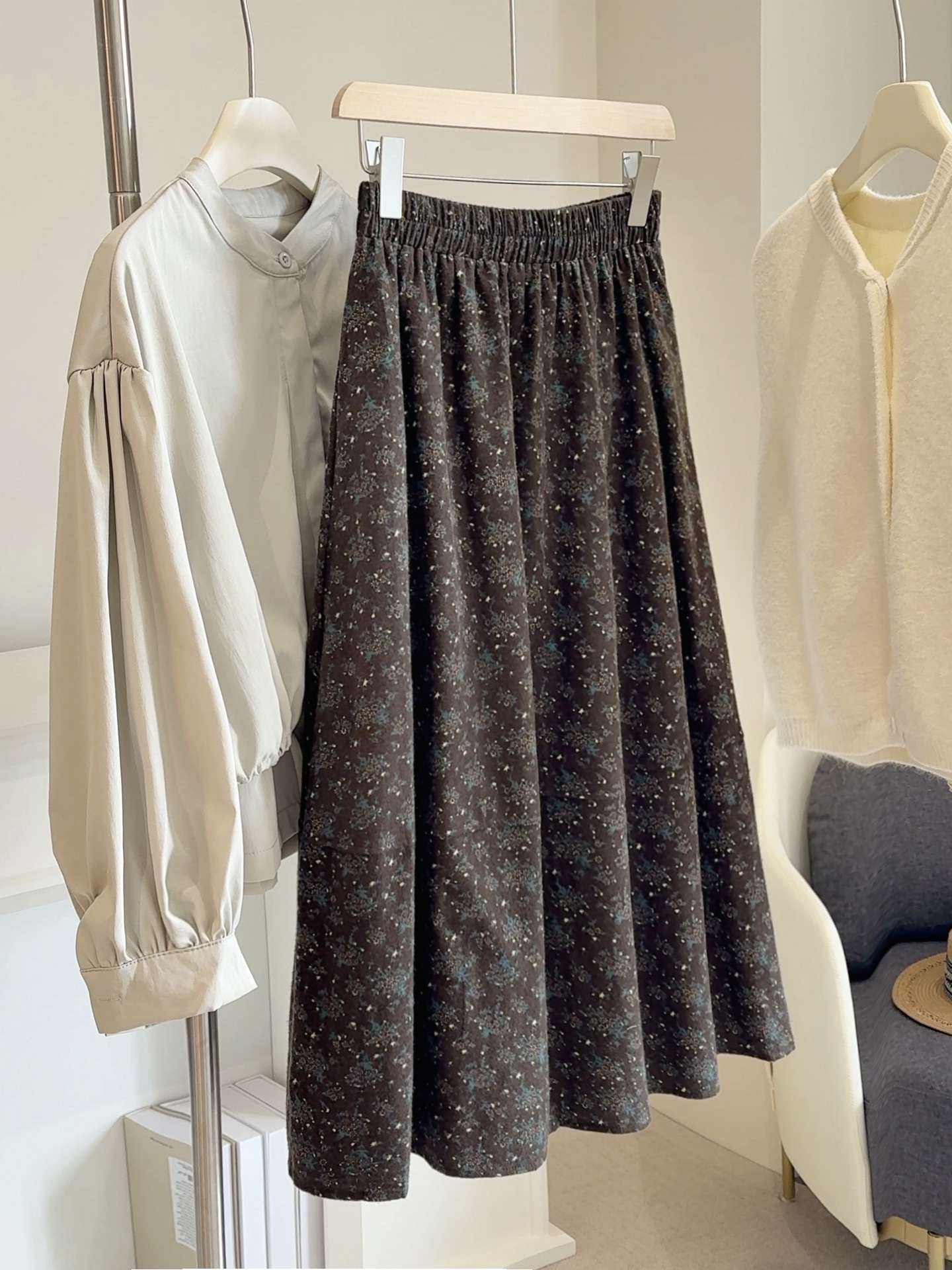 咖色碎花半身裙女秋2025新款小个子高腰百搭松紧腰a字伞裙中长裙