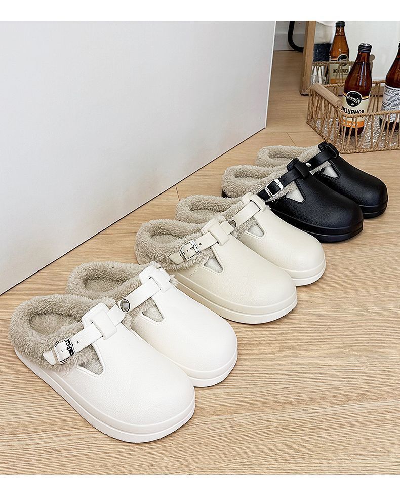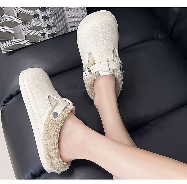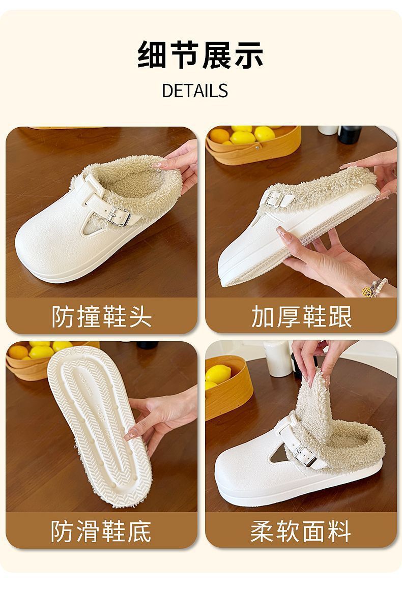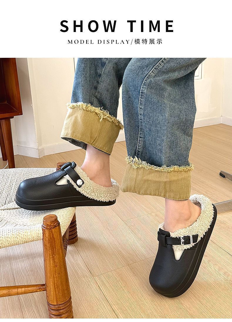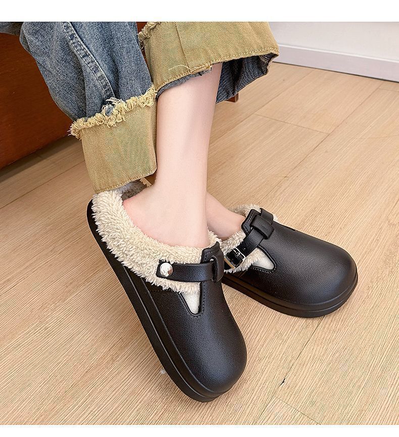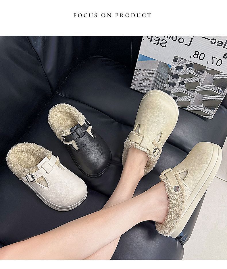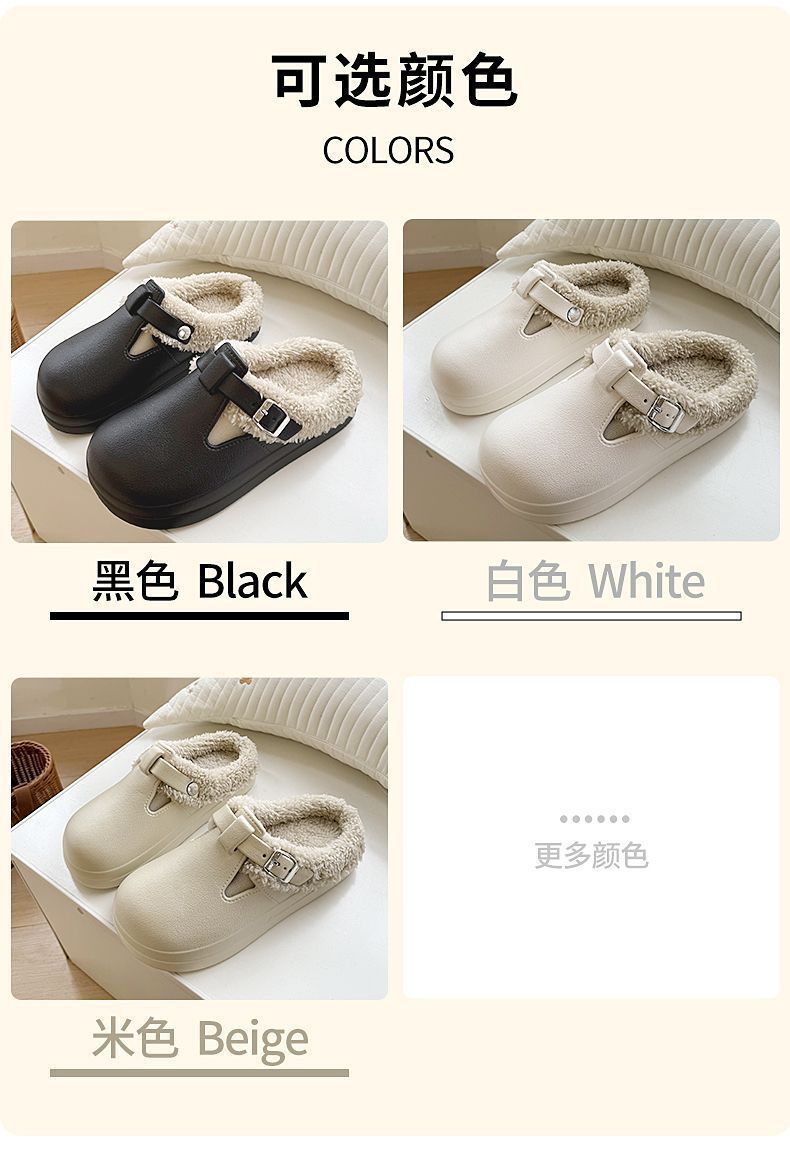 新款秋冬款厚底毛绒搭扣保暖防水棉拖鞋休闲外贸新款EVA女鞋秋冬