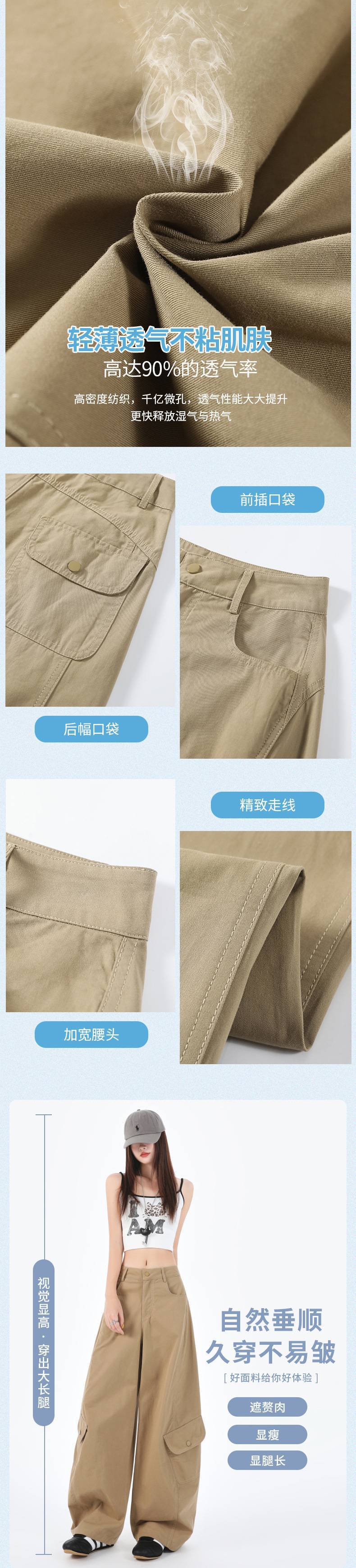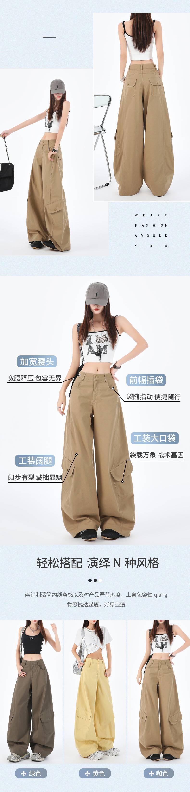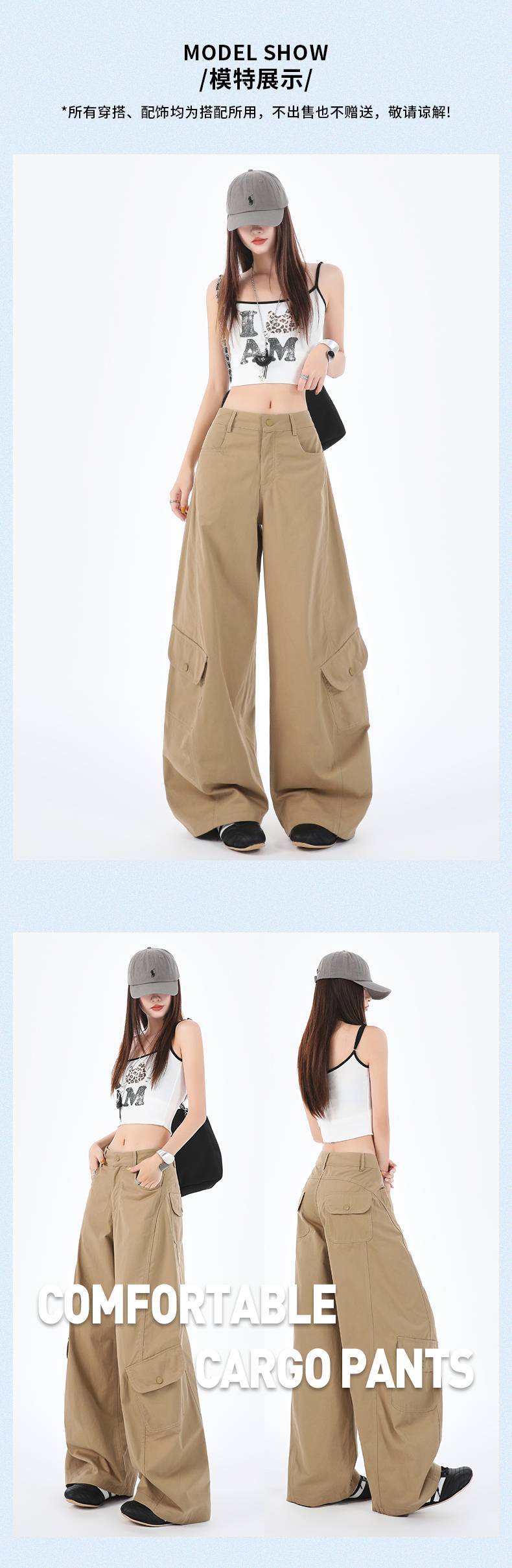 批发设计感美式复古辣妹弯刀裤百搭显瘦多口袋阔腿工装休闲裤