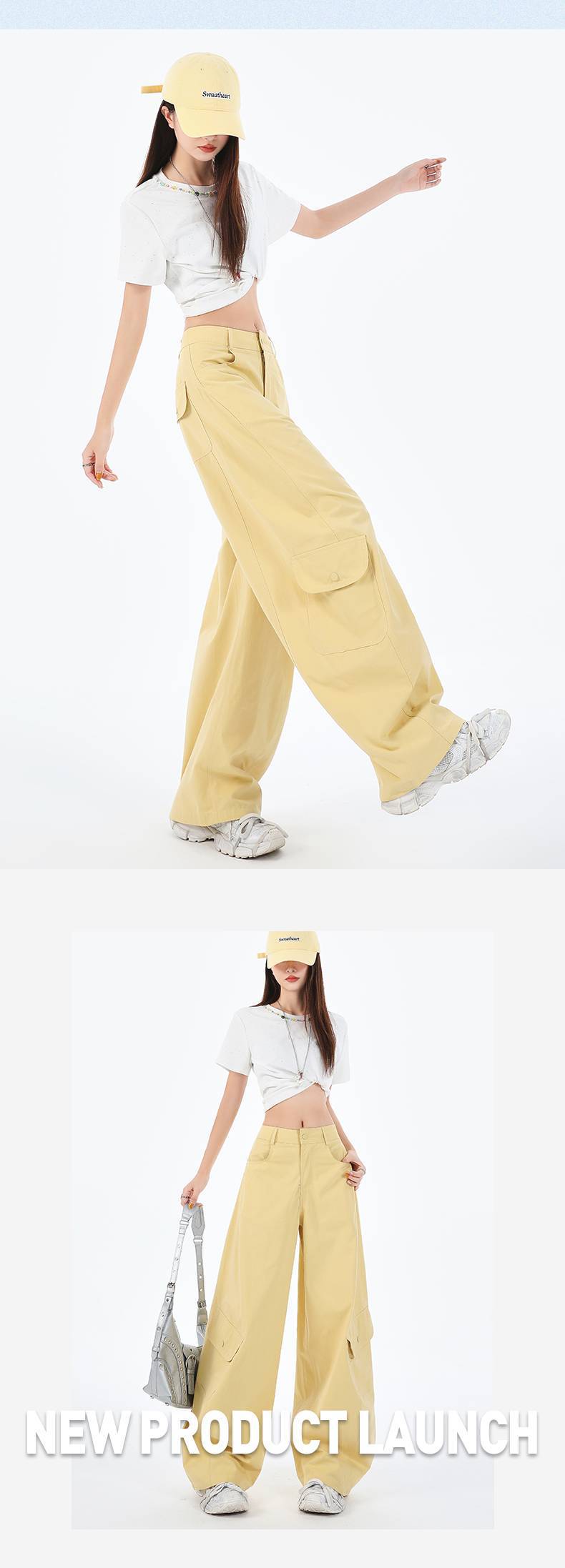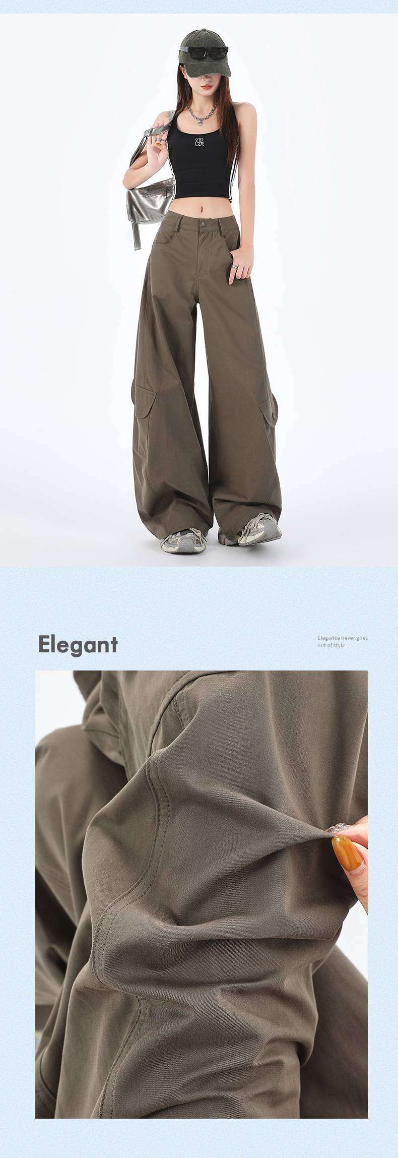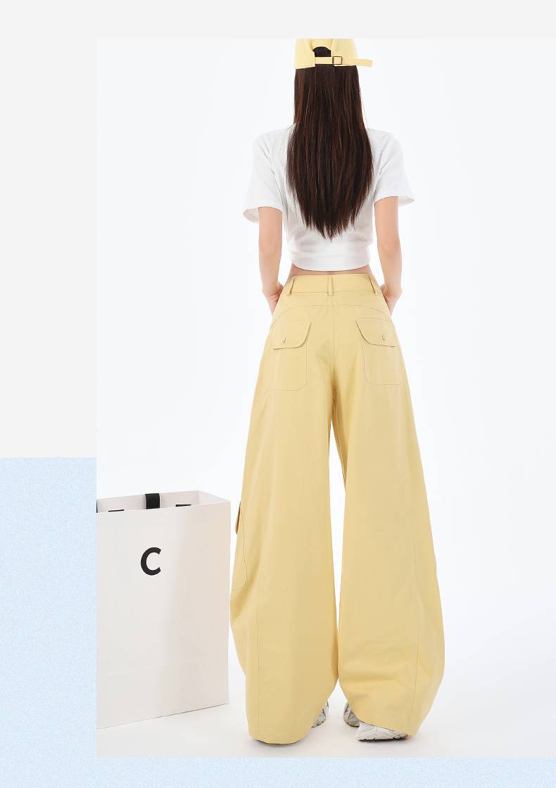 批发设计感美式复古辣妹弯刀裤百搭显瘦多口袋阔腿工装休闲裤