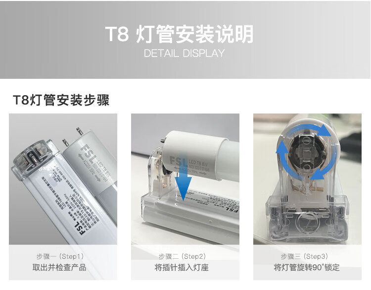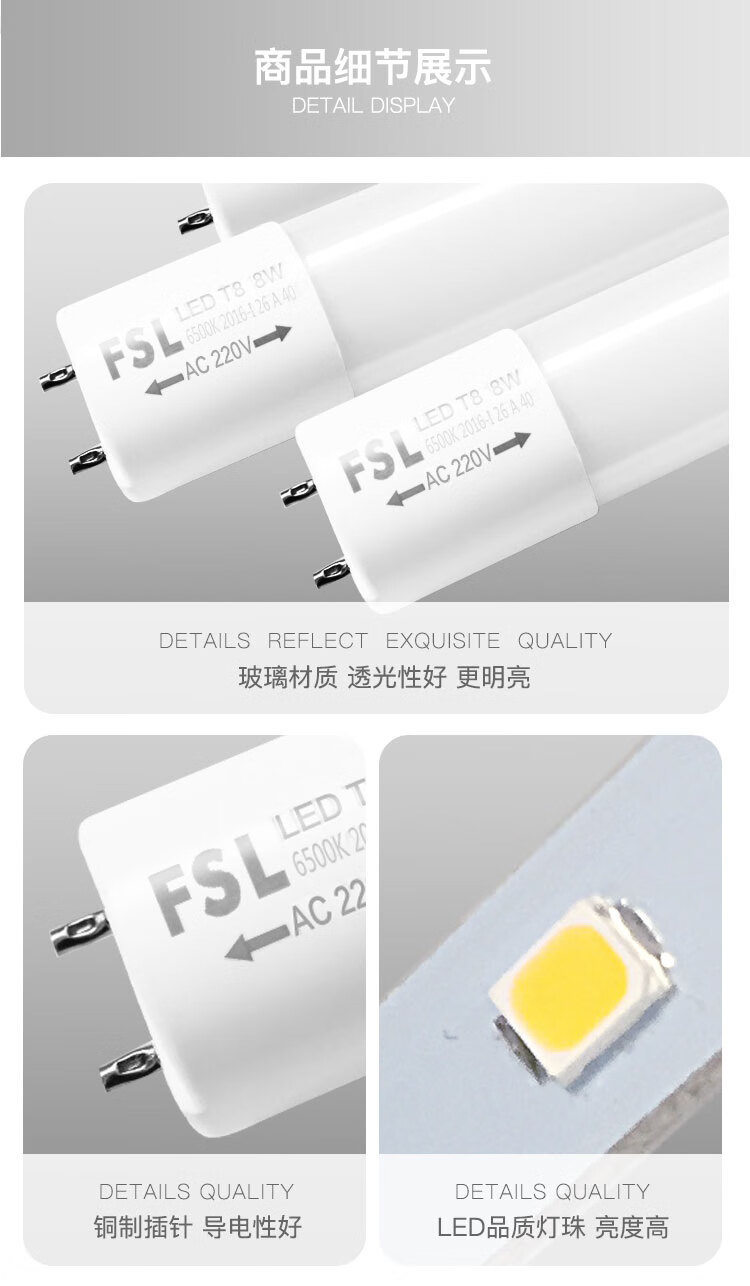 FSL佛山照明led节能灯管一体化支架全套1米2超亮T8日光灯长条灯管