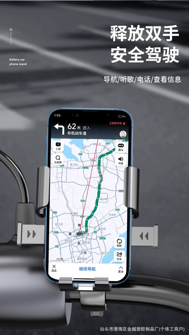 电动车手机支架跨境电瓶摩托车外卖骑手导航骑行自行车防震手机架