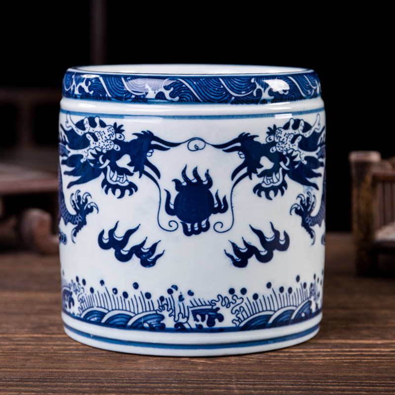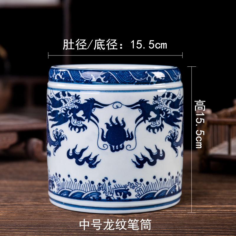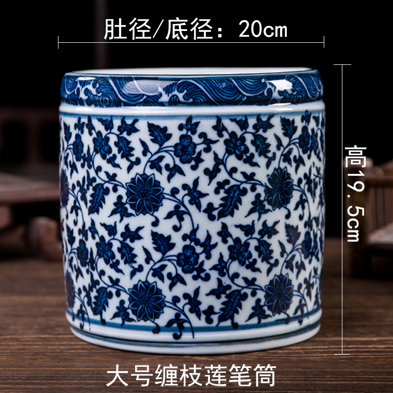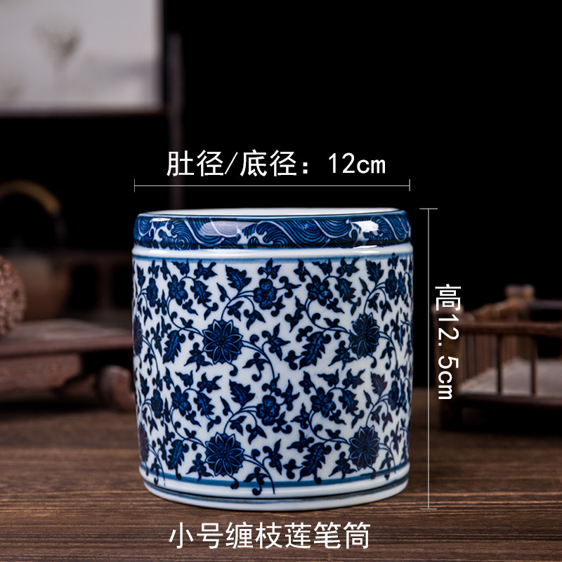 青花缠枝莲中式陶瓷笔筒景德镇瓷器龙纹书画筒家居客厅工艺品摆件