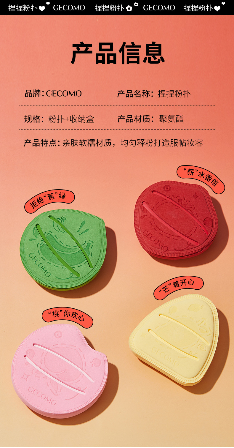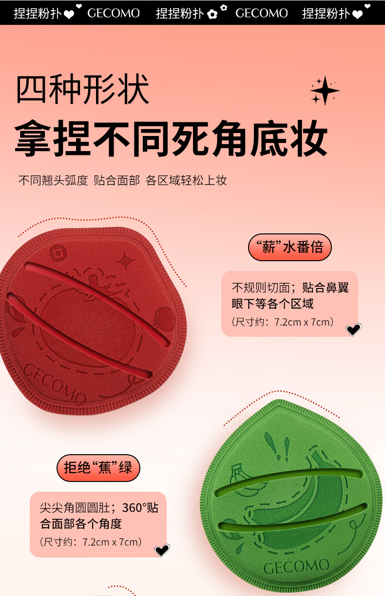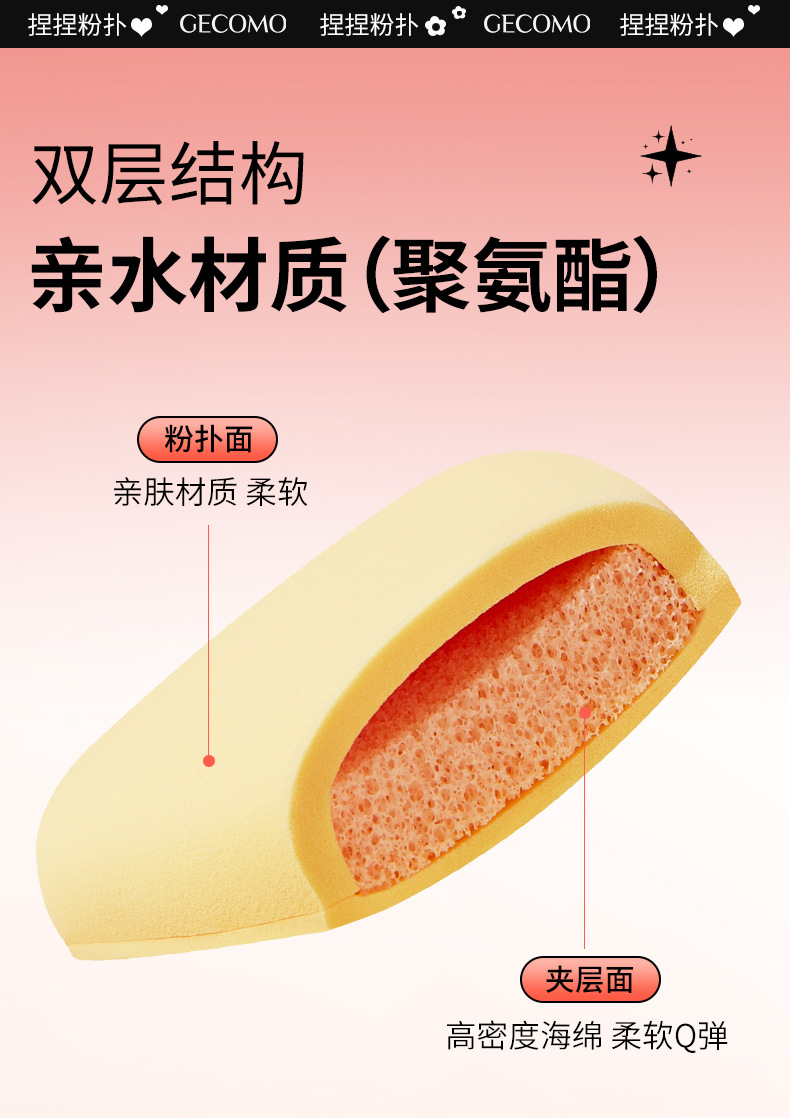 GECOMO薪水番倍捏捏粉扑干湿两用不吃粉柔软亲肤美妆蛋跨境美妆