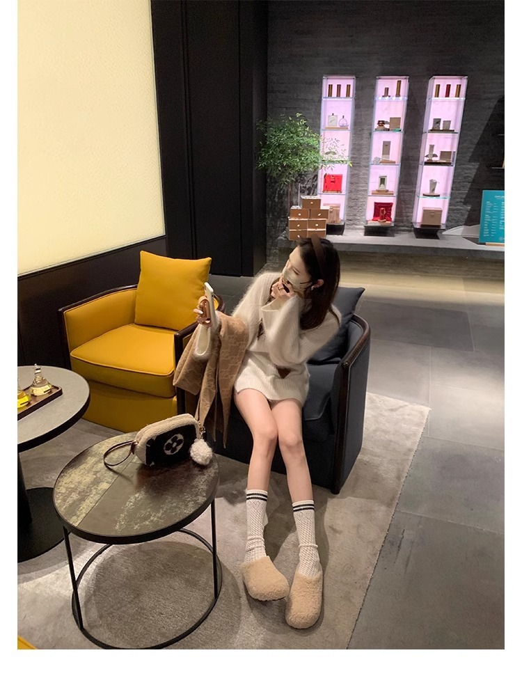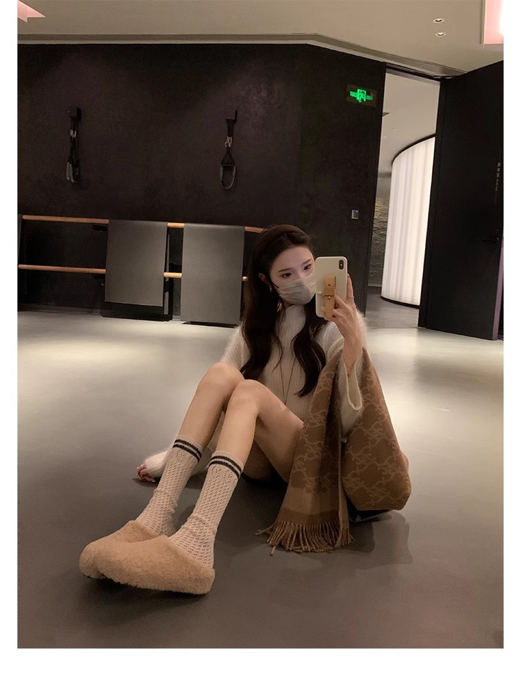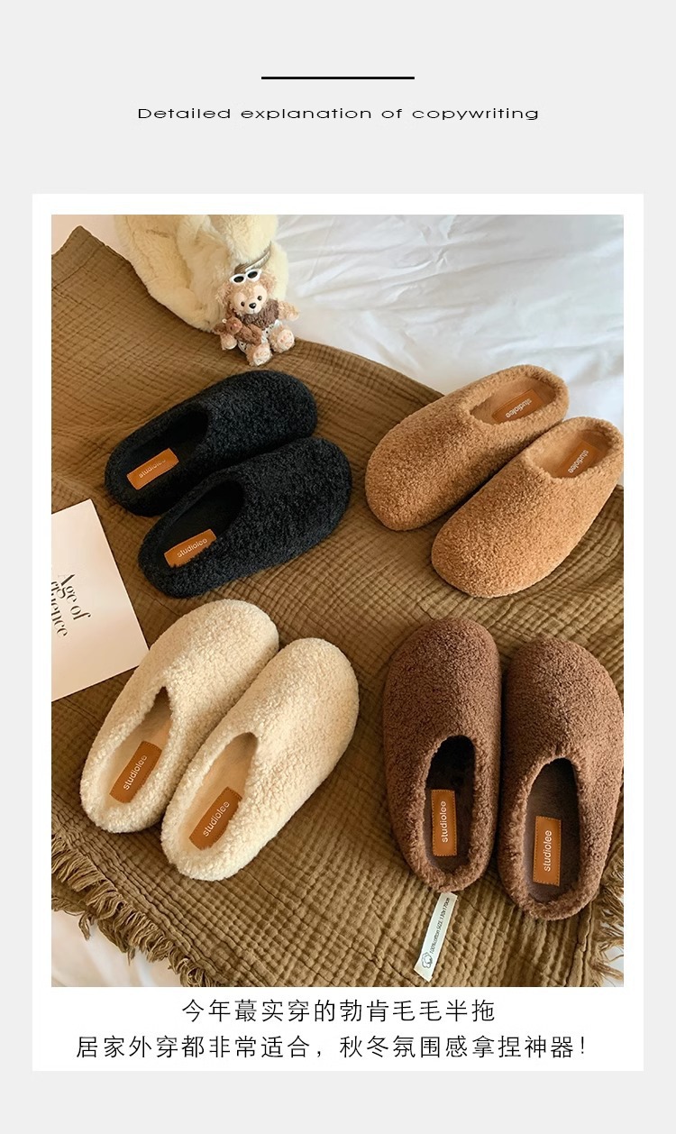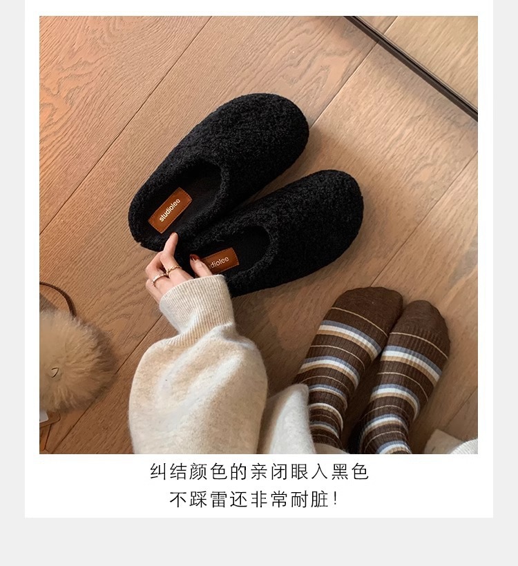 葡萄妈同款包头一脚蹬内增高加厚保暖博肯毛毛鞋女秋冬博肯棉拖鞋