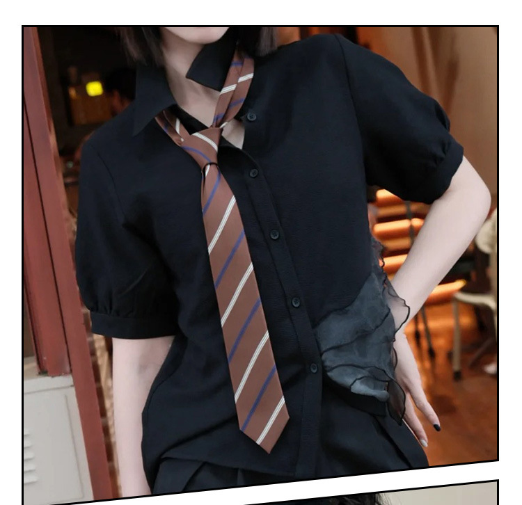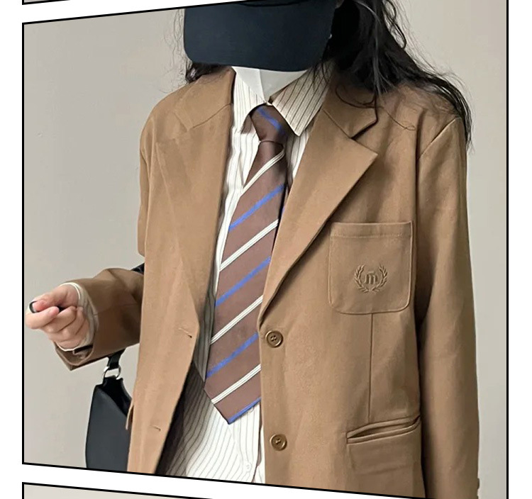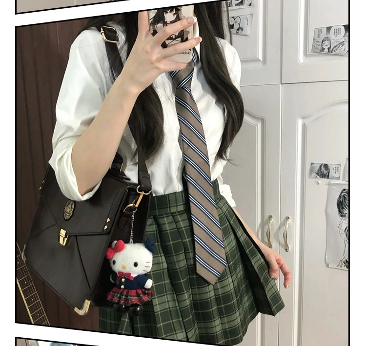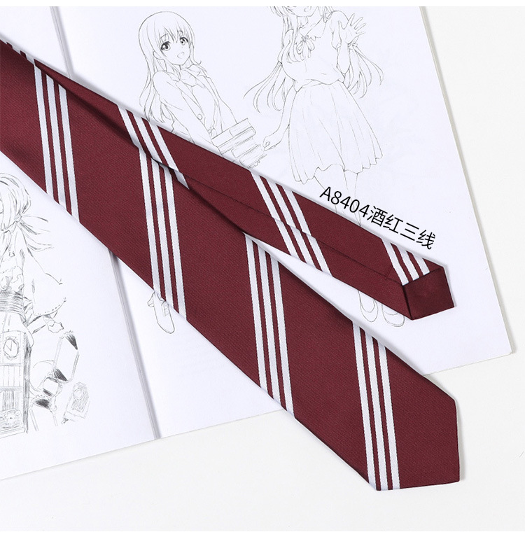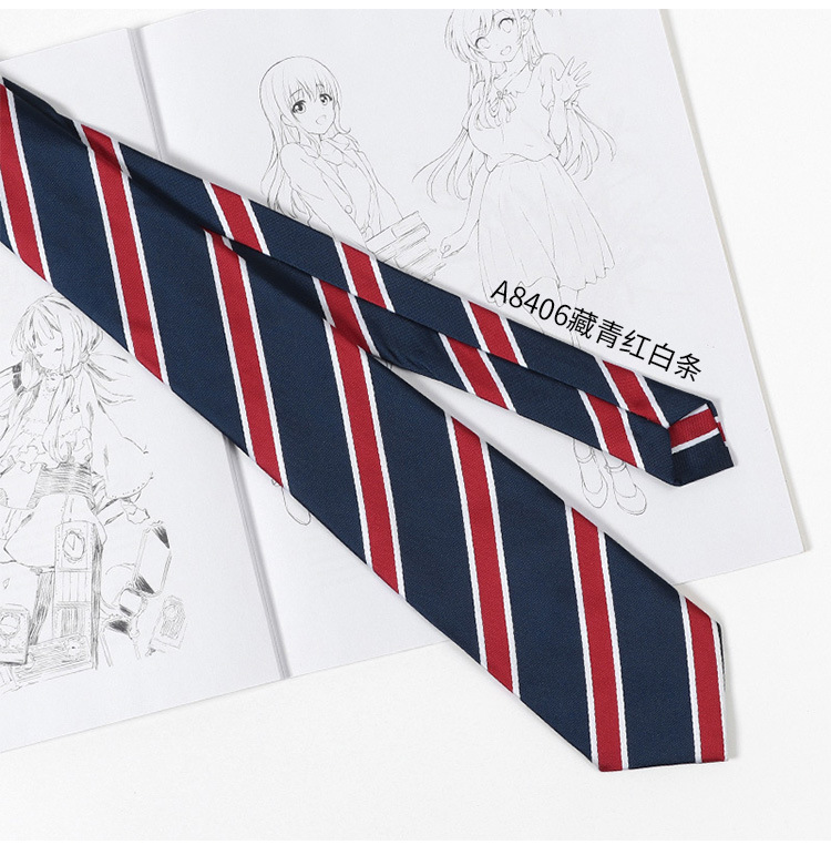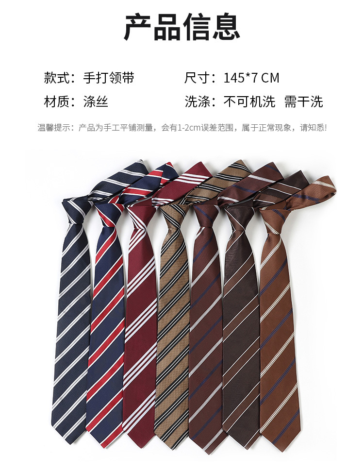 日系学院风jk领带女酒红色棕色条纹手打领带男衬衫配饰学生蓝色款
