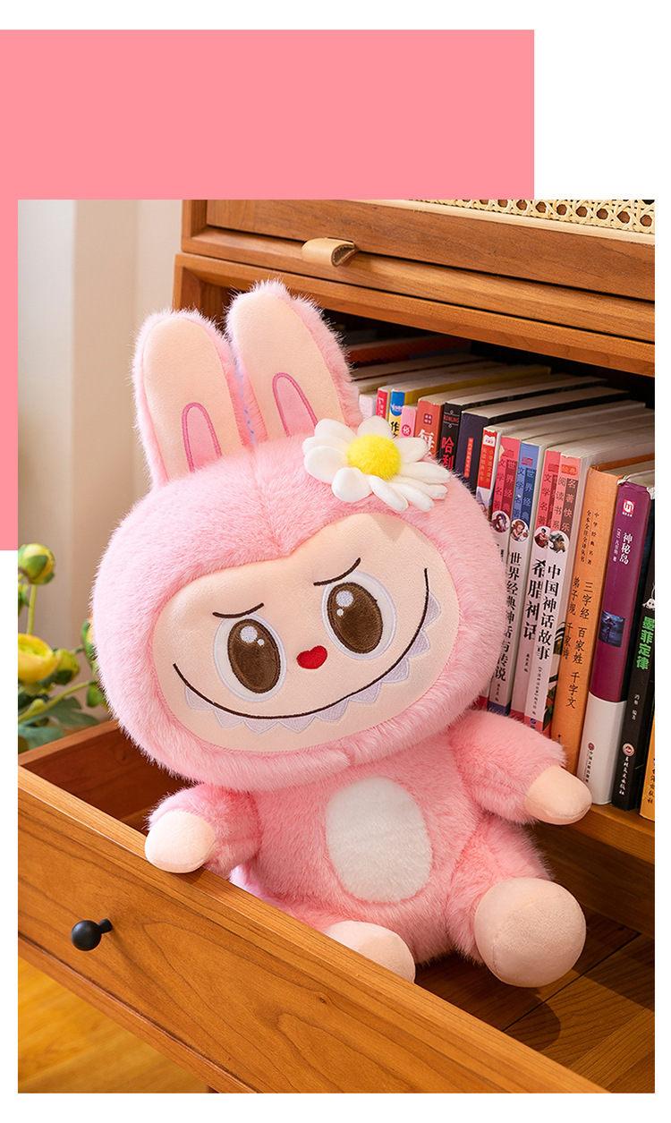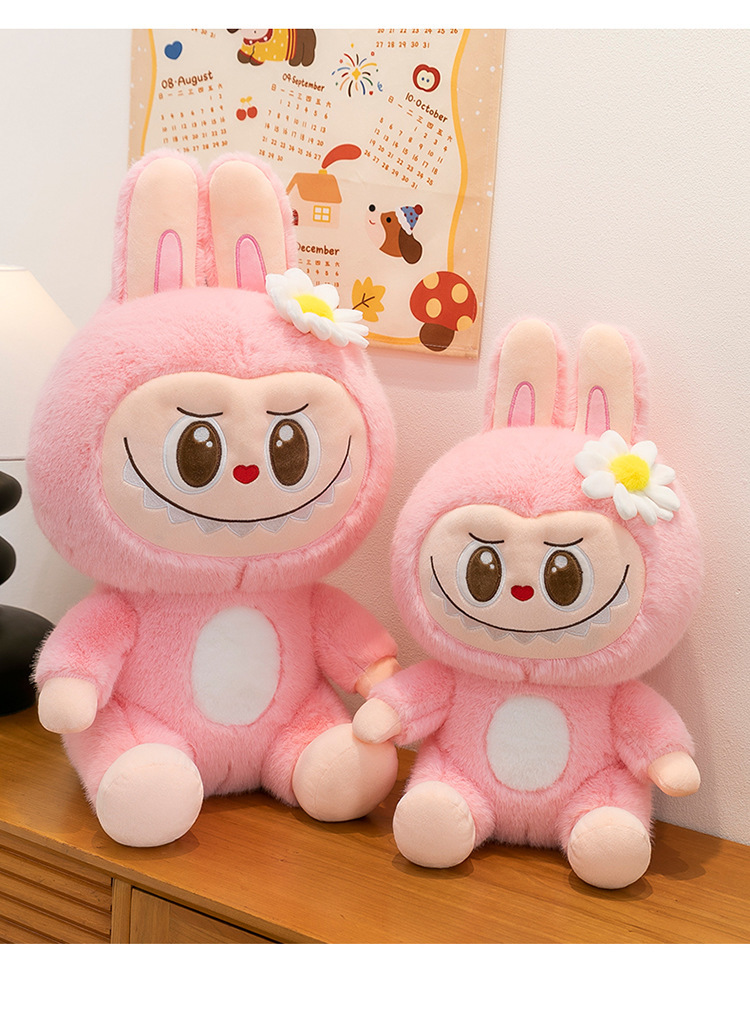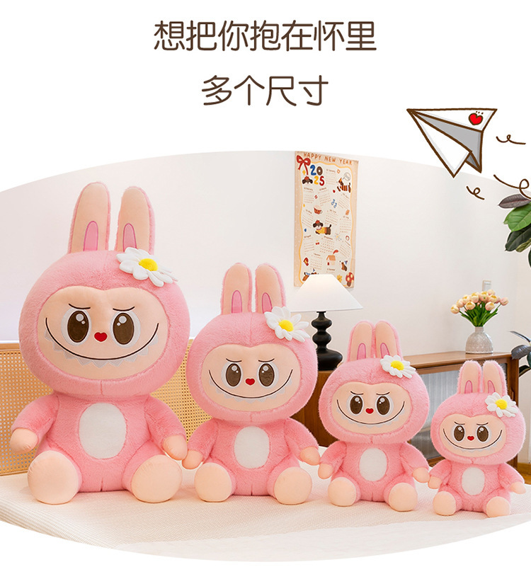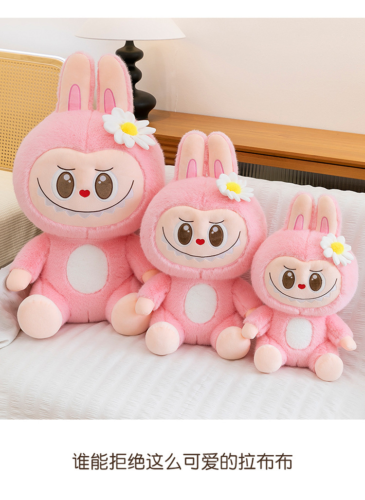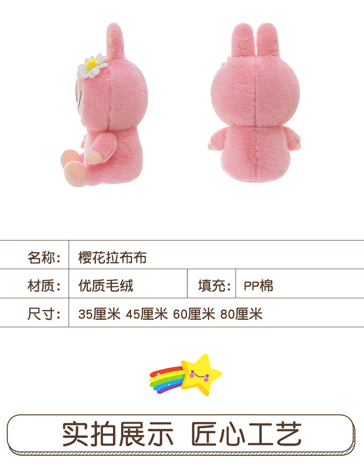 粉色樱花拉布布玩偶抱枕娃娃儿童玩具生日礼物拉搞怪玩偶labu公仔