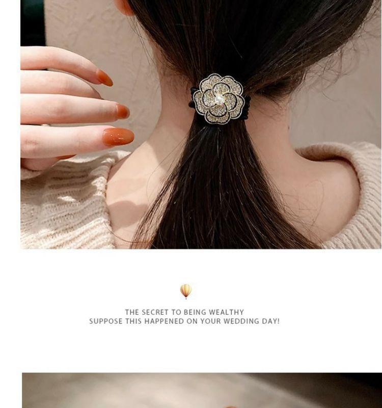 新款高级感玫瑰花发圈简约丸子头发绳百搭头绳气质皮筋洋气头饰品