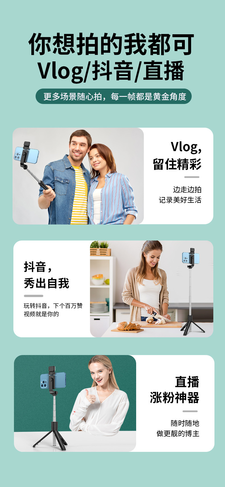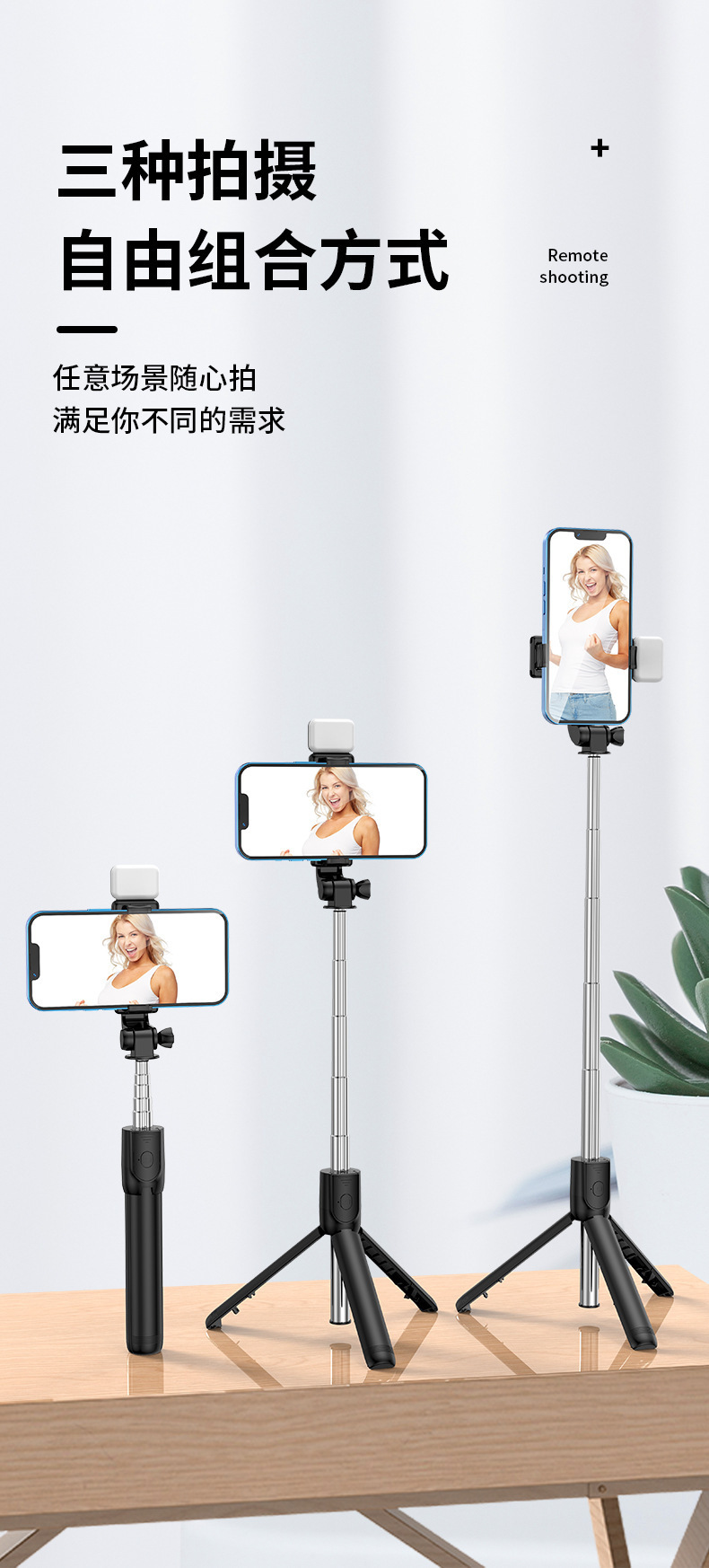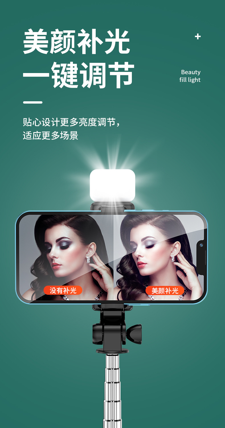 自拍杆新款三脚架带补光灯通用直播拍照一体式手持支架厂家批发