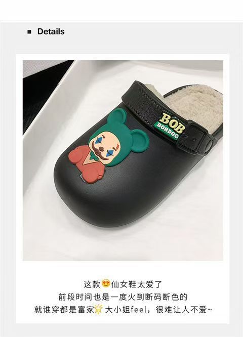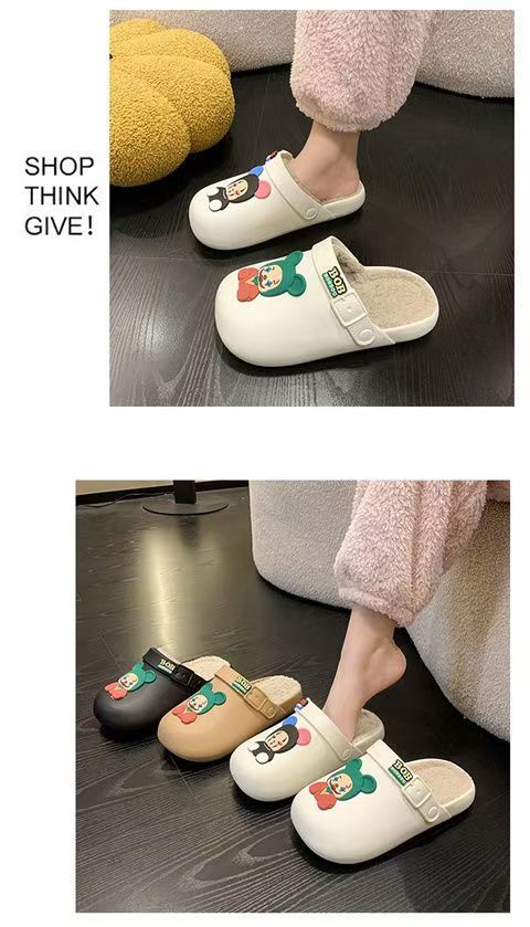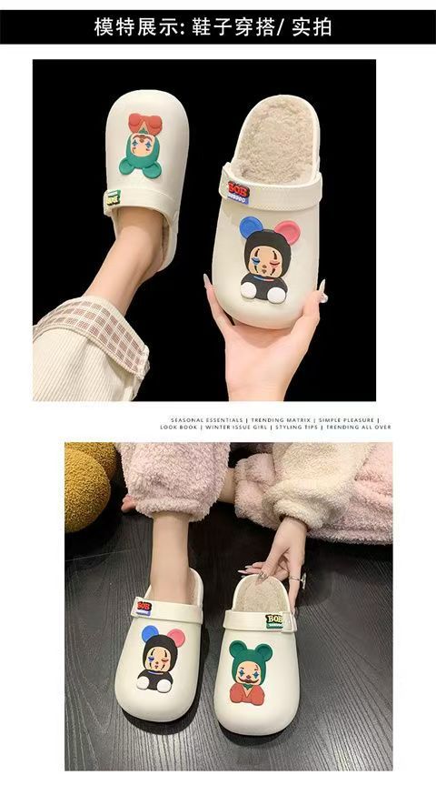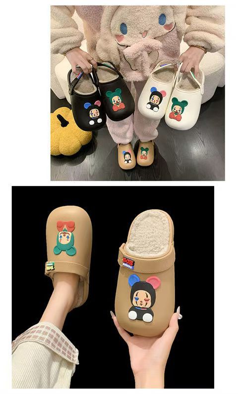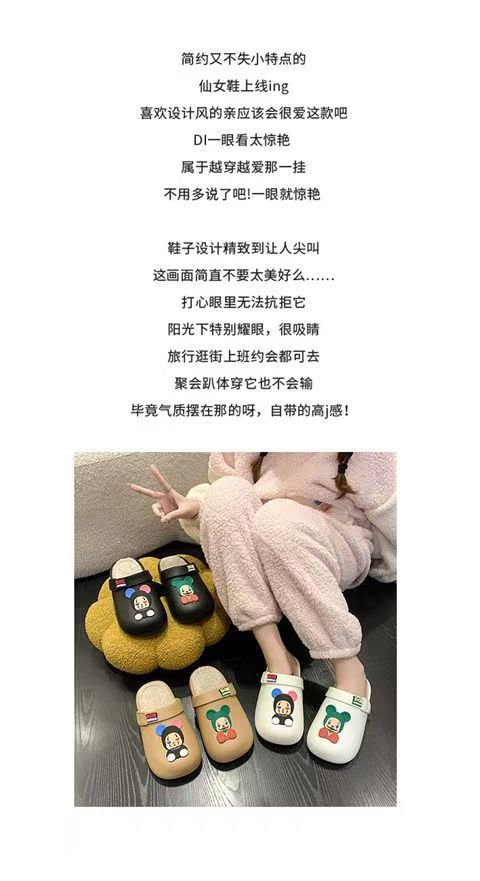 棉拖鞋女2024秋冬卡通防水防滑加绒毛毛包头半拖孕妇软底面包棉鞋