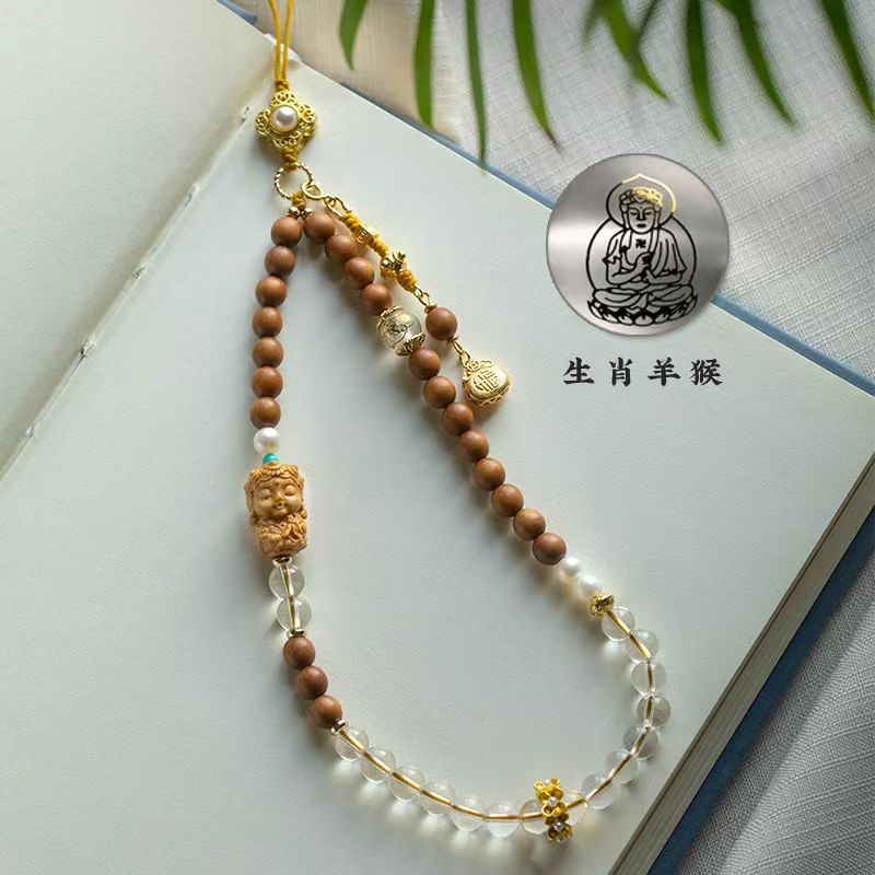 新中式手机链 手机挂件 高级感精致新款白水晶檀木手腕款串珠绳in