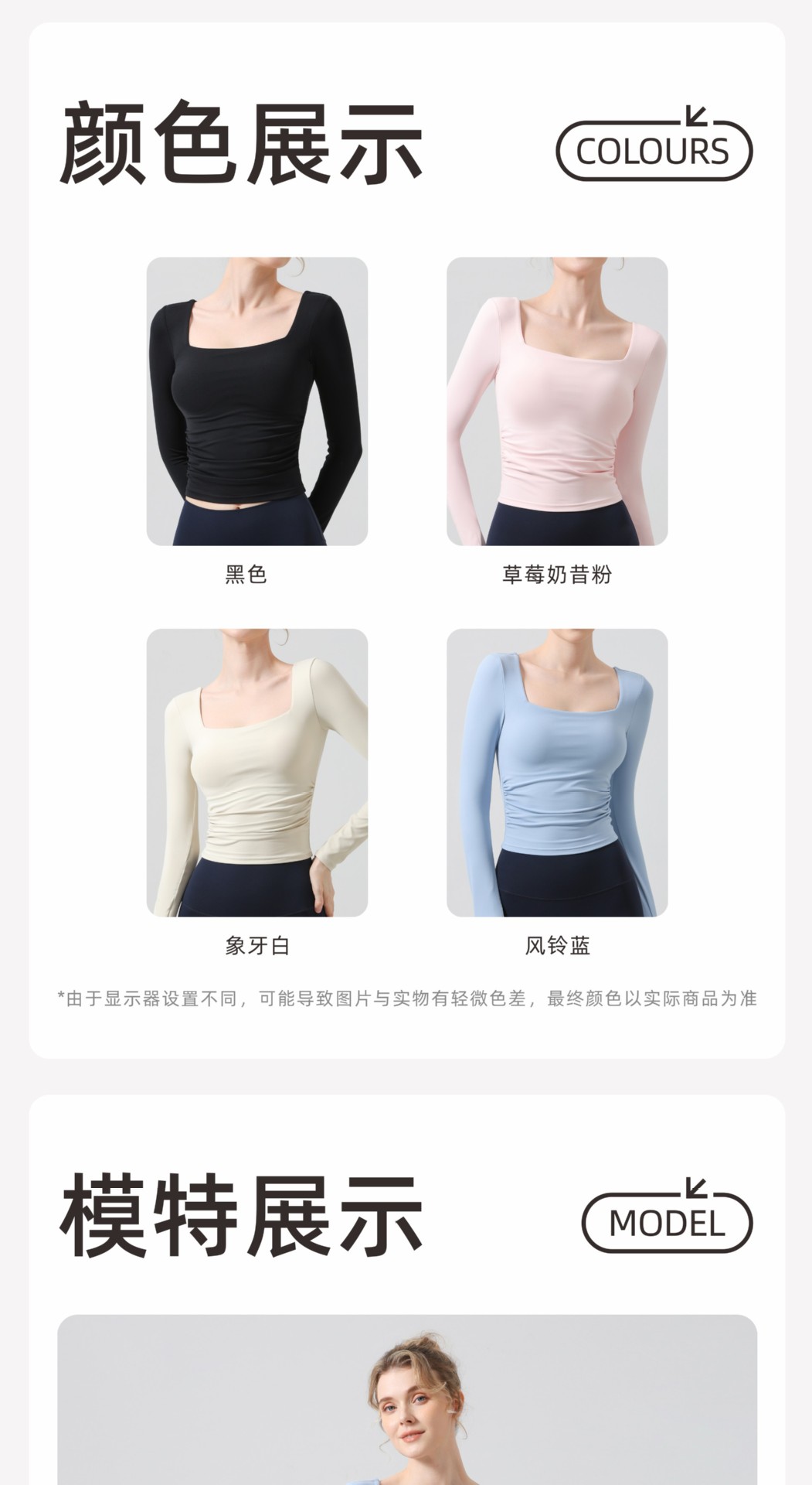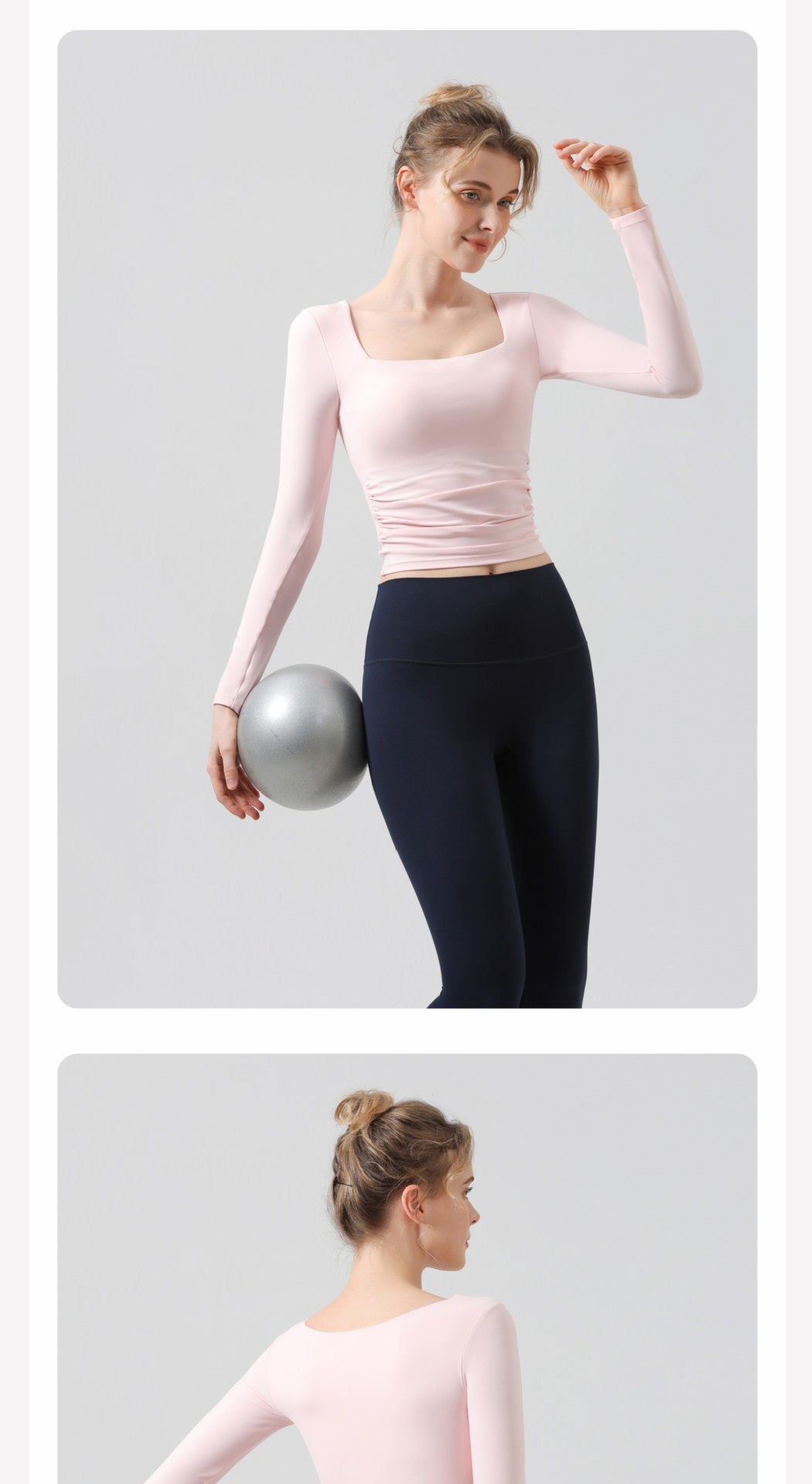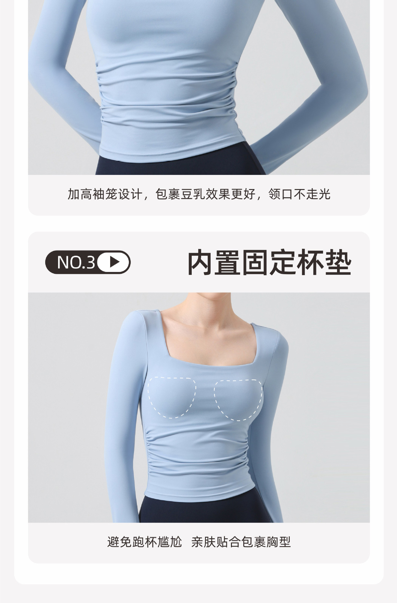 带胸垫裸感瑜伽服女长袖T恤显瘦健身上衣运动健身服普拉提训练服