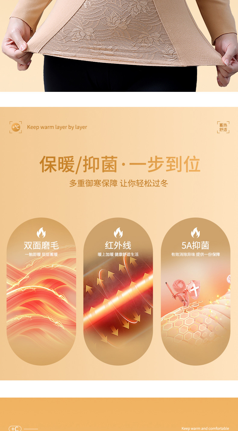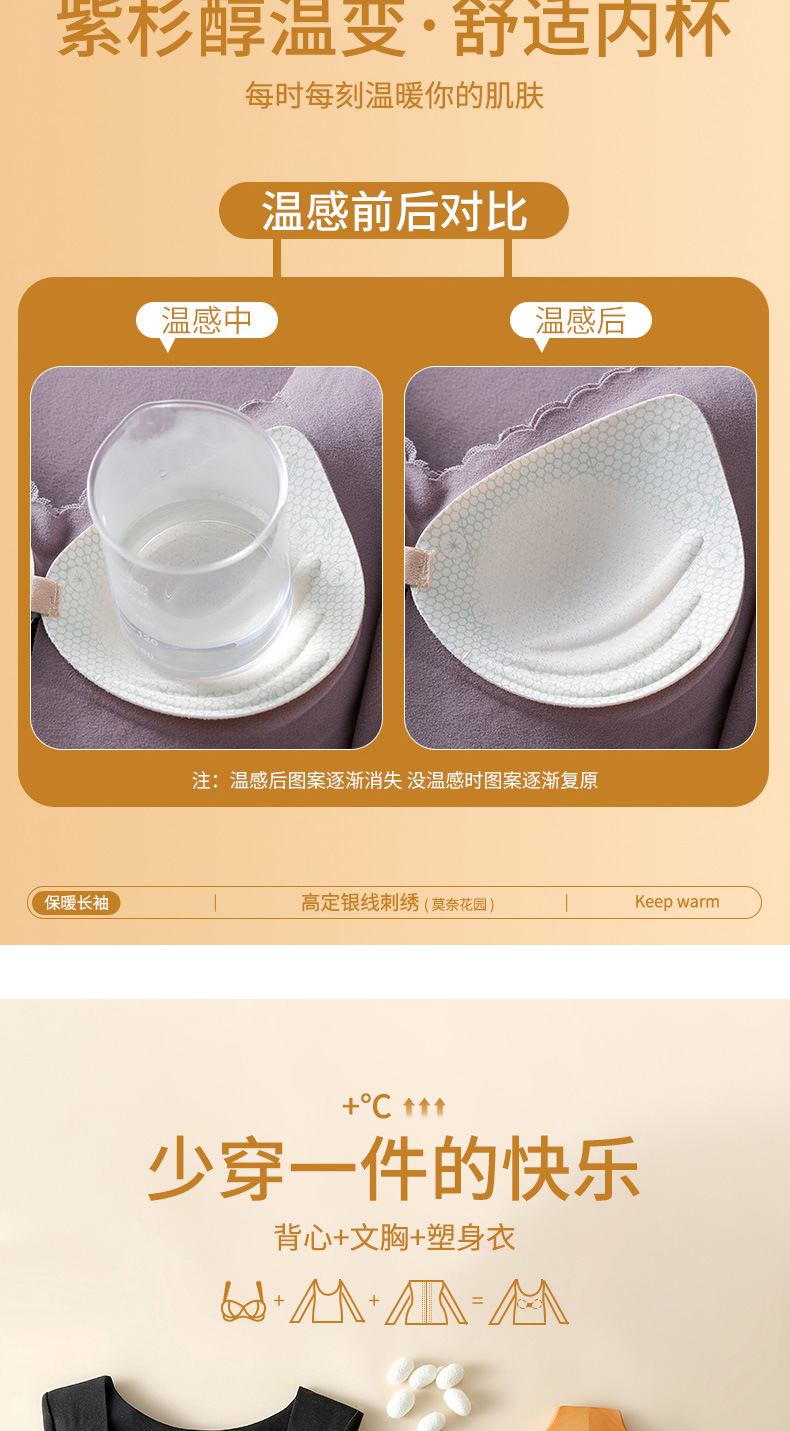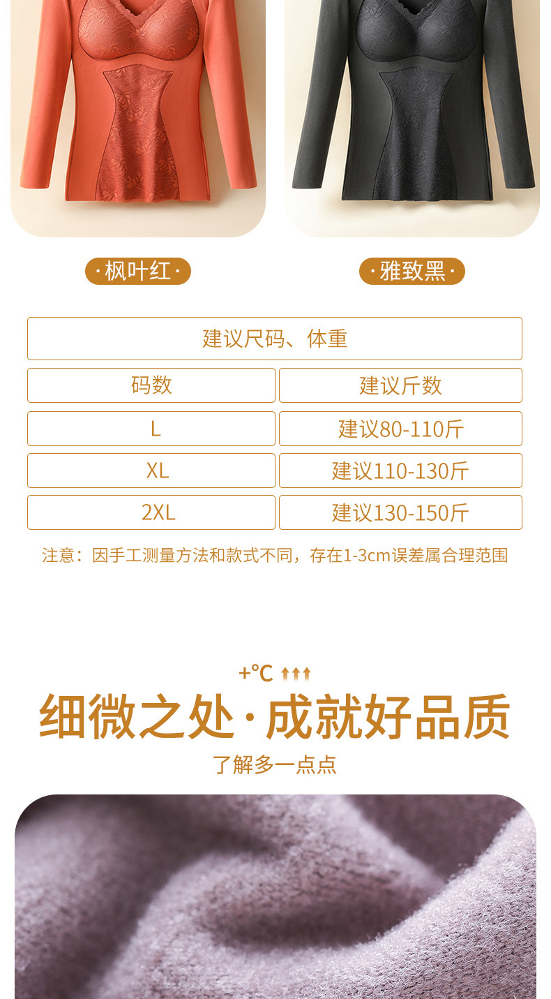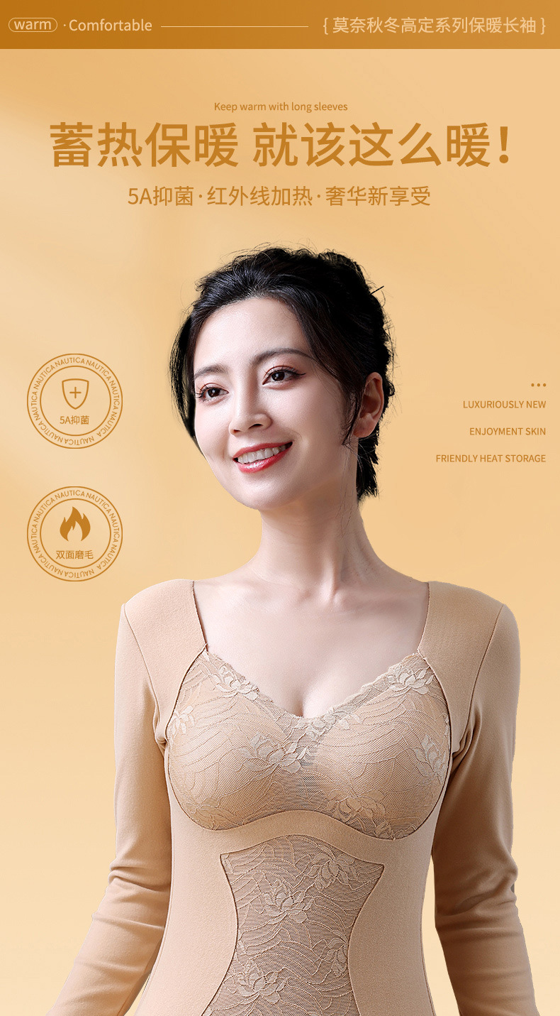 秋冬固定杯带胸垫长袖女士保暖内衣蓄热打底塑身上衣蕾丝保暖背心