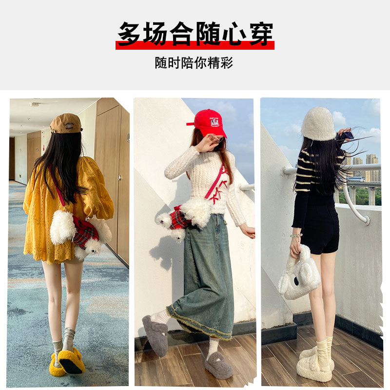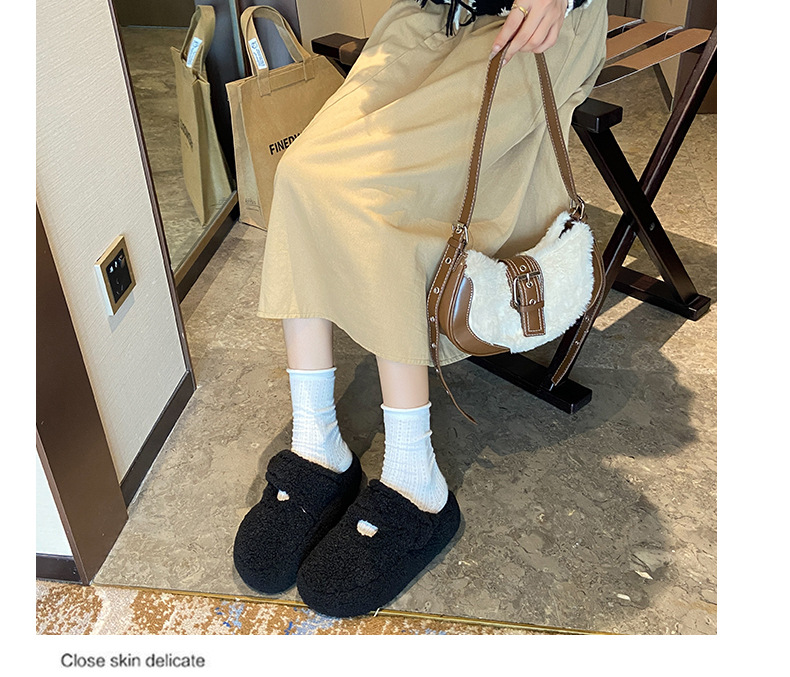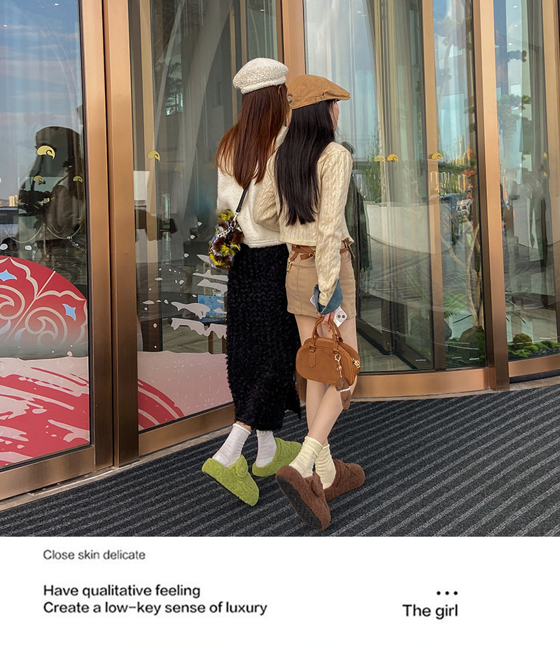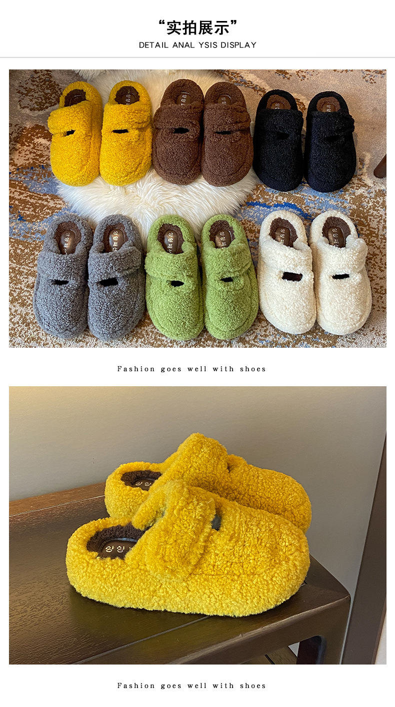 勃肯毛毛拖鞋女外穿2025秋冬新款厚底百搭加绒一脚蹬棉拖包头半拖