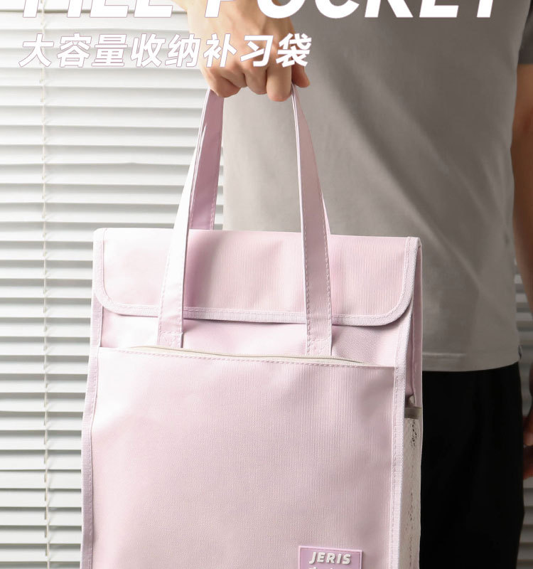 加厚莫兰迪手提大容量学生补习袋1-6年级男女孩儿童补课书包手袋