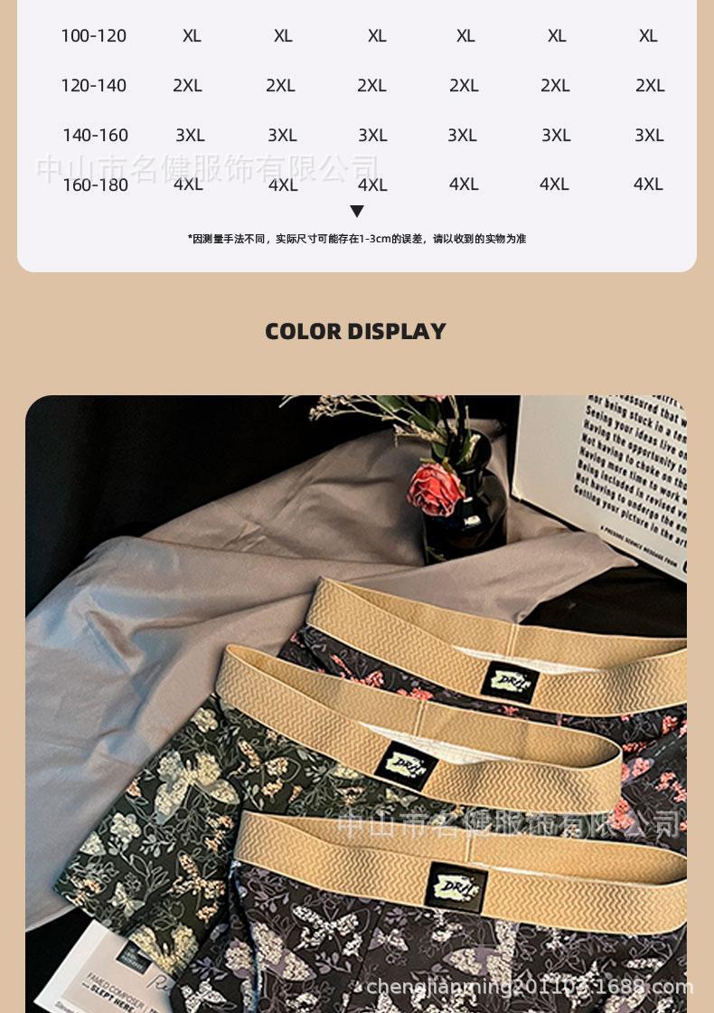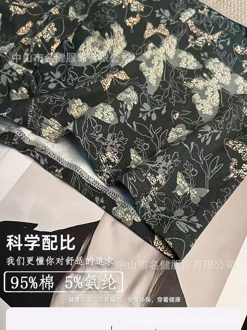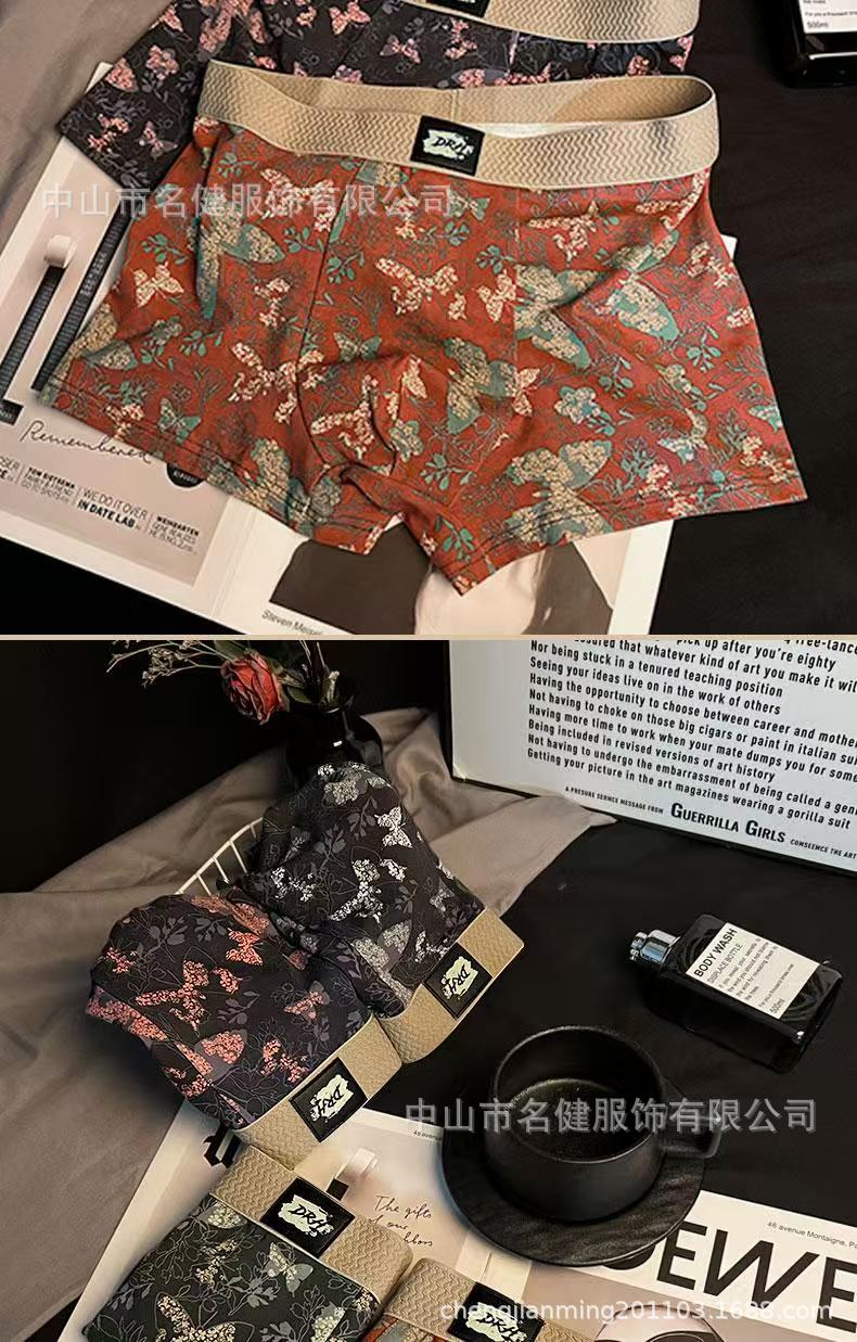 新款男士内裤纯棉时尚潮流蝴蝶印花内裤男款舒适透气新复古平角裤