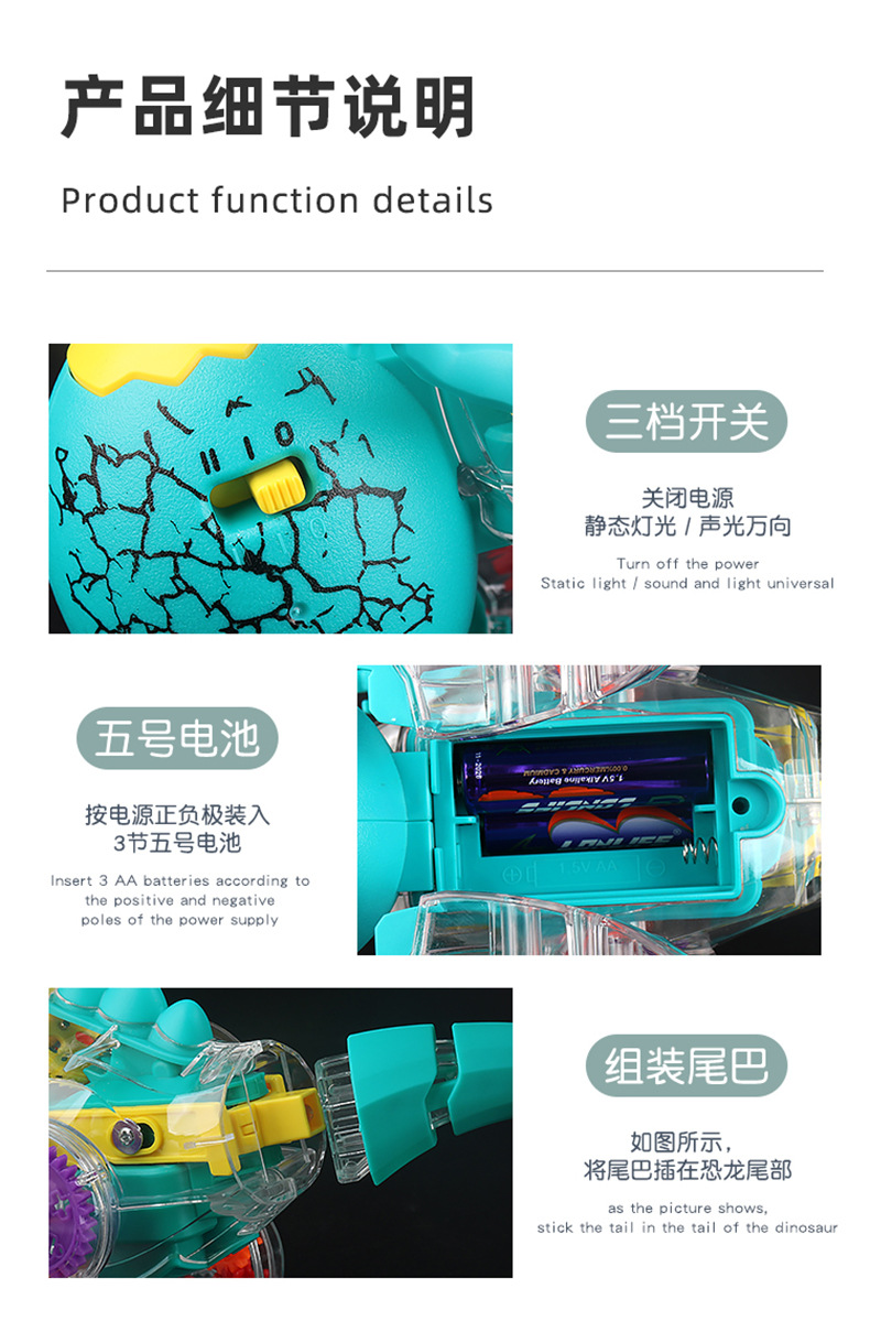 儿童手提灯笼恐龙玩具透明齿轮电动万向行驶音乐发光花灯礼物批发