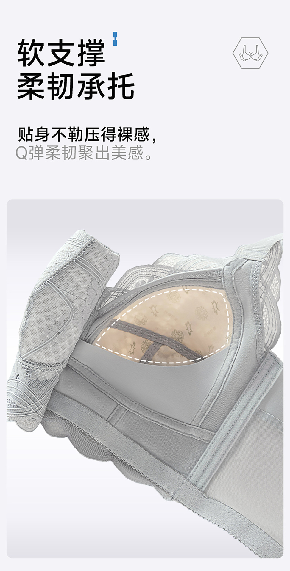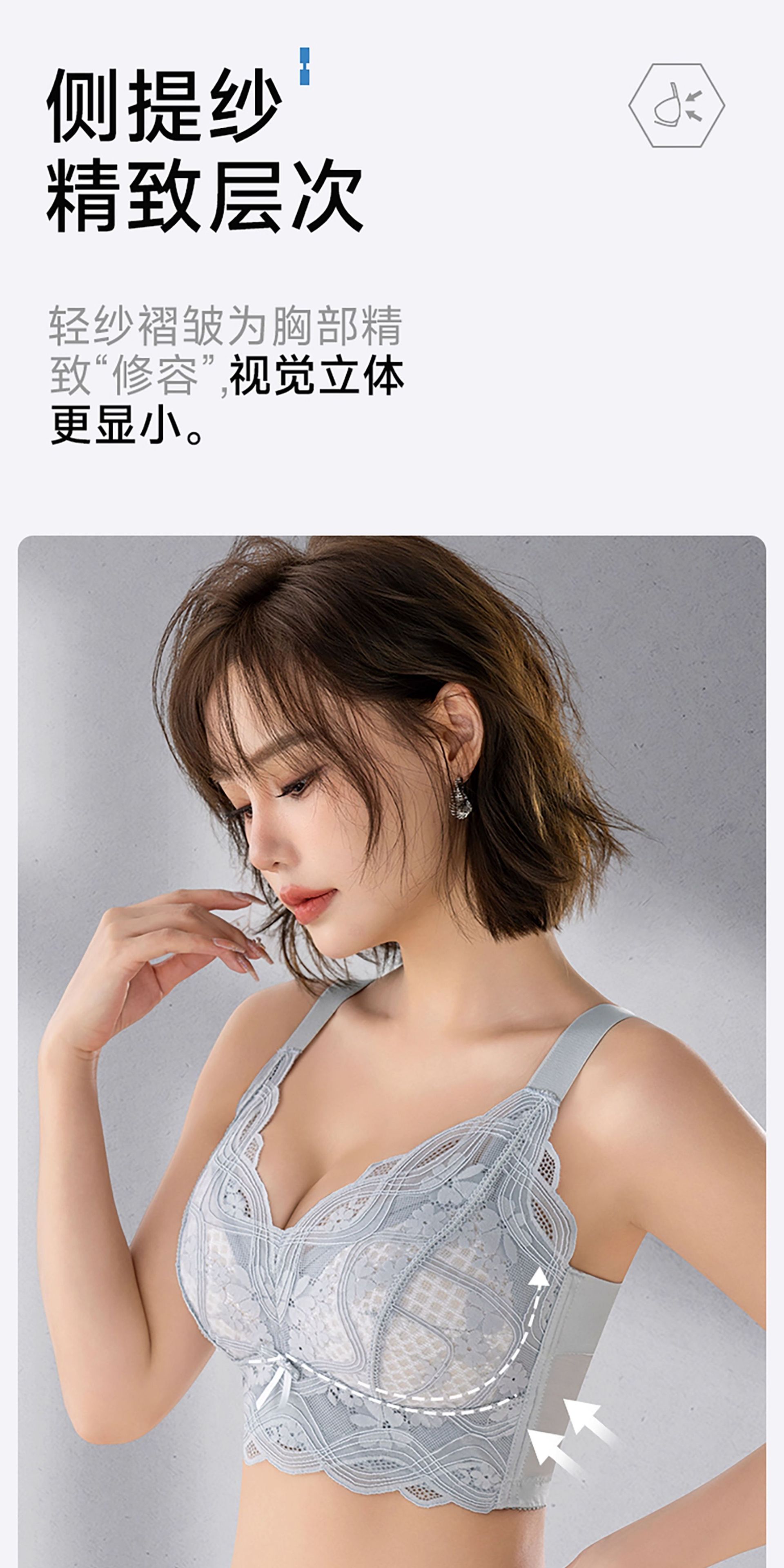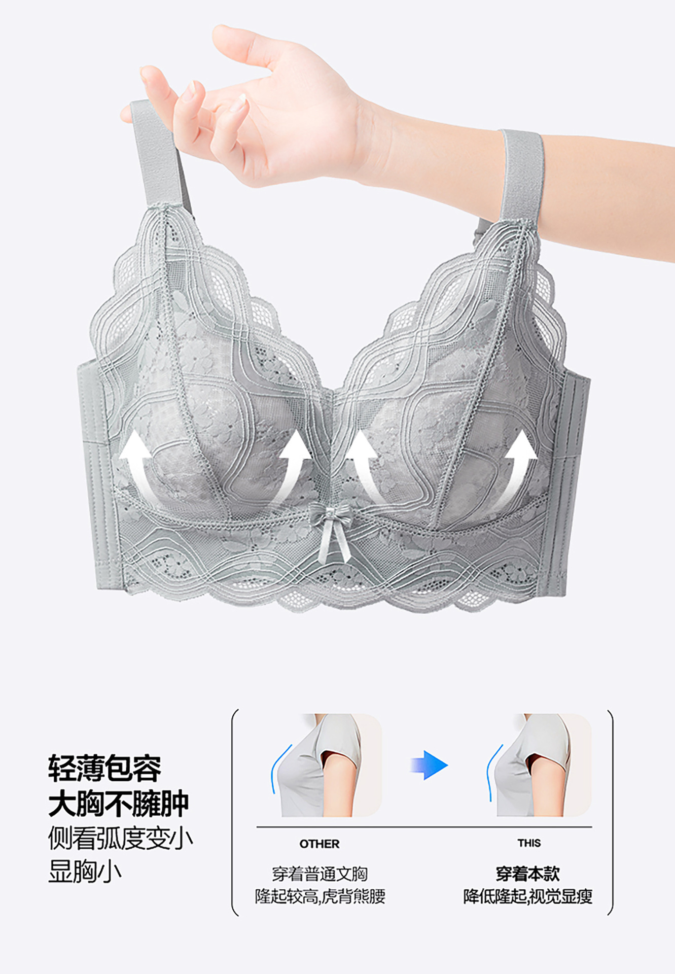 大胸显小蕾丝聚拢内衣无钢圈收副乳软支撑无痕大码调整型文胸