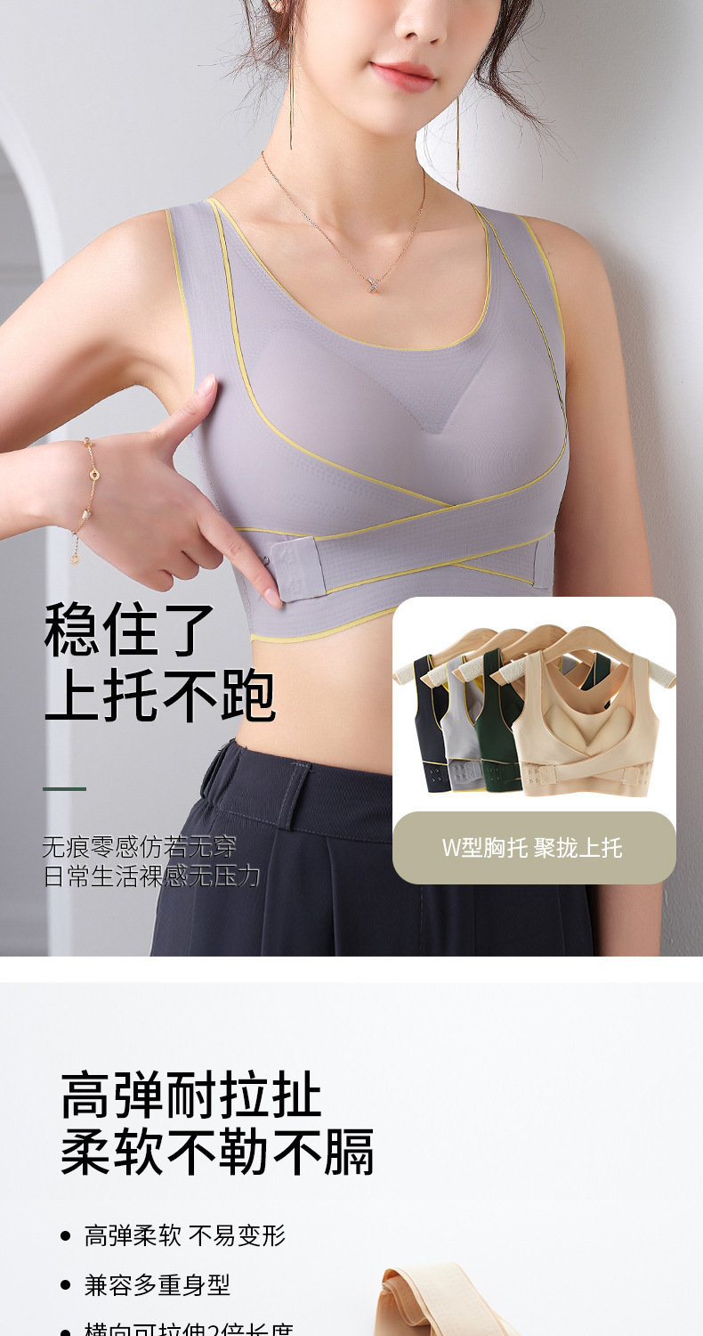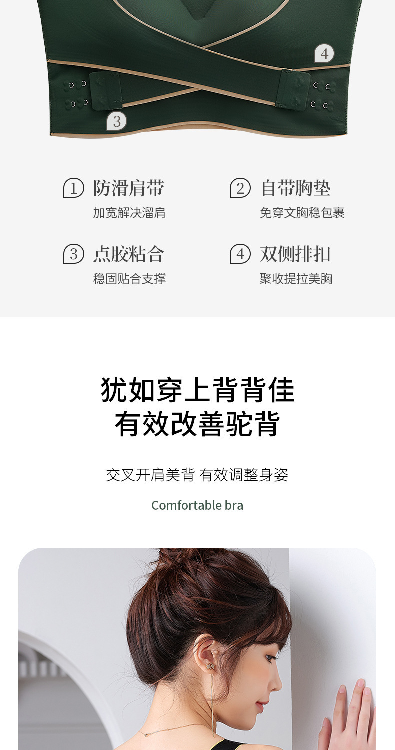 交叉侧扣运动背心女内搭带胸垫聚拢无钢圈内衣美背收副乳运动文胸