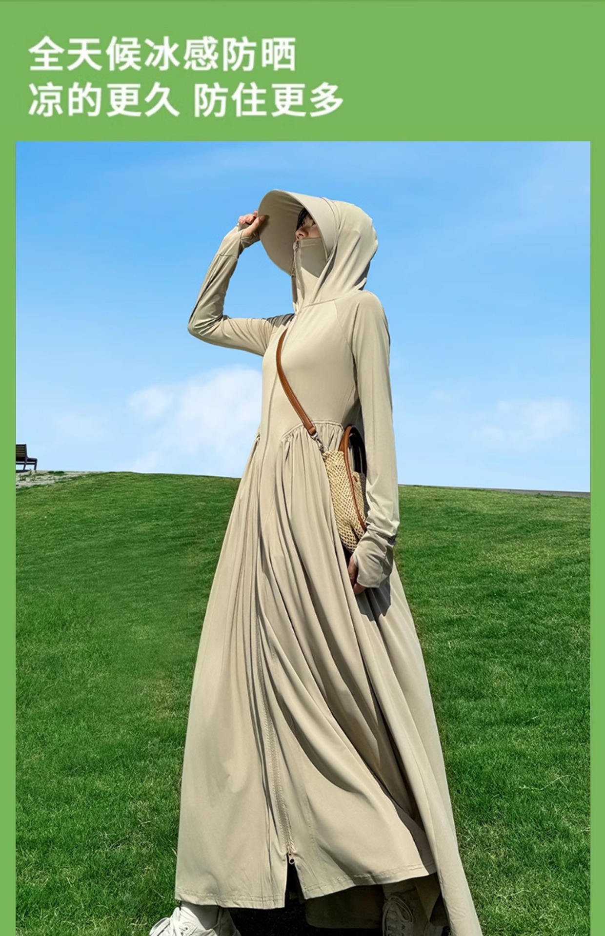 全身长款防晒衣女2025新款到脚踝防紫外线修身收腰冰丝裙摆防晒服