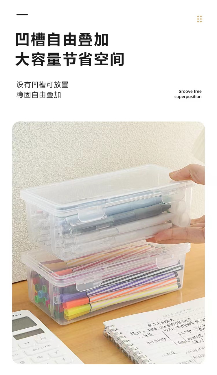 铅笔收纳盒大容量透明文具收纳盒笔筒装彩铅儿童蜡笔绘画水彩笔袋