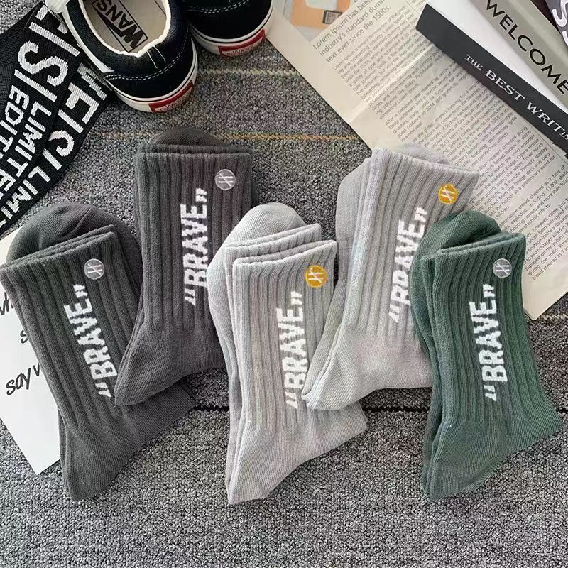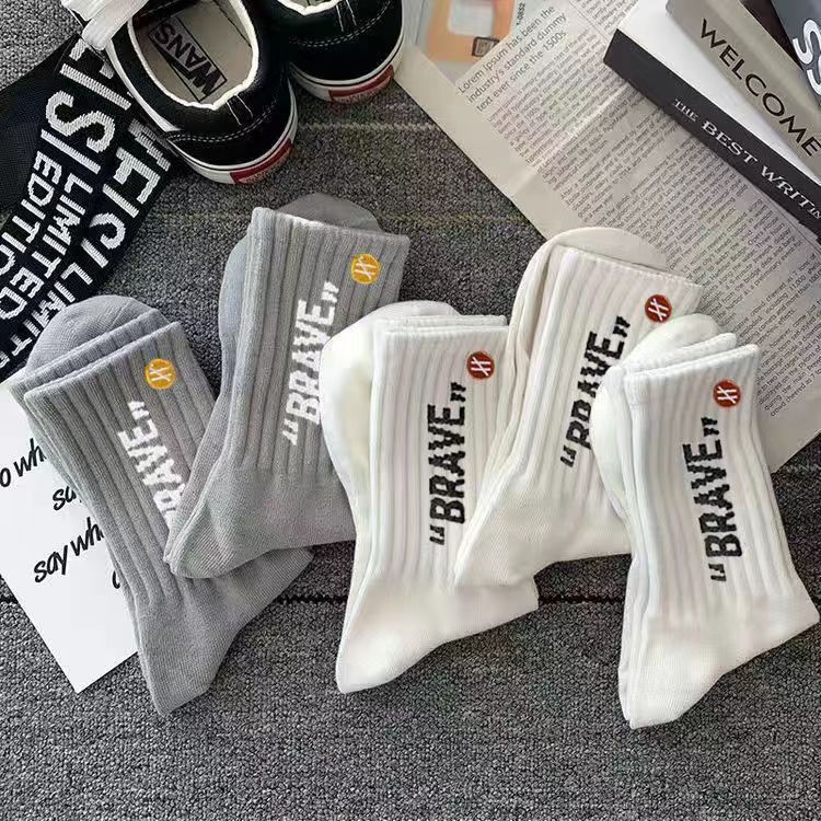 袜子男中长筒秋冬季防臭情侣耐磨吸汗字母潮流运动袜高颜值青少年