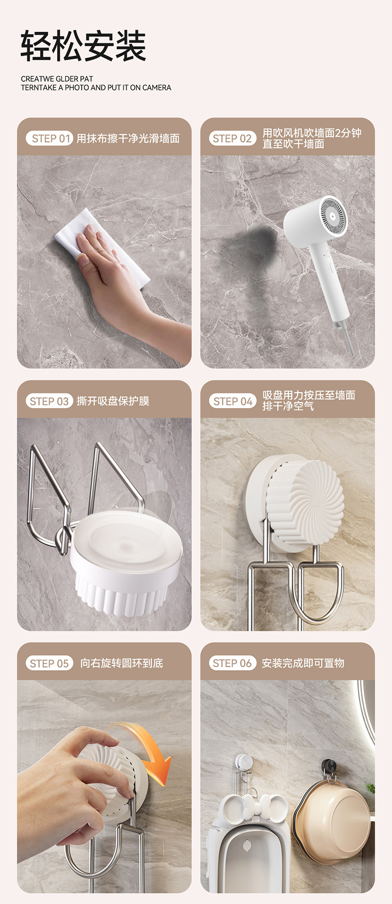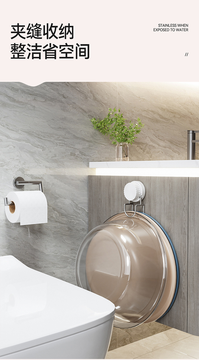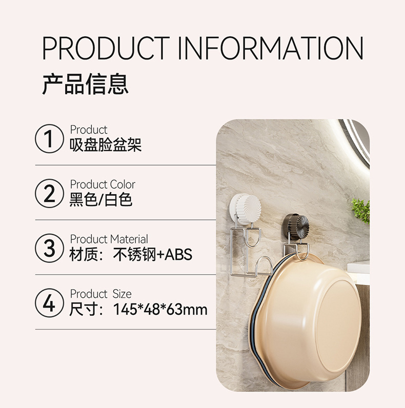 旋转不锈钢吸盘脸盆挂架免打孔壁挂式挂盆浴室盆子挂钩收纳置物架