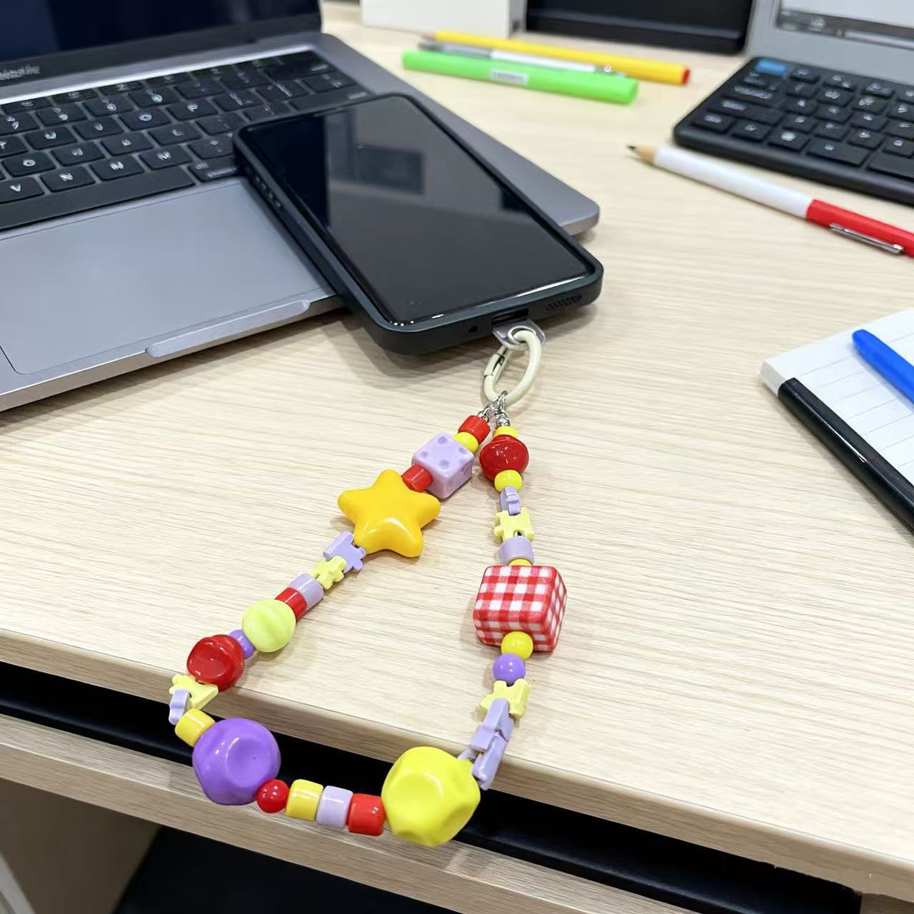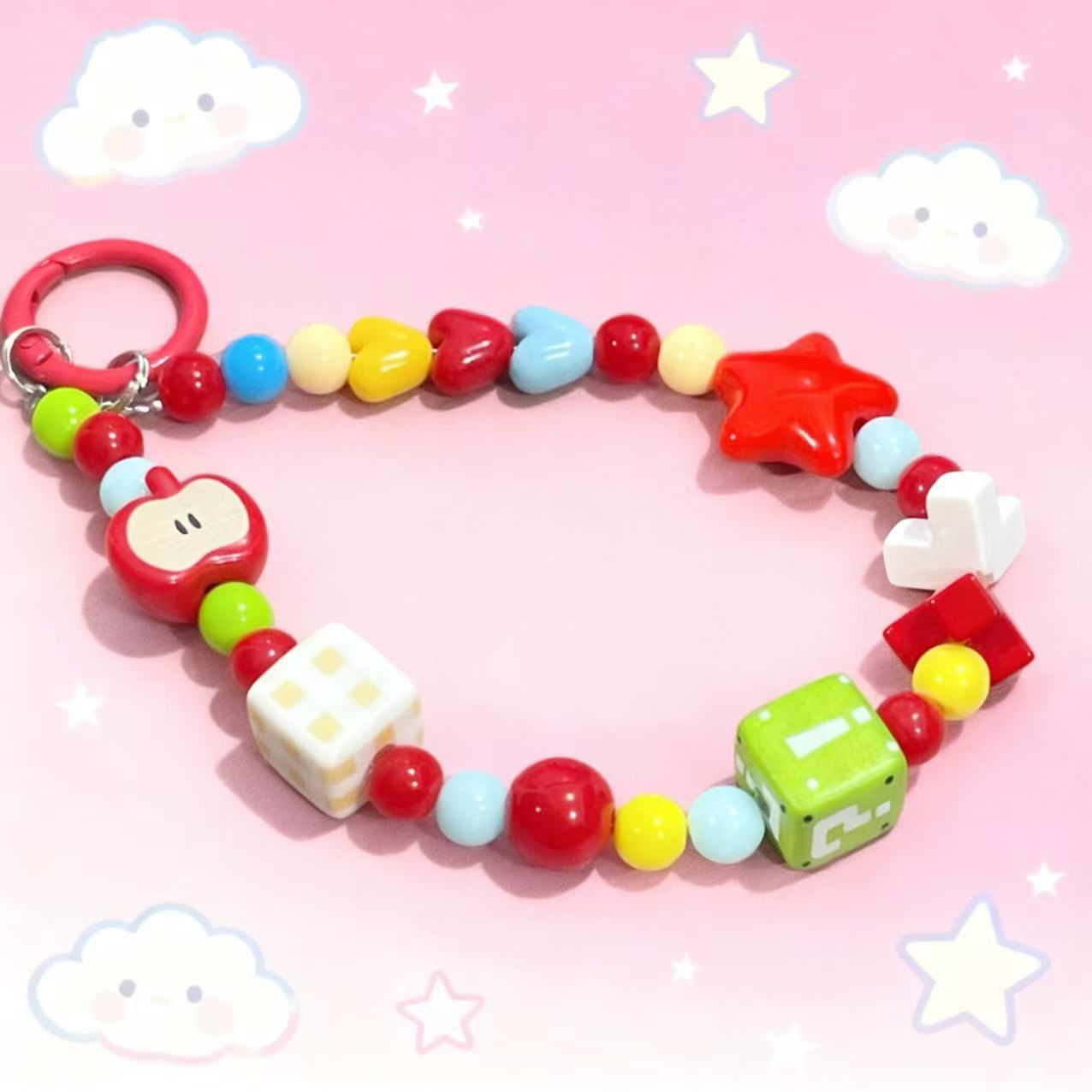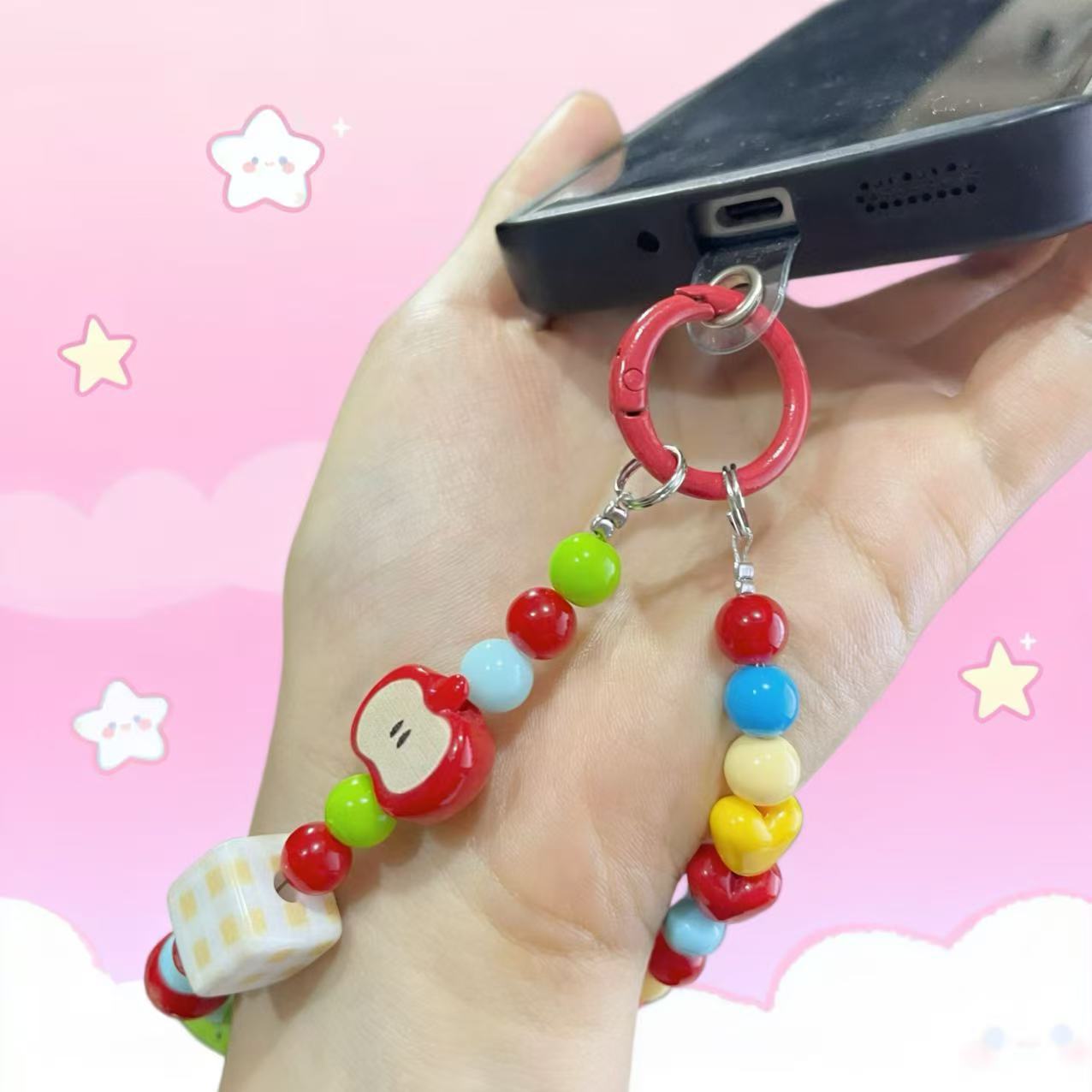 手作多巴胺苹果核ins彩色挂饰手工可爱串珠手机链ccd挂绳相机挂件