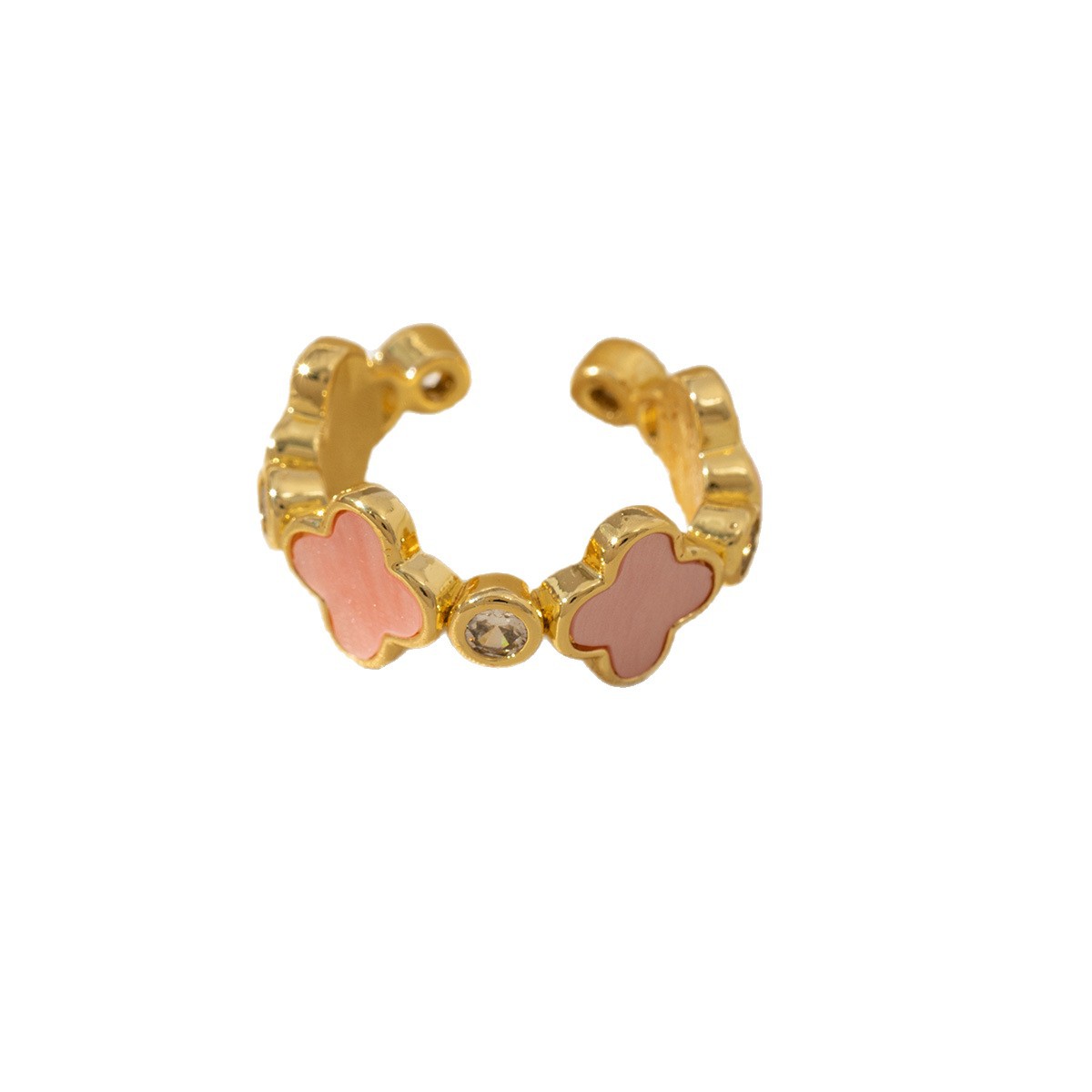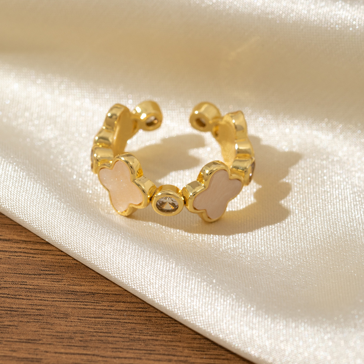 四叶草开口戒指女镶嵌天然母贝简约时尚持久不掉色可调节百搭指环