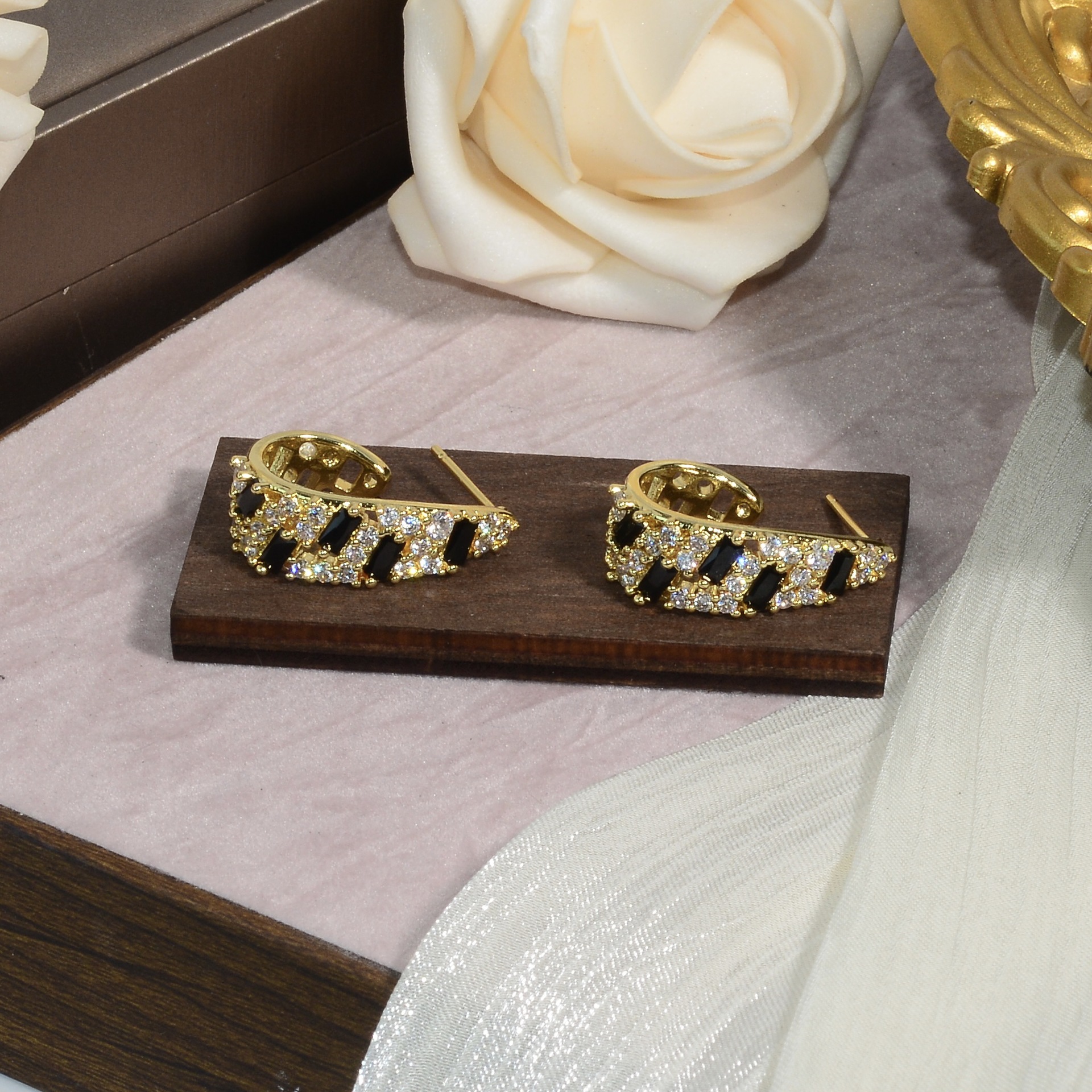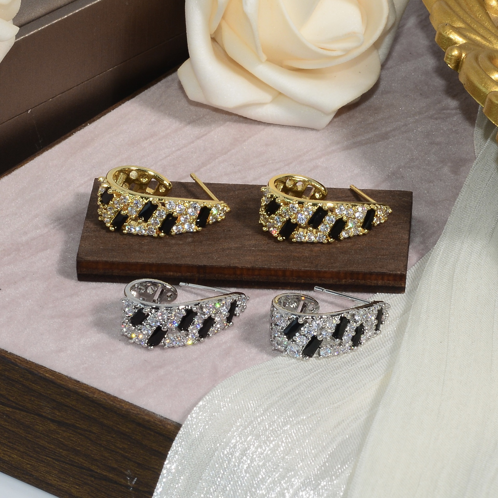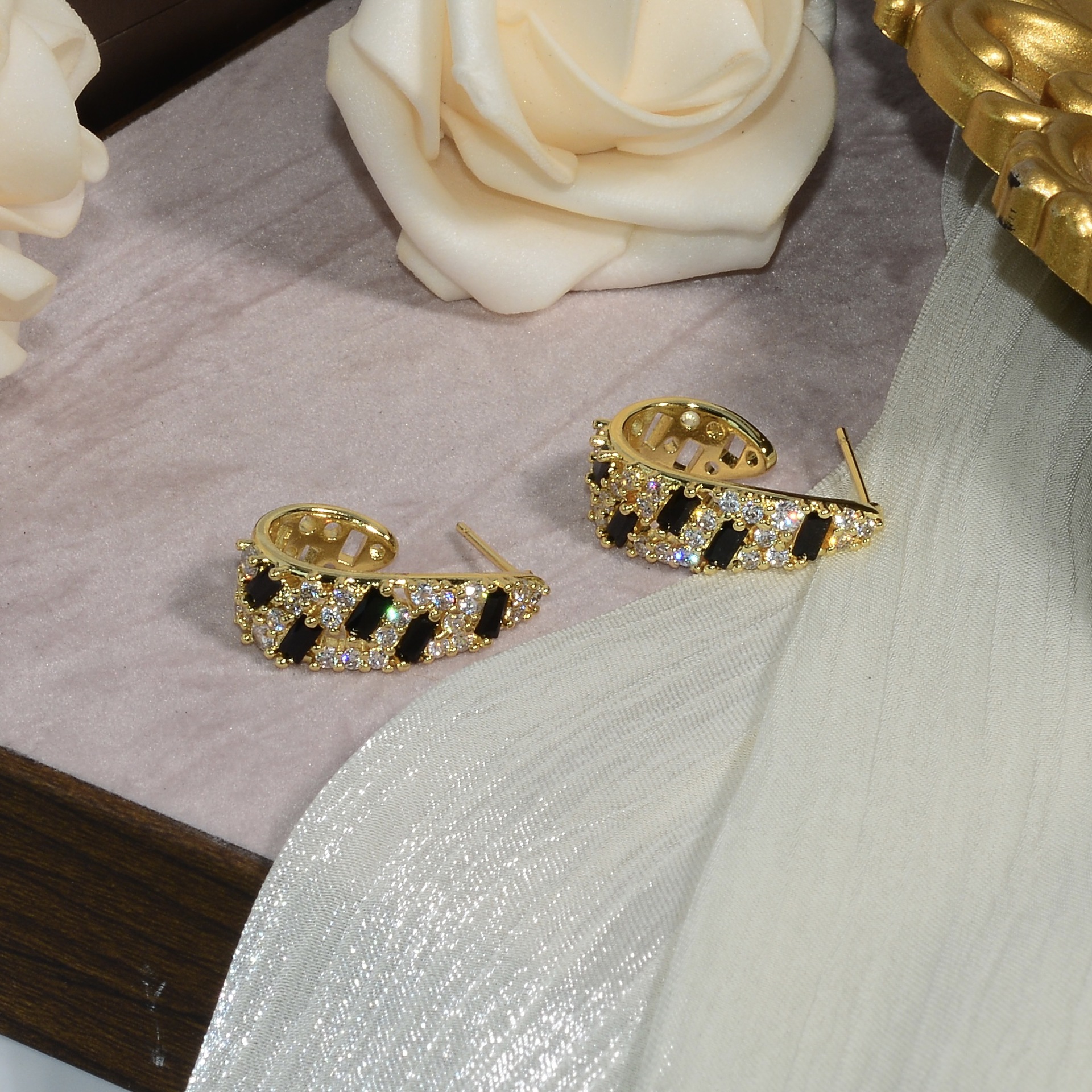 不规则滴油鎏金几何造型耳钉锆石交错闪耀极具高级感轻奢百搭耳饰
