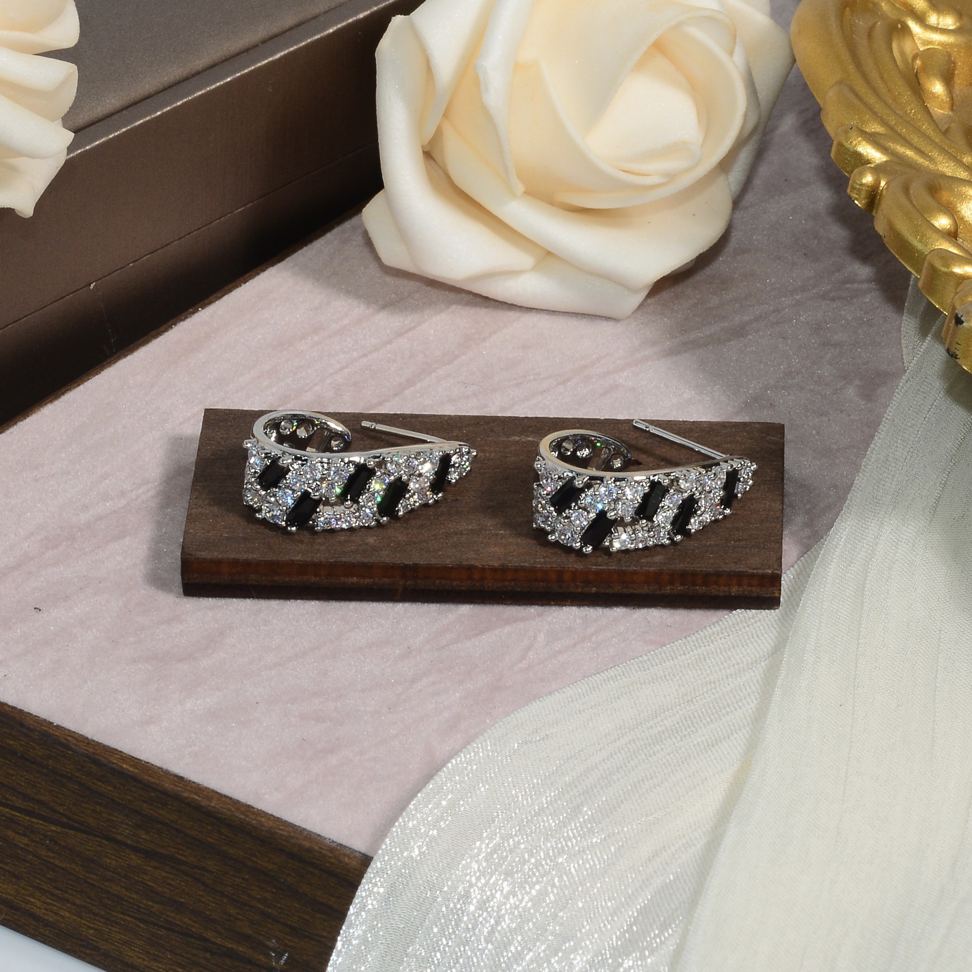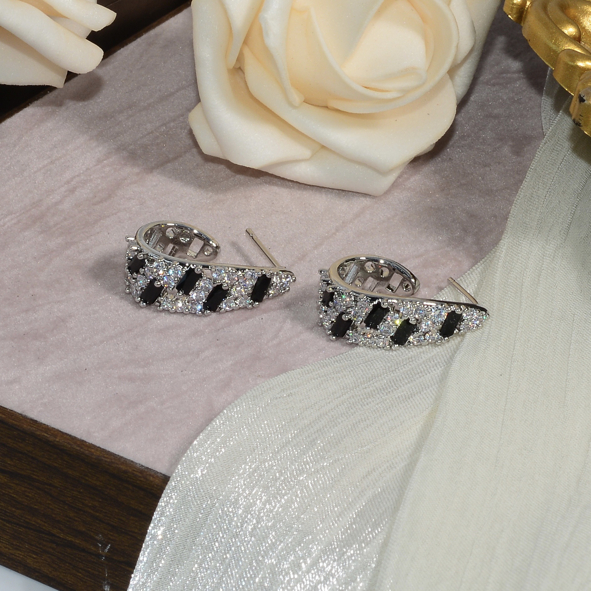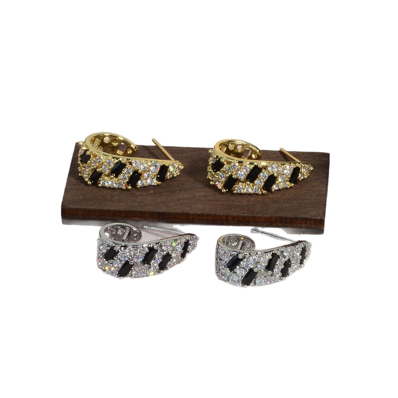 不规则滴油鎏金几何造型耳钉锆石交错闪耀极具高级感轻奢百搭耳饰
