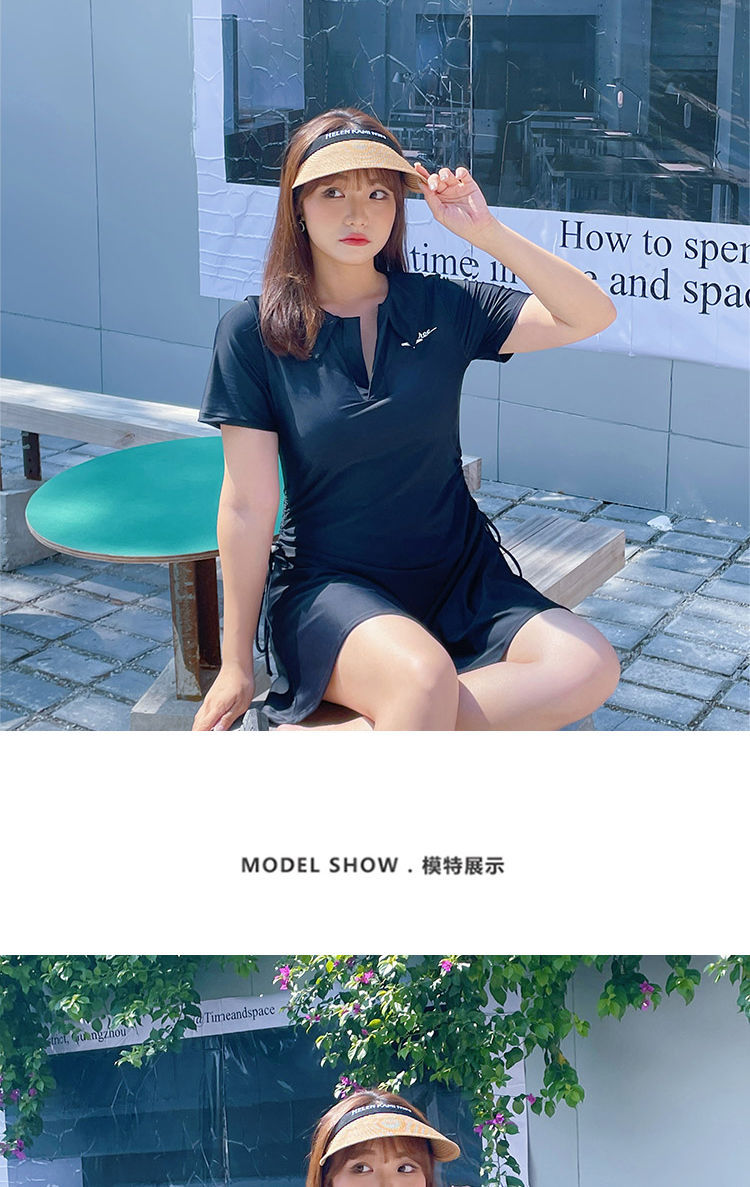 大码泳衣遮肉显瘦女胖mm专业运动分体裙式泡温泉短袖时尚新款泳装