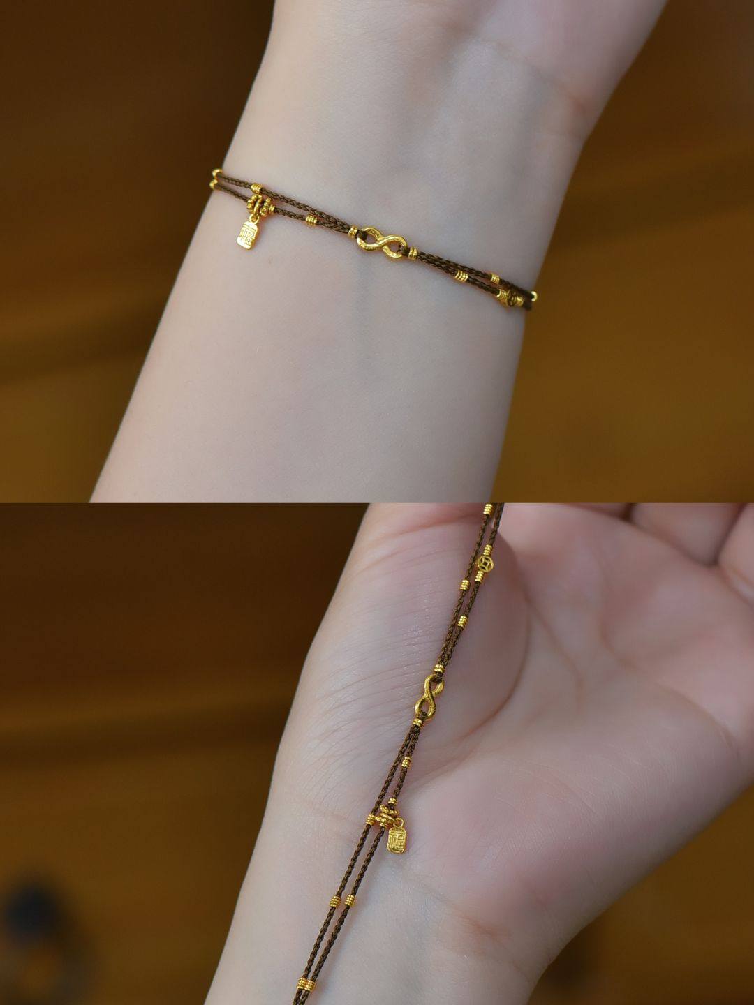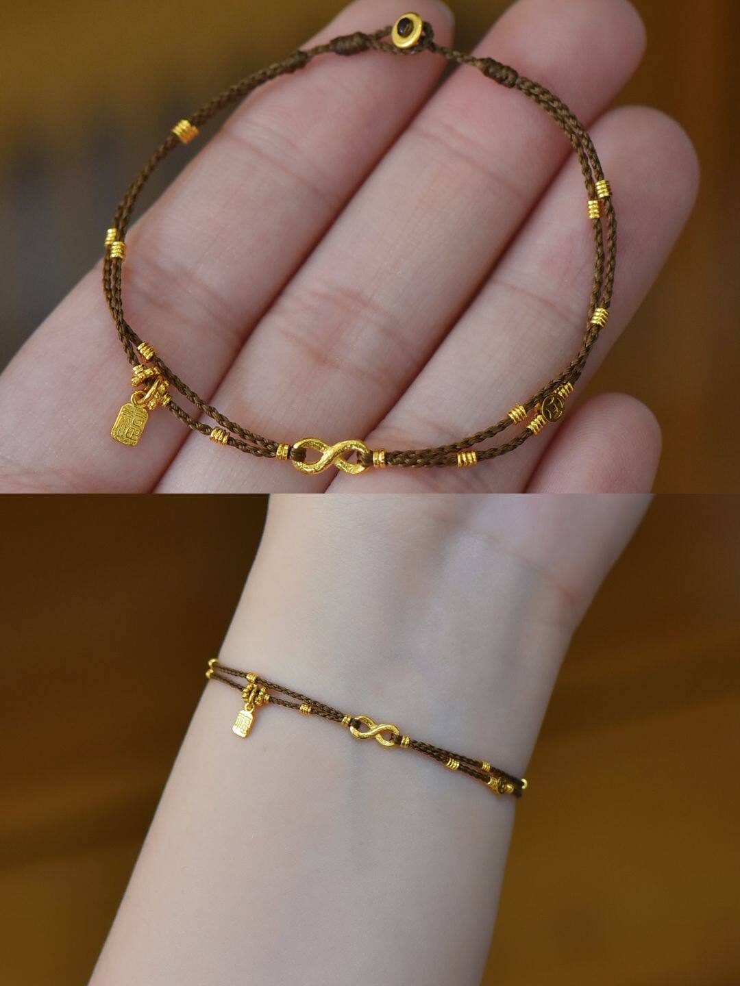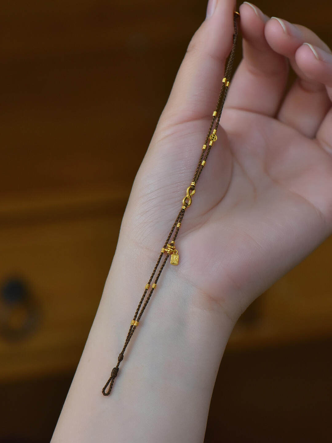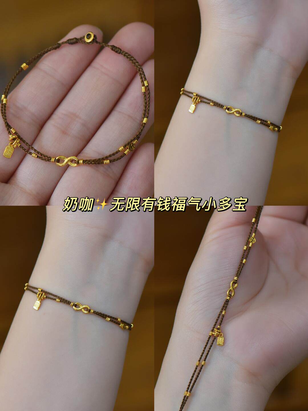 「无限有钱」气小多宝镀8k金手绳新中式奶咖手编织小众显白