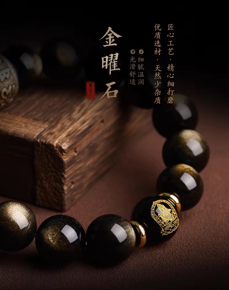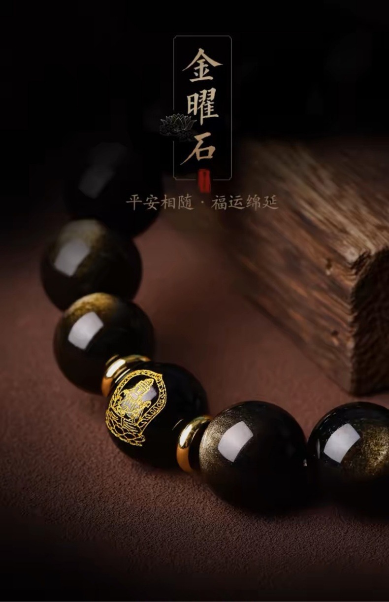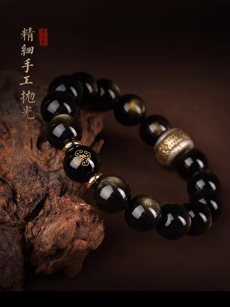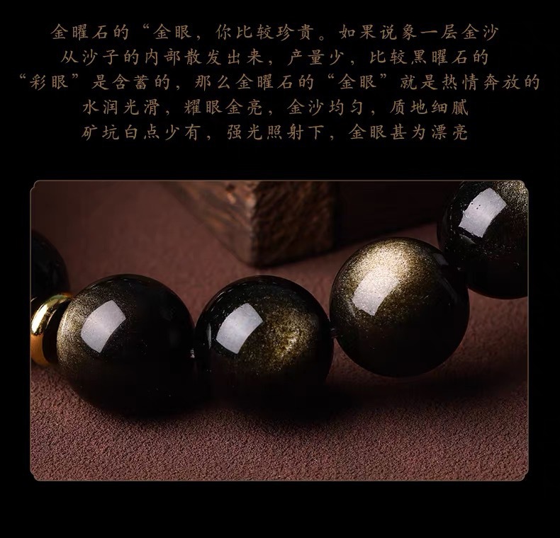 厂家直销保真天然黑曜石手链男士金曜石手串男女本命年生肖蛇佛珠