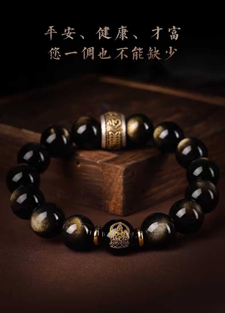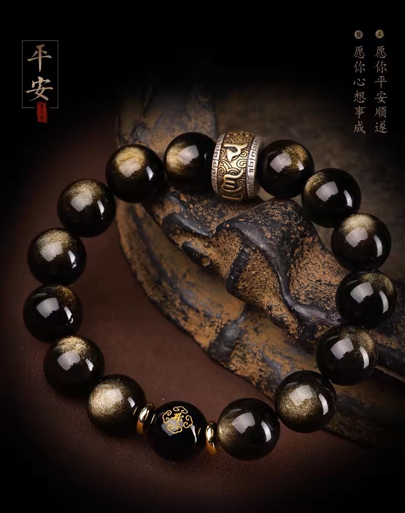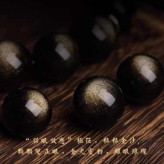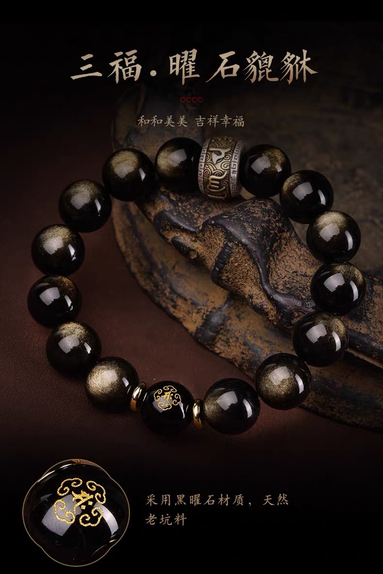 厂家直销保真天然黑曜石手链男士金曜石手串男女本命年生肖蛇佛珠
