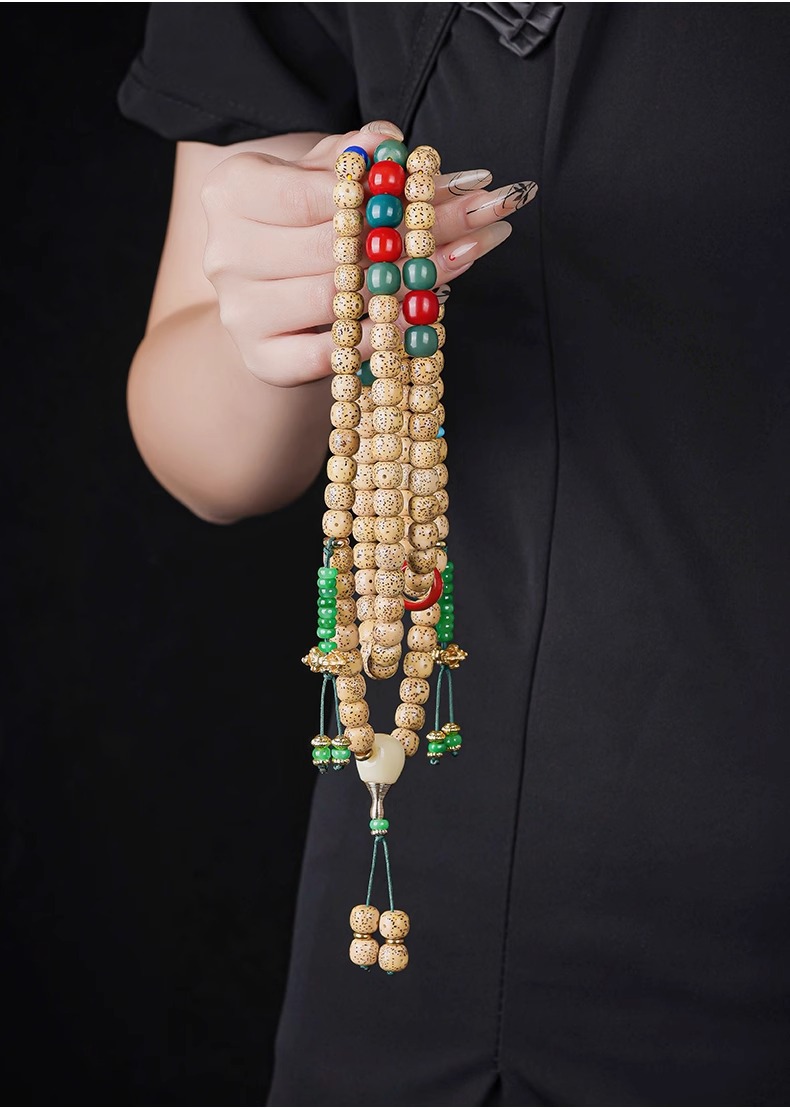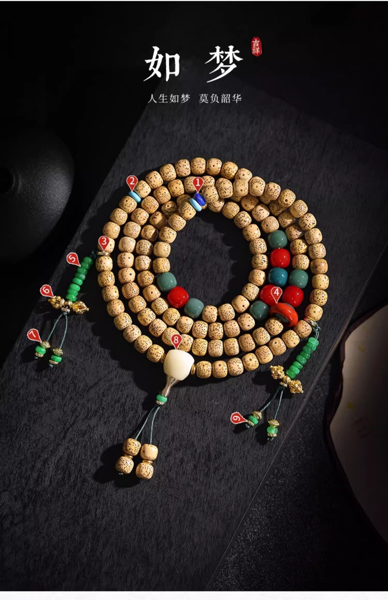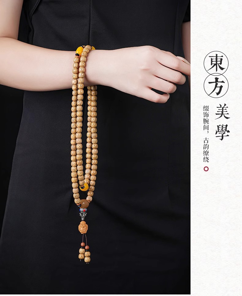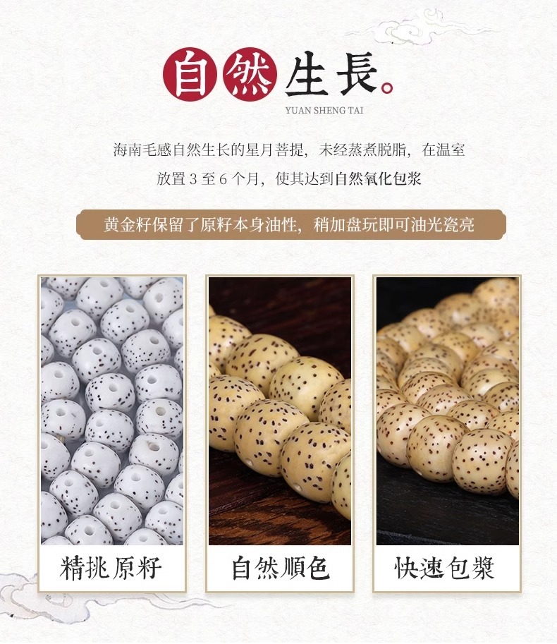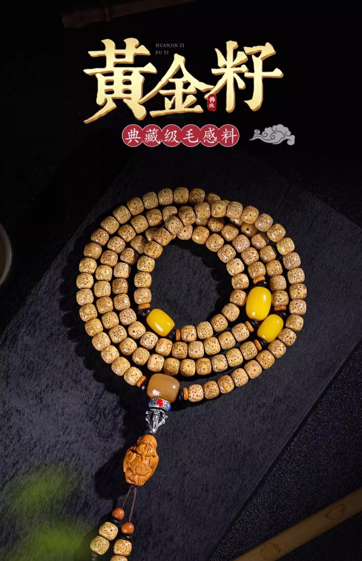 批发原生态海南鸡油黄星月菩提108颗手串老型桶黄金籽文玩佛珠男