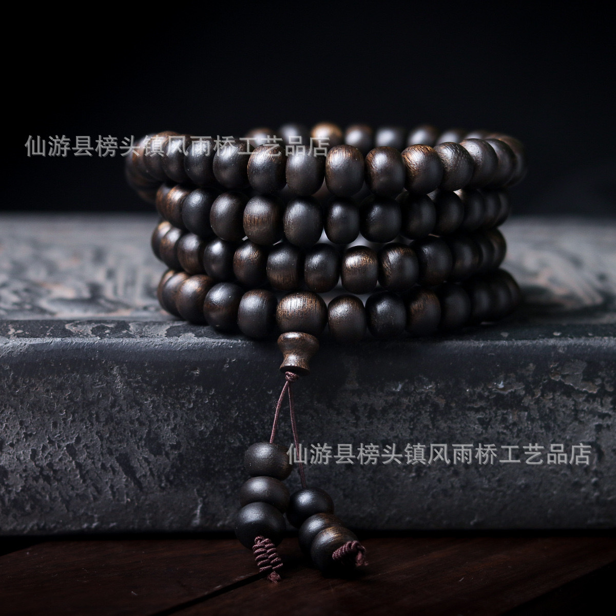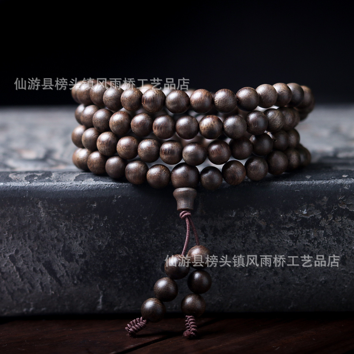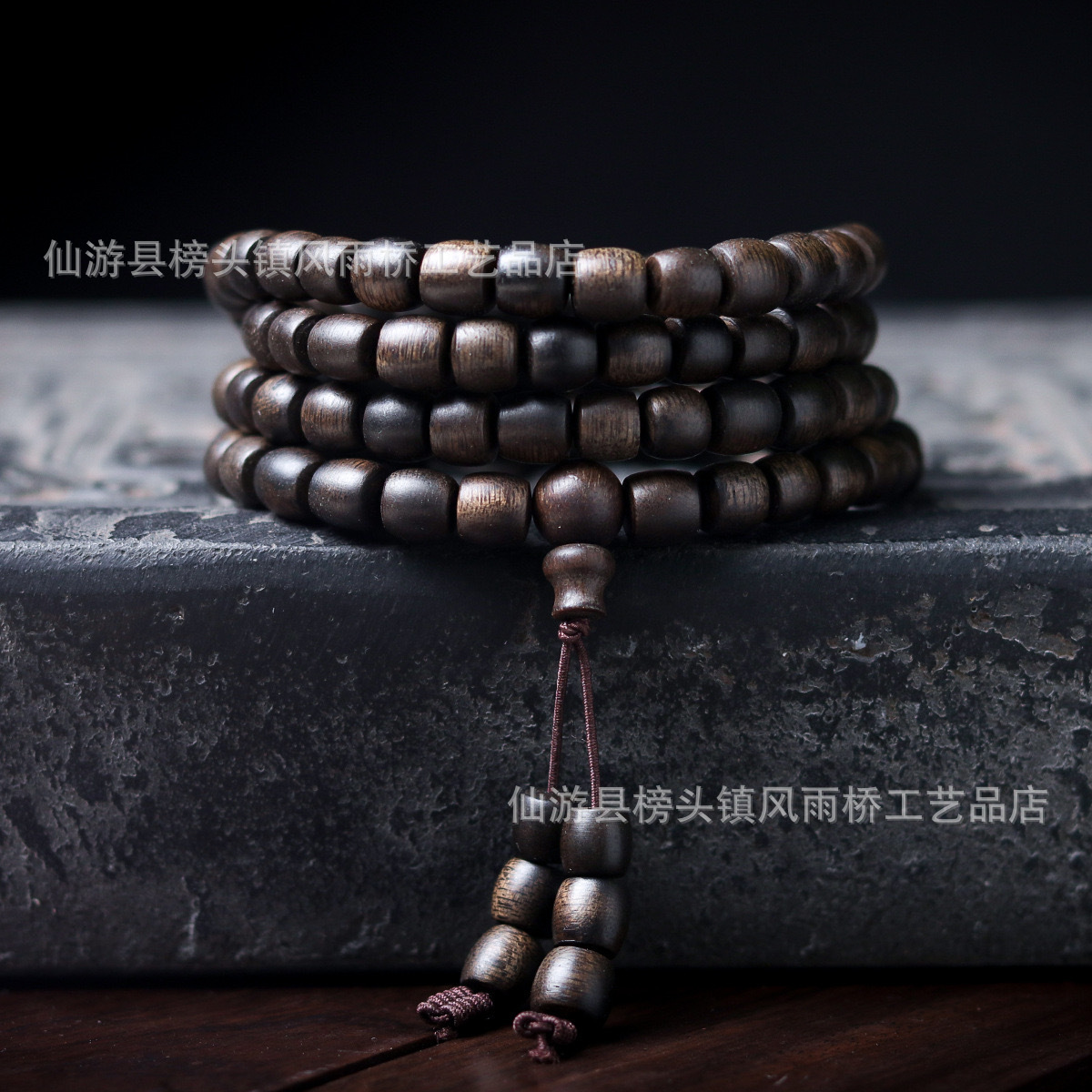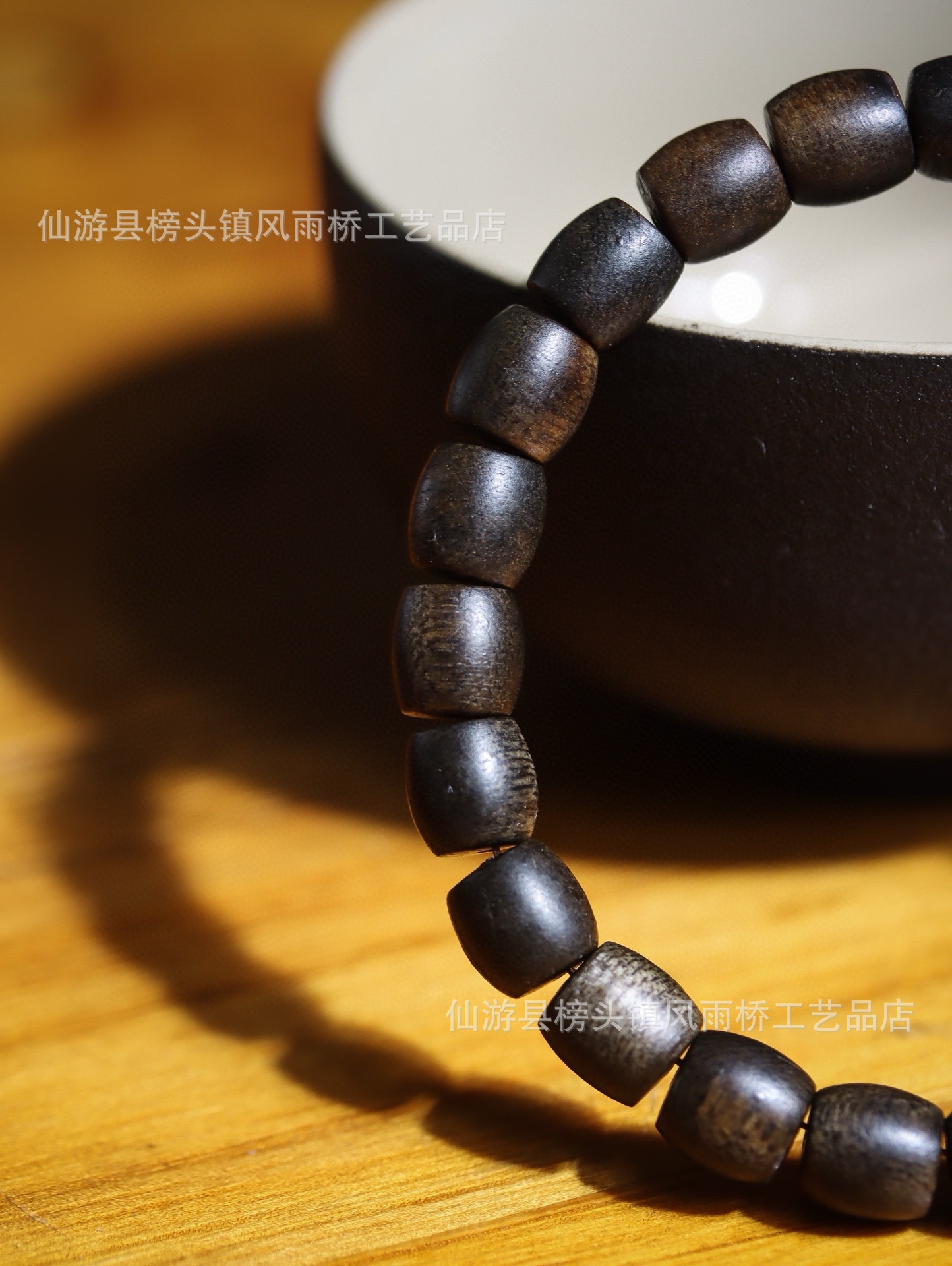 沉香木黑奇楠高油沉水高品质木质沉香手串108颗佛珠圆桶珠手饰