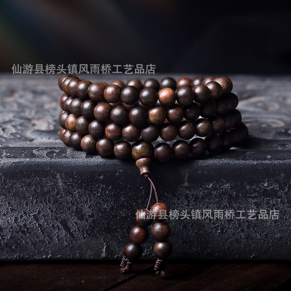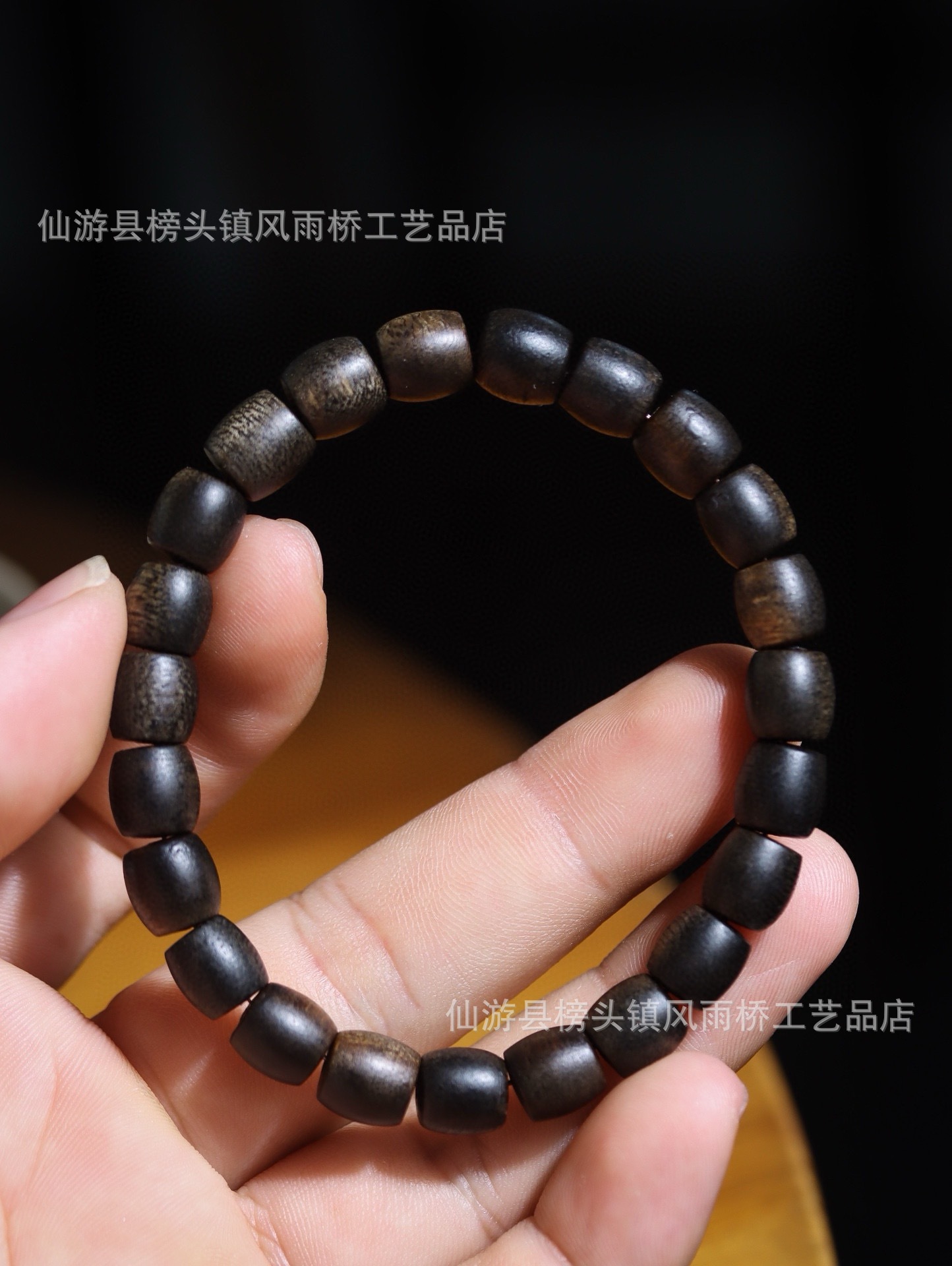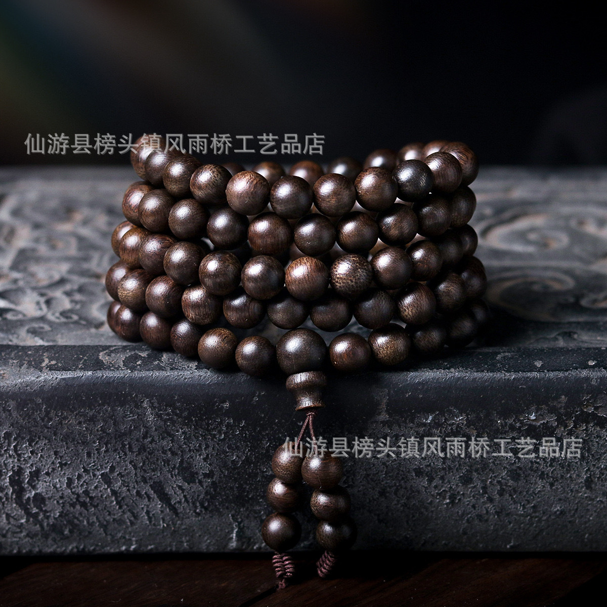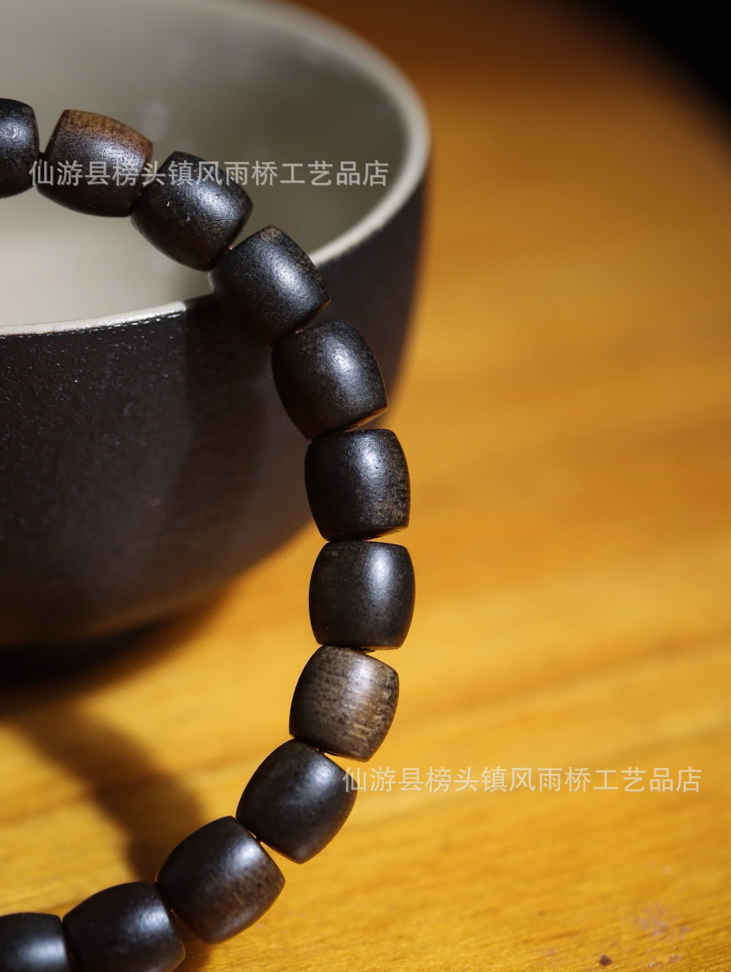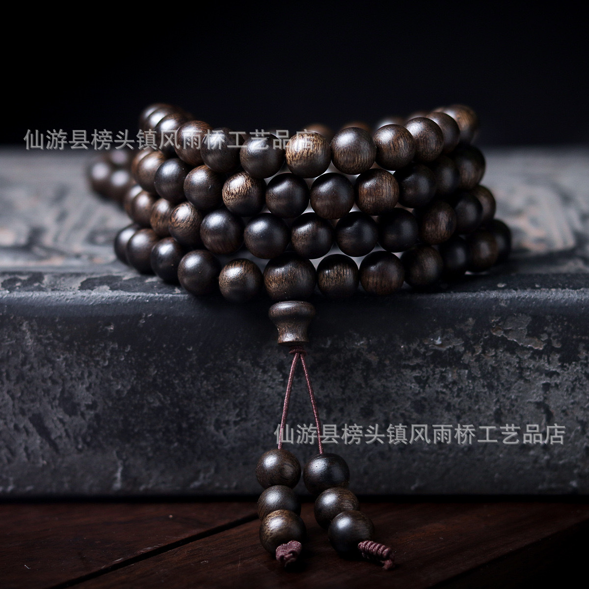 沉香木黑奇楠高油沉水高品质木质沉香手串108颗佛珠圆桶珠手饰