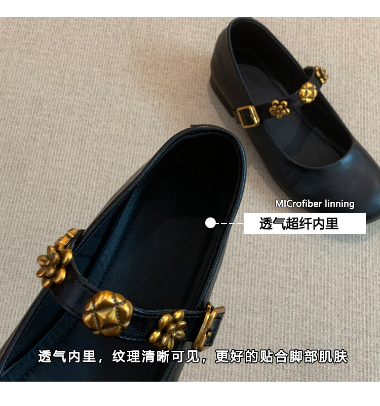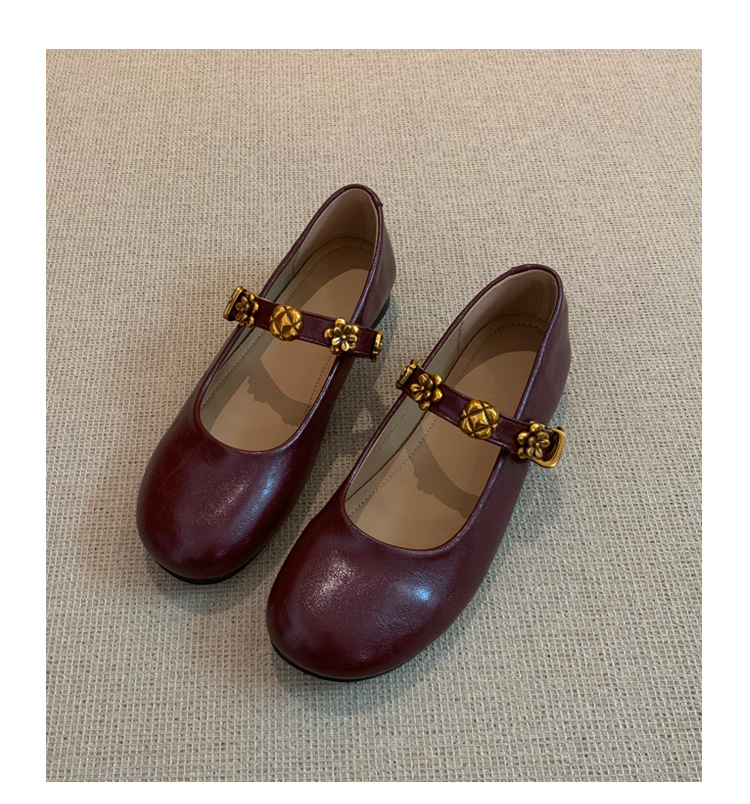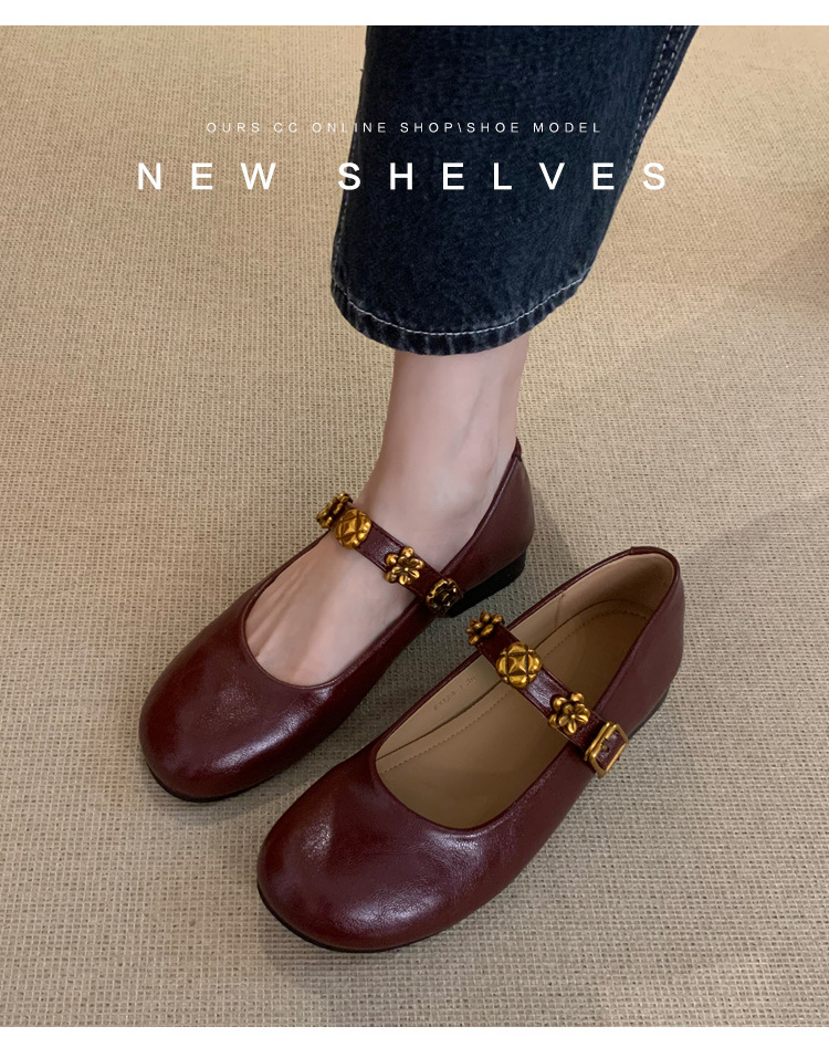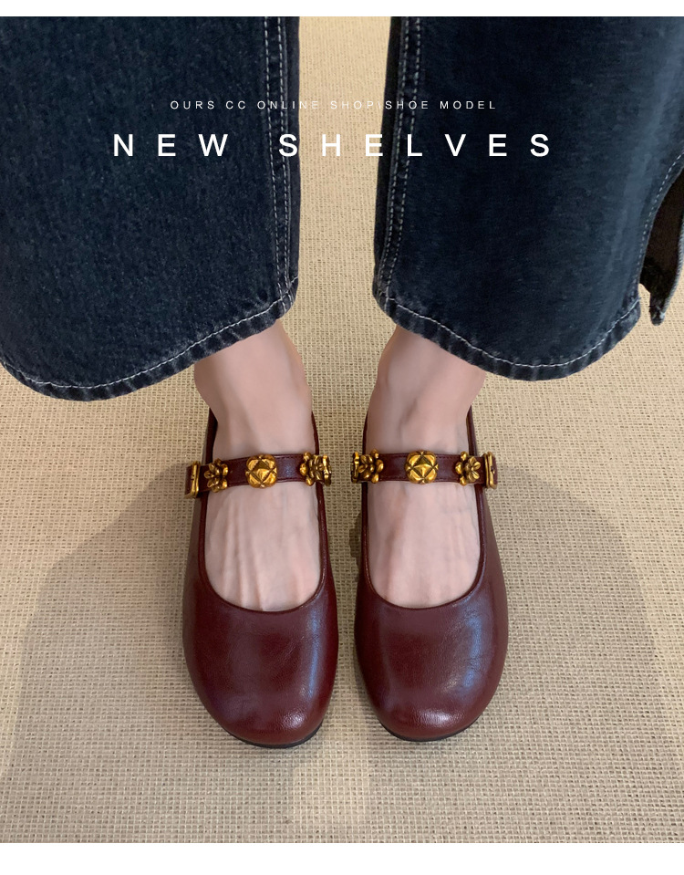 羊皮漫步复古超软鞋子平底法式单鞋女2025新款红色配裙子玛丽珍鞋