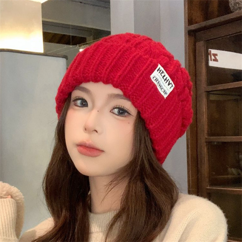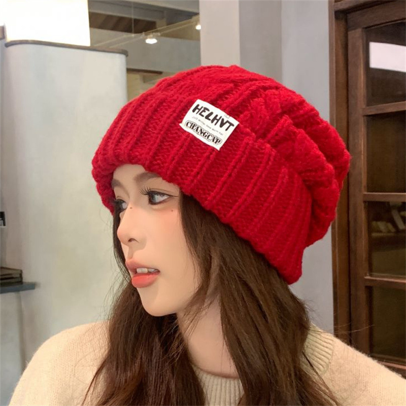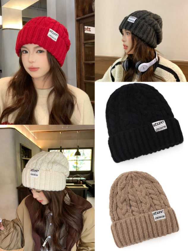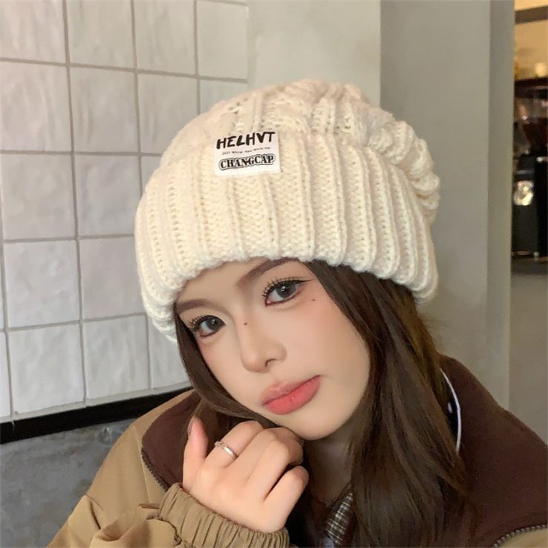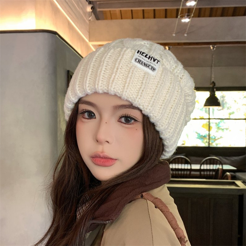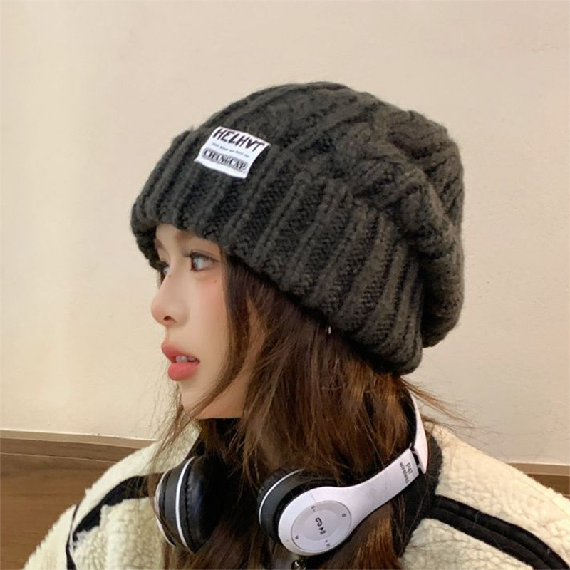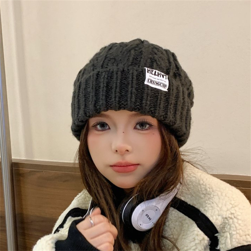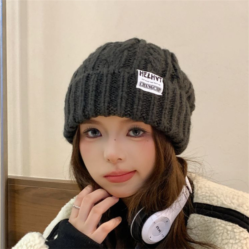 显脸小灰色毛线帽子女2025年秋冬季保暖针织帽大头围护耳包头帽潮