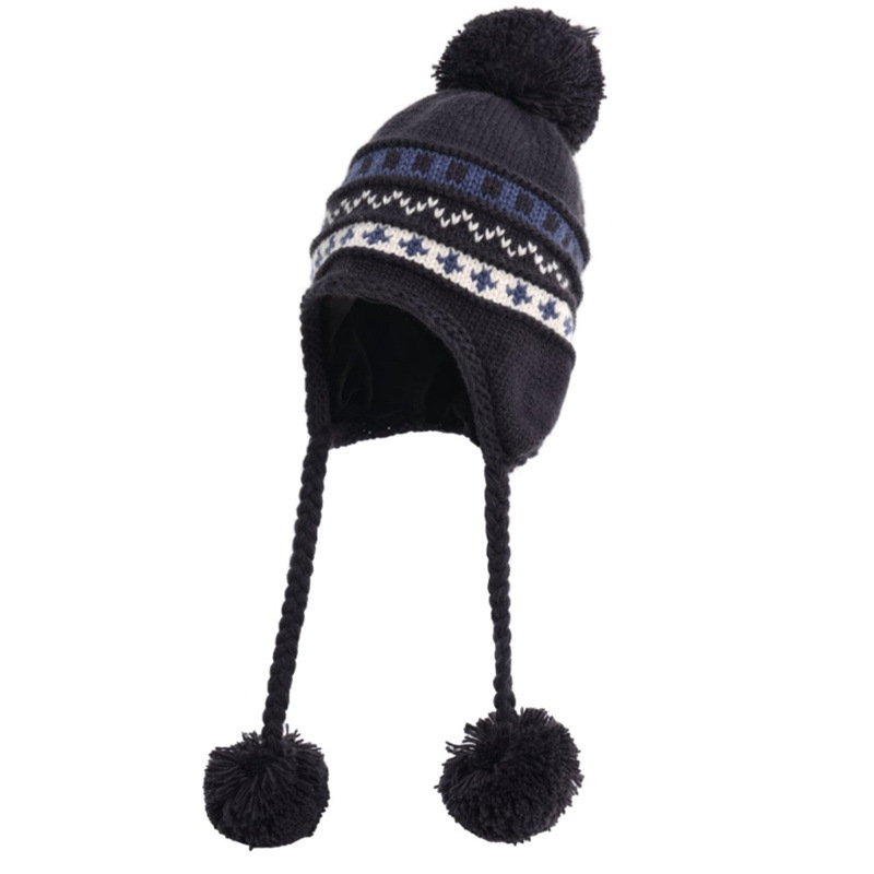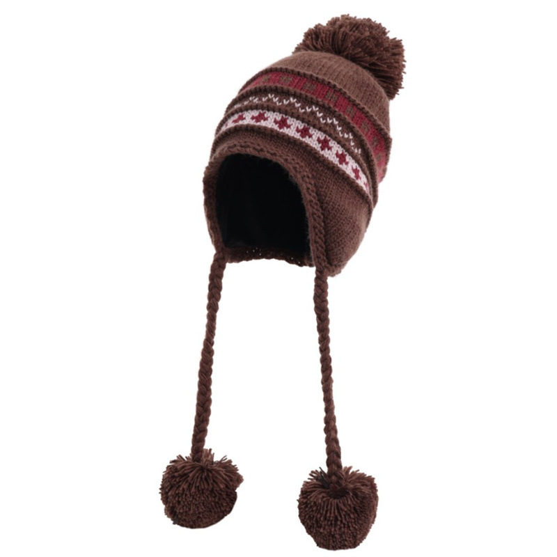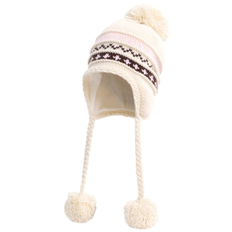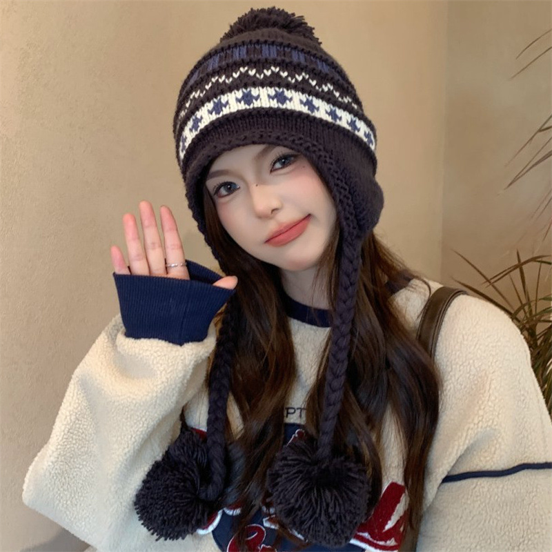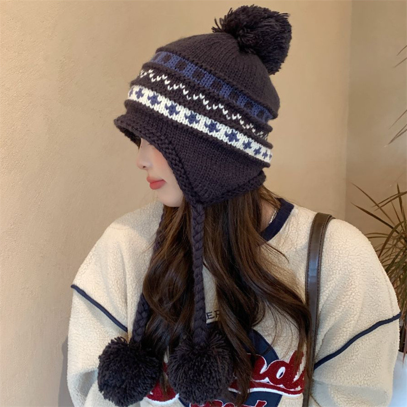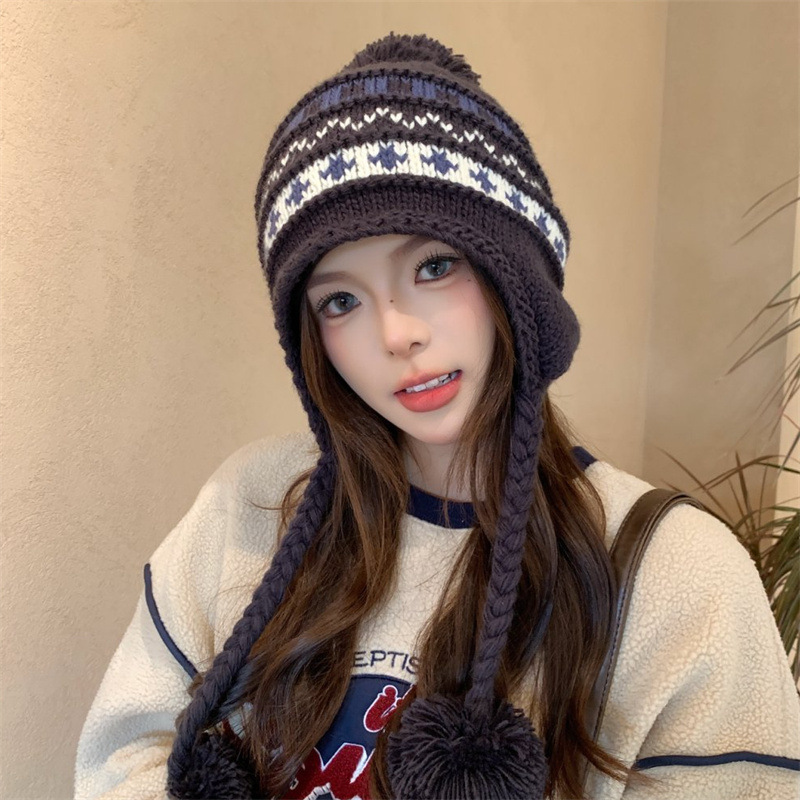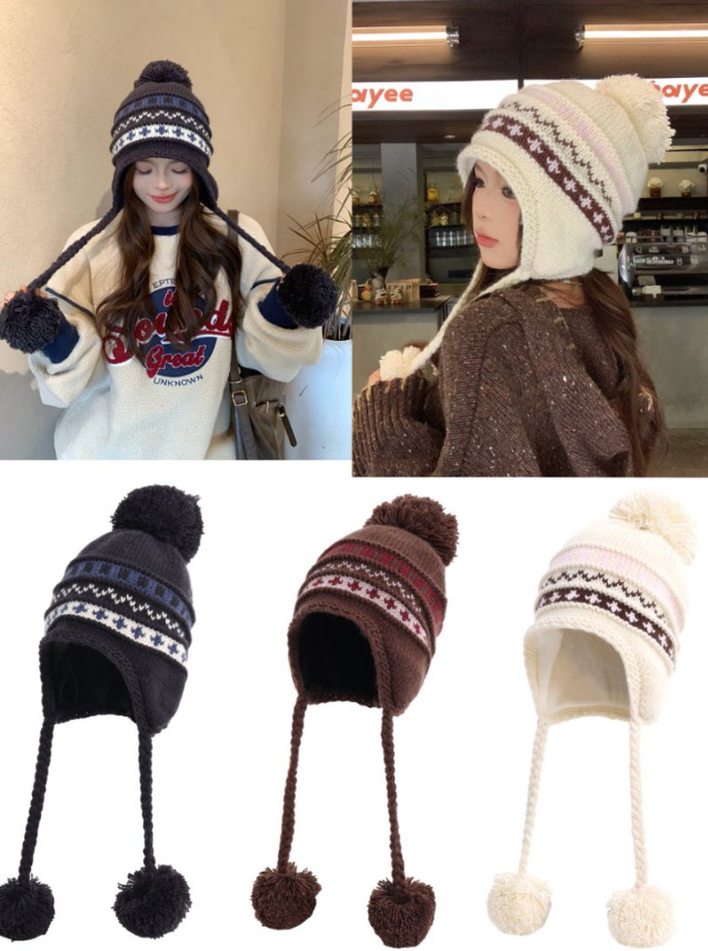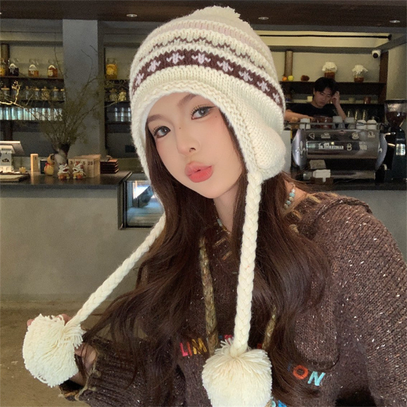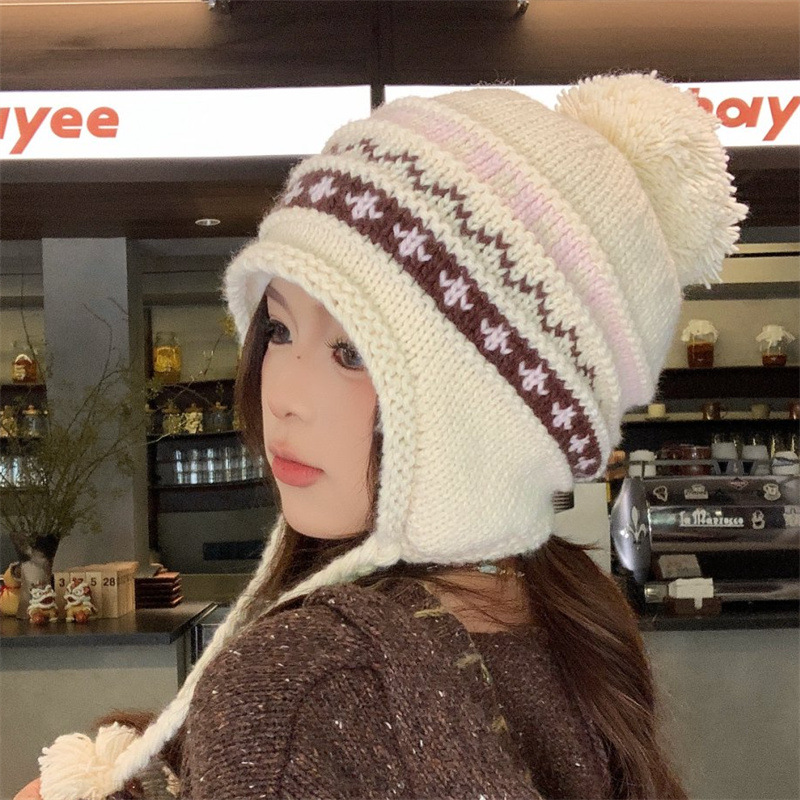 日系新款毛球针织帽加厚加绒护耳保暖雷锋帽冬季出游可爱毛线帽