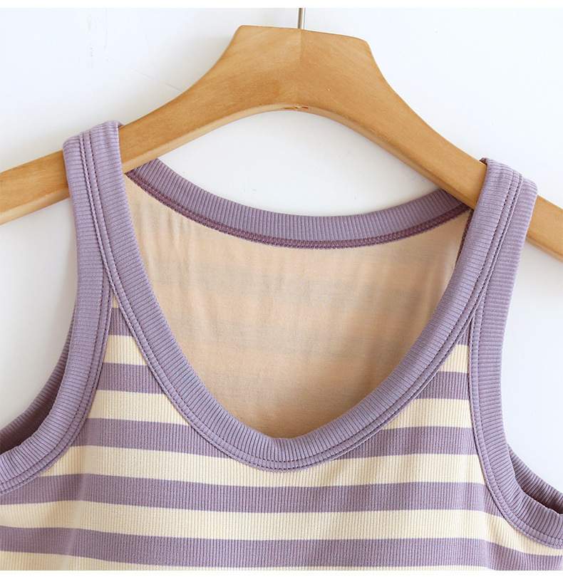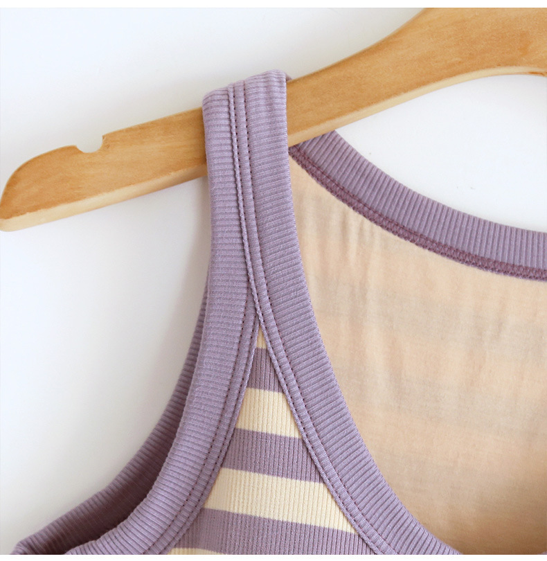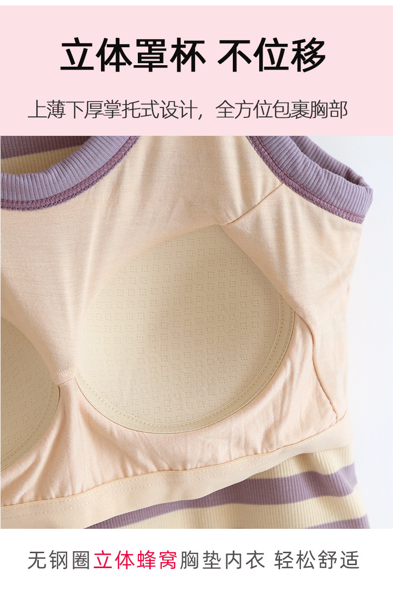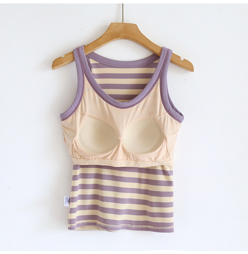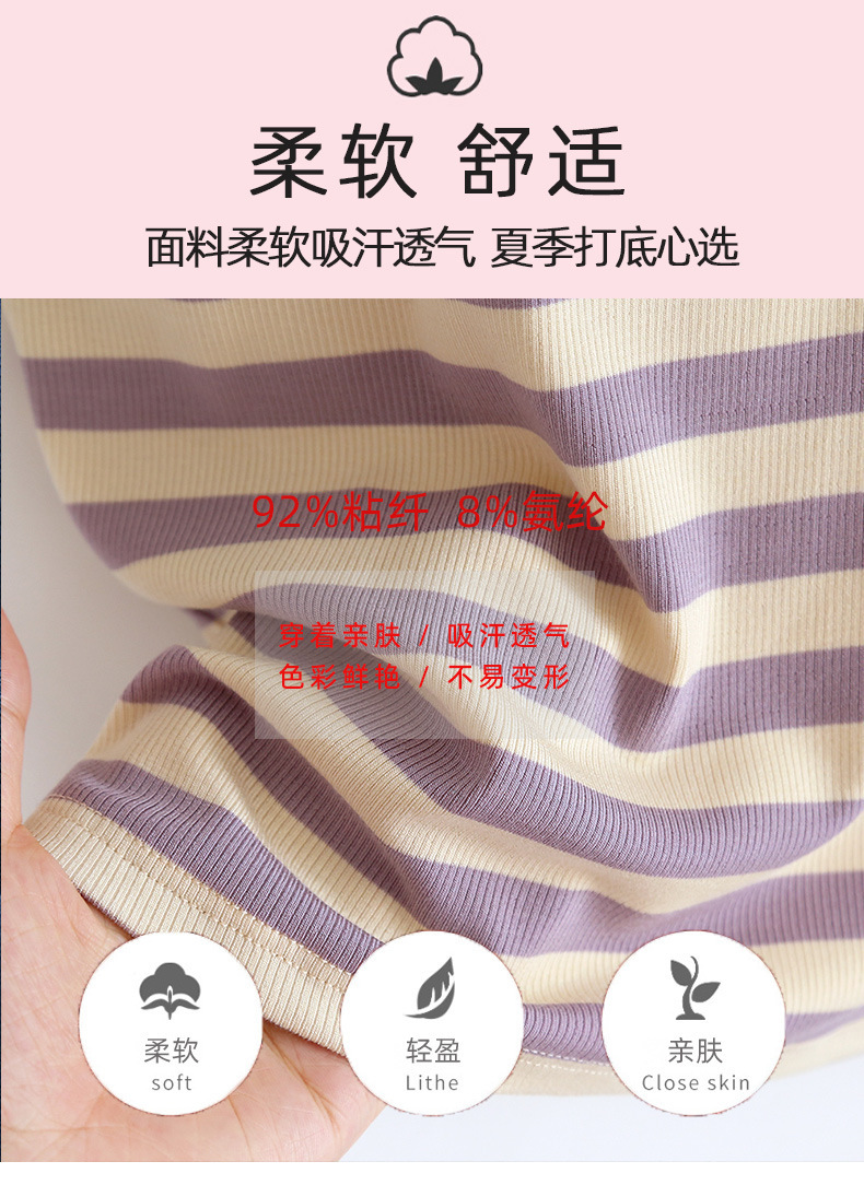 条纹带胸垫背心女打底衫含文胸修身内衣内搭BRA-T吊带上衣抹胸夏