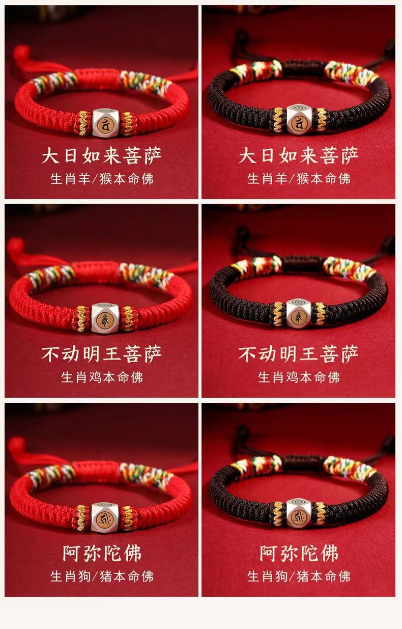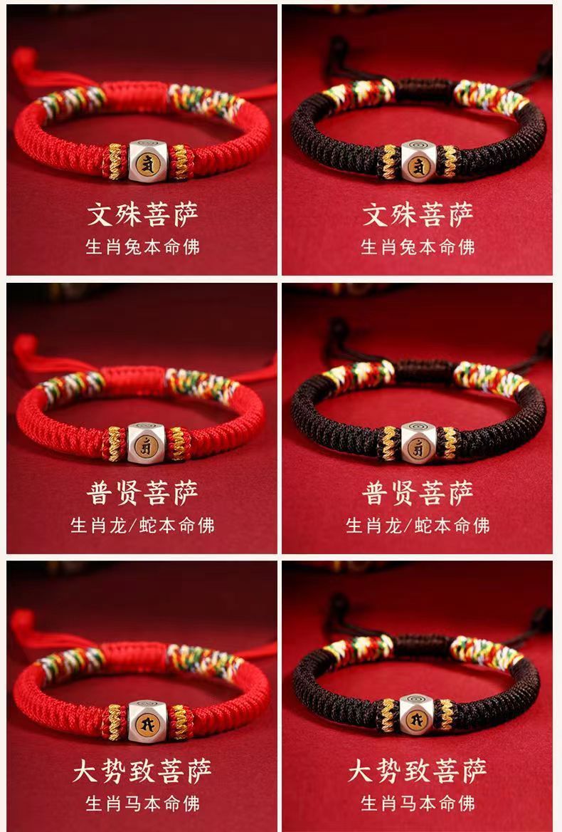 2025年新款金刚结本命佛红绳八大守护神手链藏式手工编织手绳