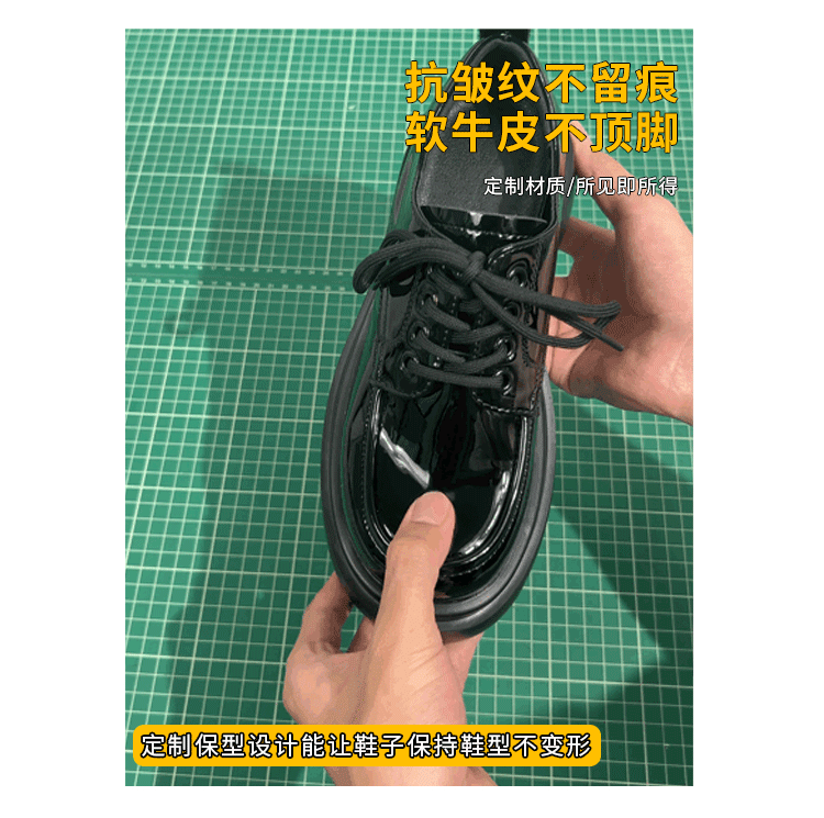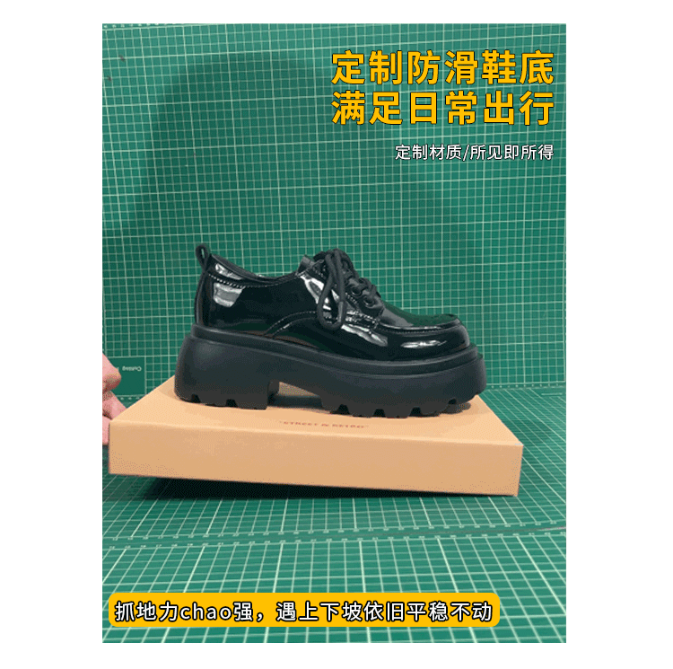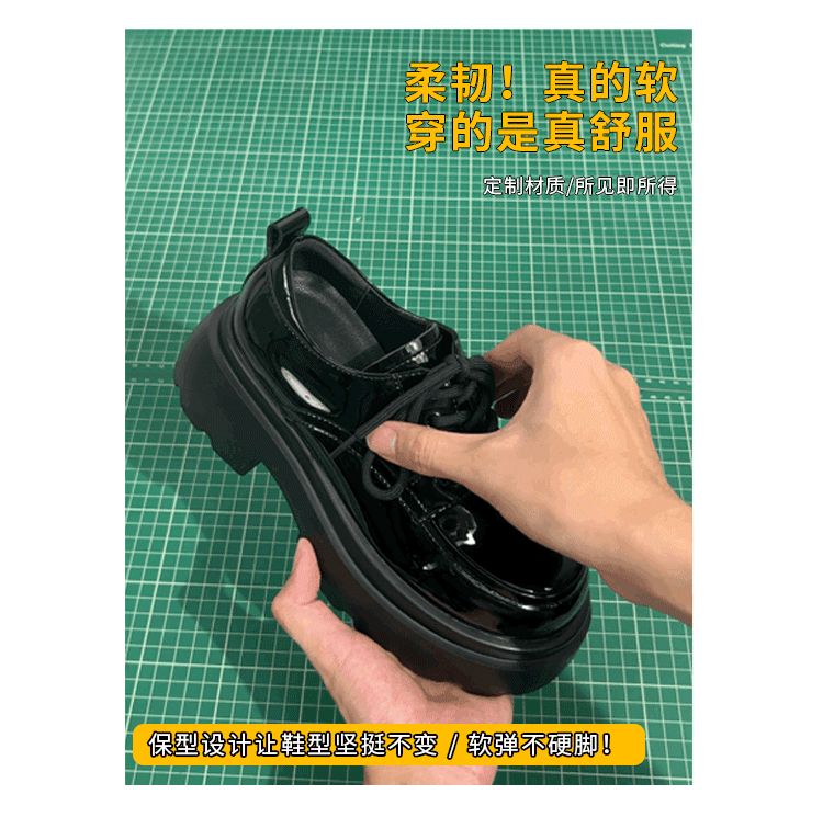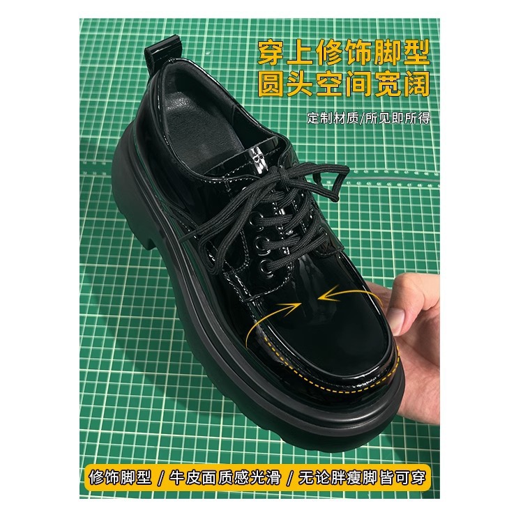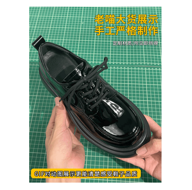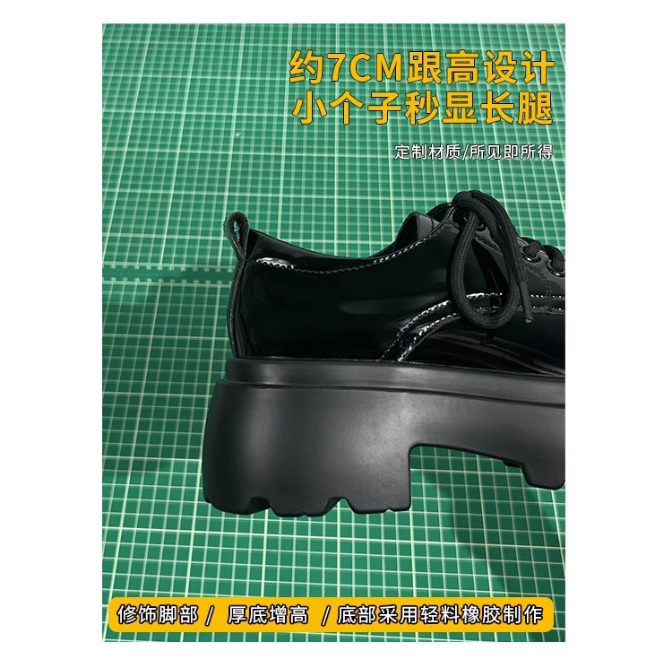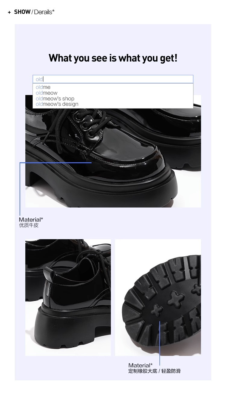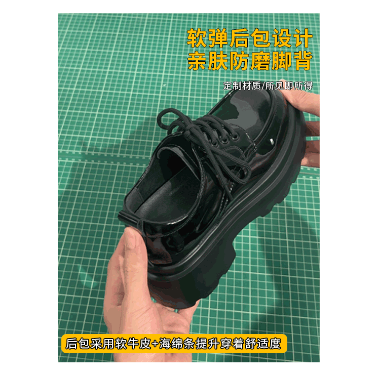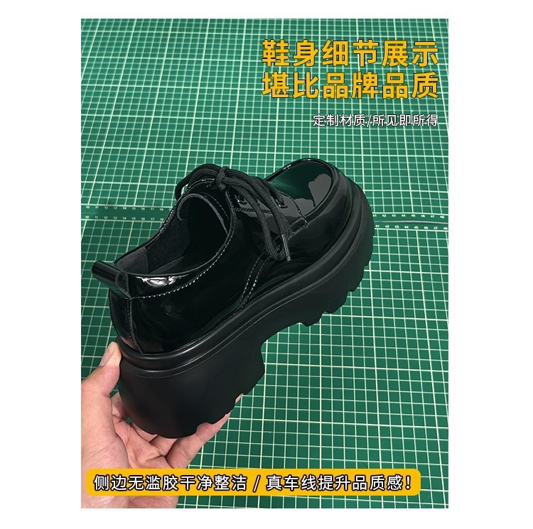 老喵的店 厚底小皮鞋女真皮黑色jk英伦风系带增高乐福鞋春季鞋子